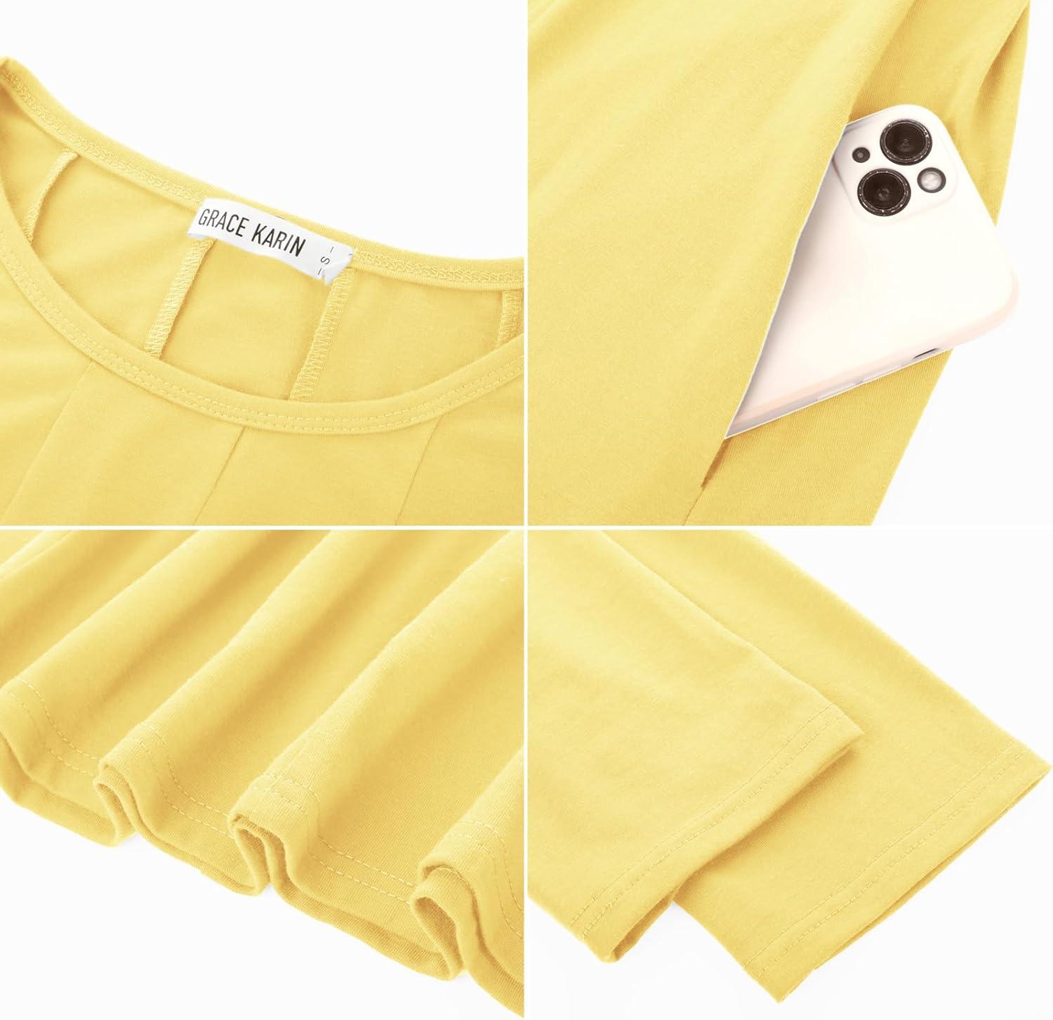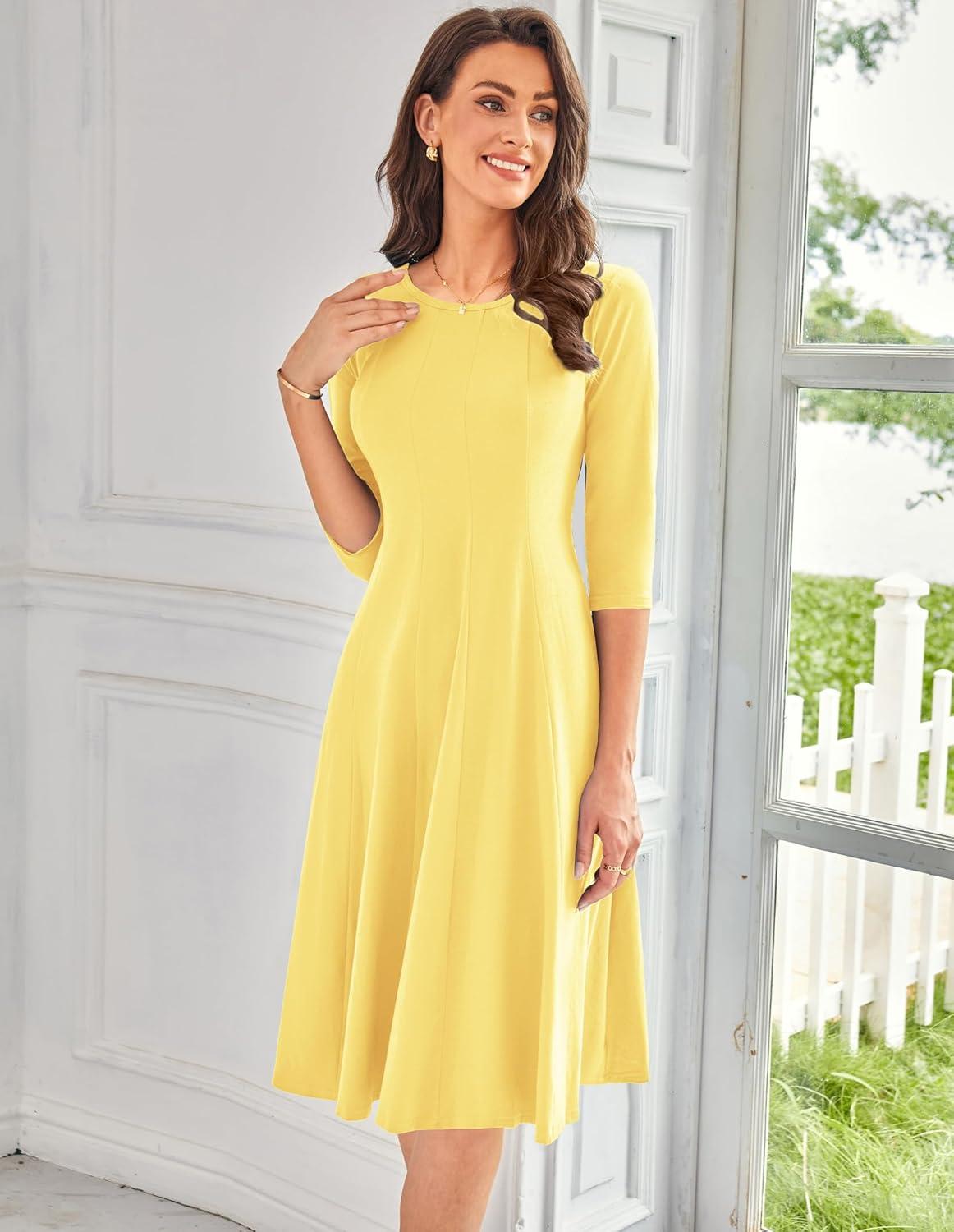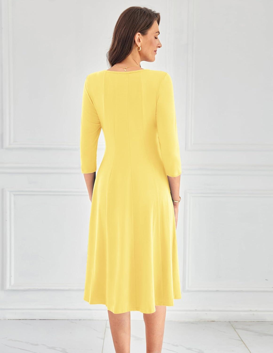 GRACE KARIN Fall Dresses for Women 2025 Casual 3/4 Sleeve Dress A Line Fit and Flare Midi Dress with Pockets(Light Yellow)