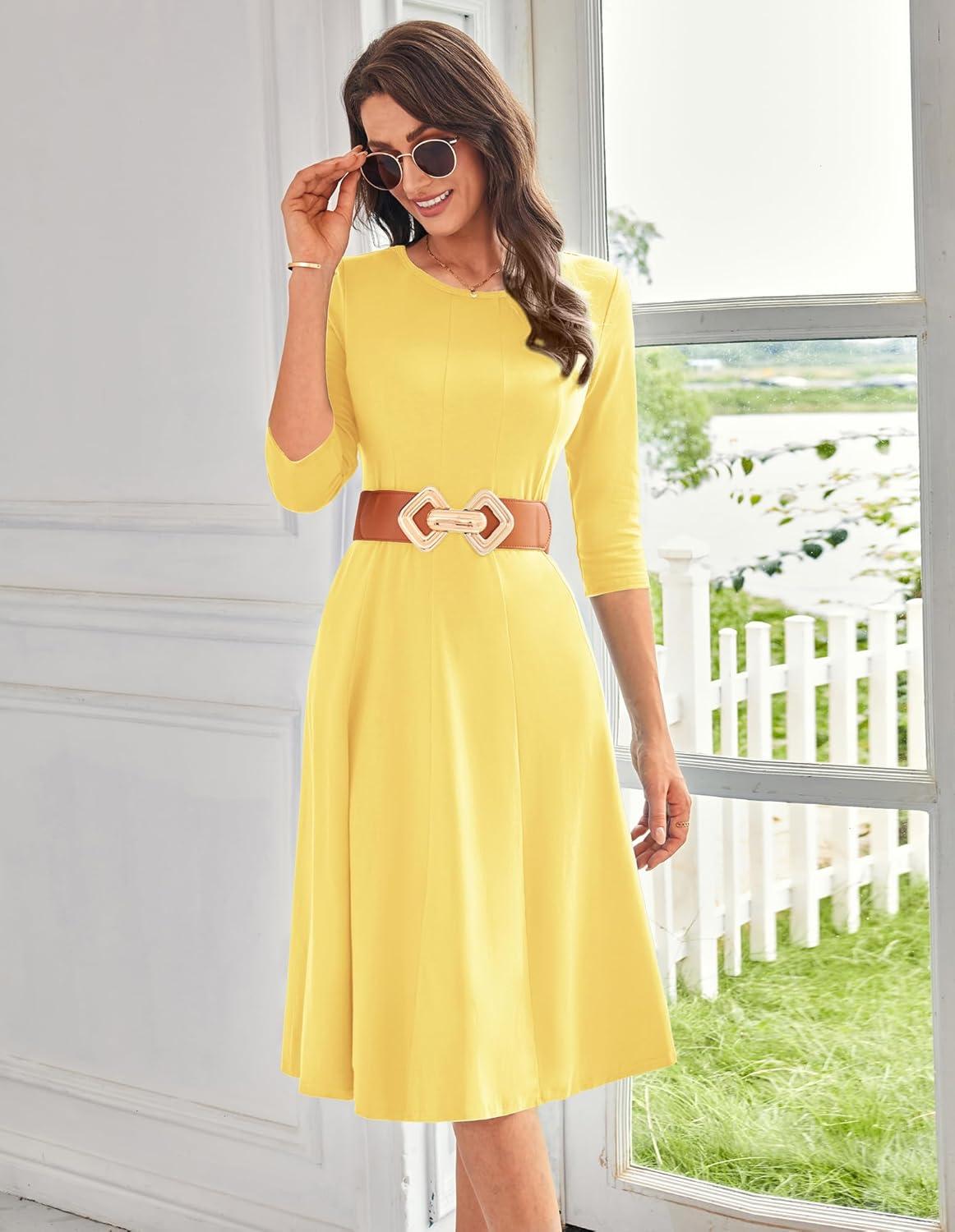 imageGRACE KARIN Fall Dresses for Women 2025 Casual 34 Sleeve Dress A Line Fit and Flare Midi Dress with PocketsLight Yellow