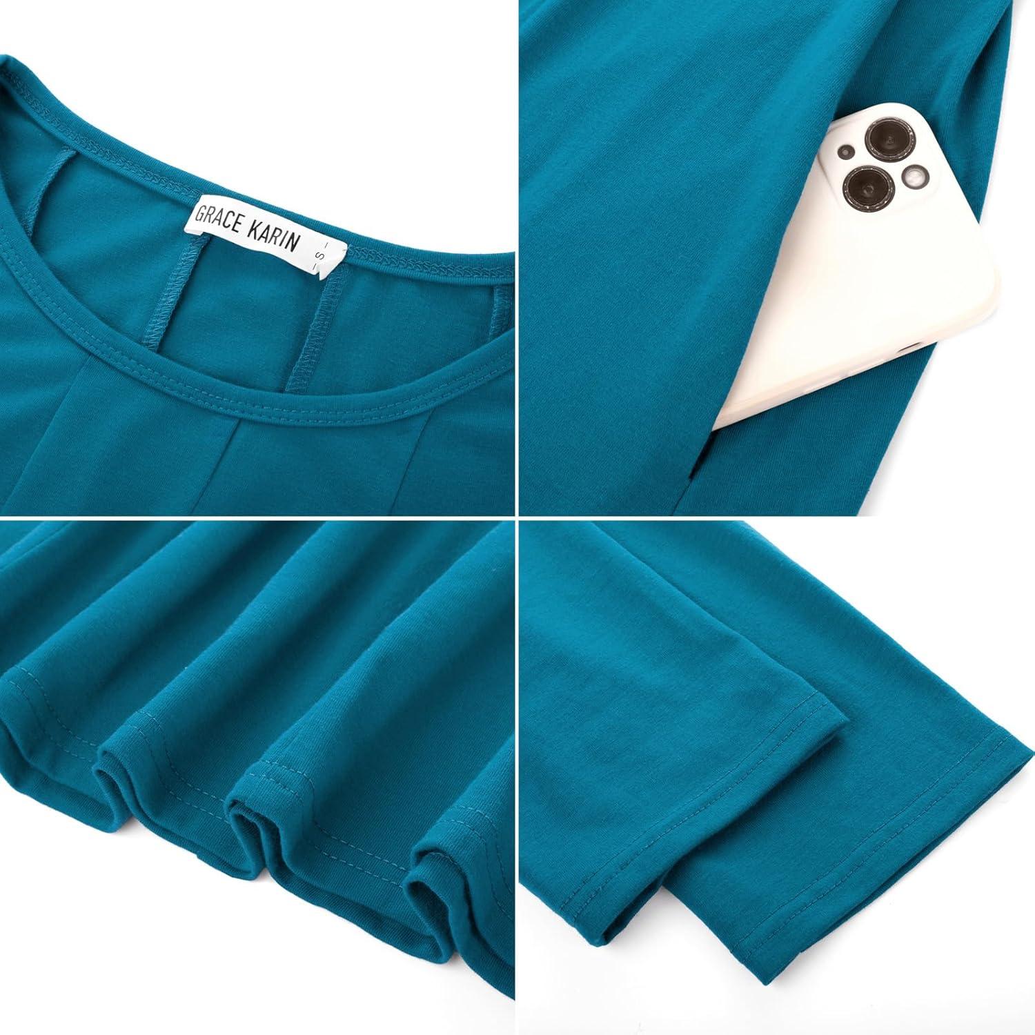 GRACE KARIN Fall Dresses for Women 2025 Casual 3/4 Sleeve Dress A Line Fit and Flare Midi Dress with Pockets(Peacock Blue)