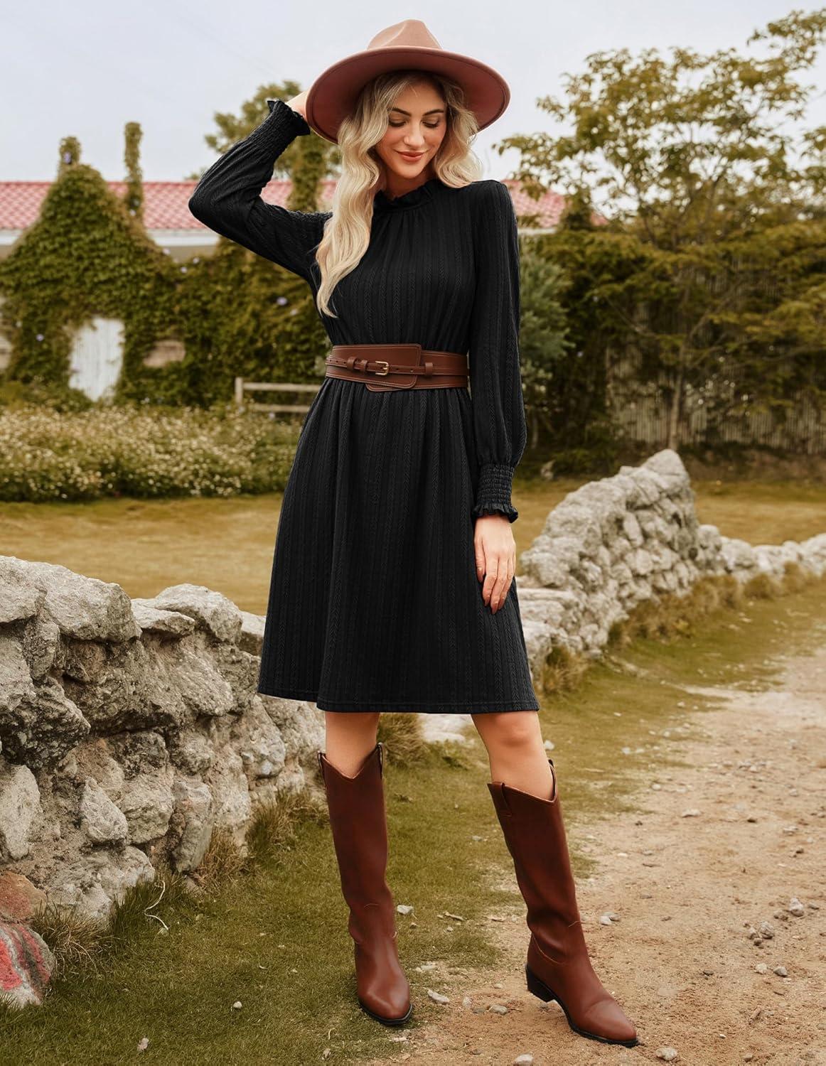 imageGRACE KARIN Fall Dresses for Women 2025 Casual Long Sleeve Crew Neck Ribbed Belted Dresses with PocketBlack