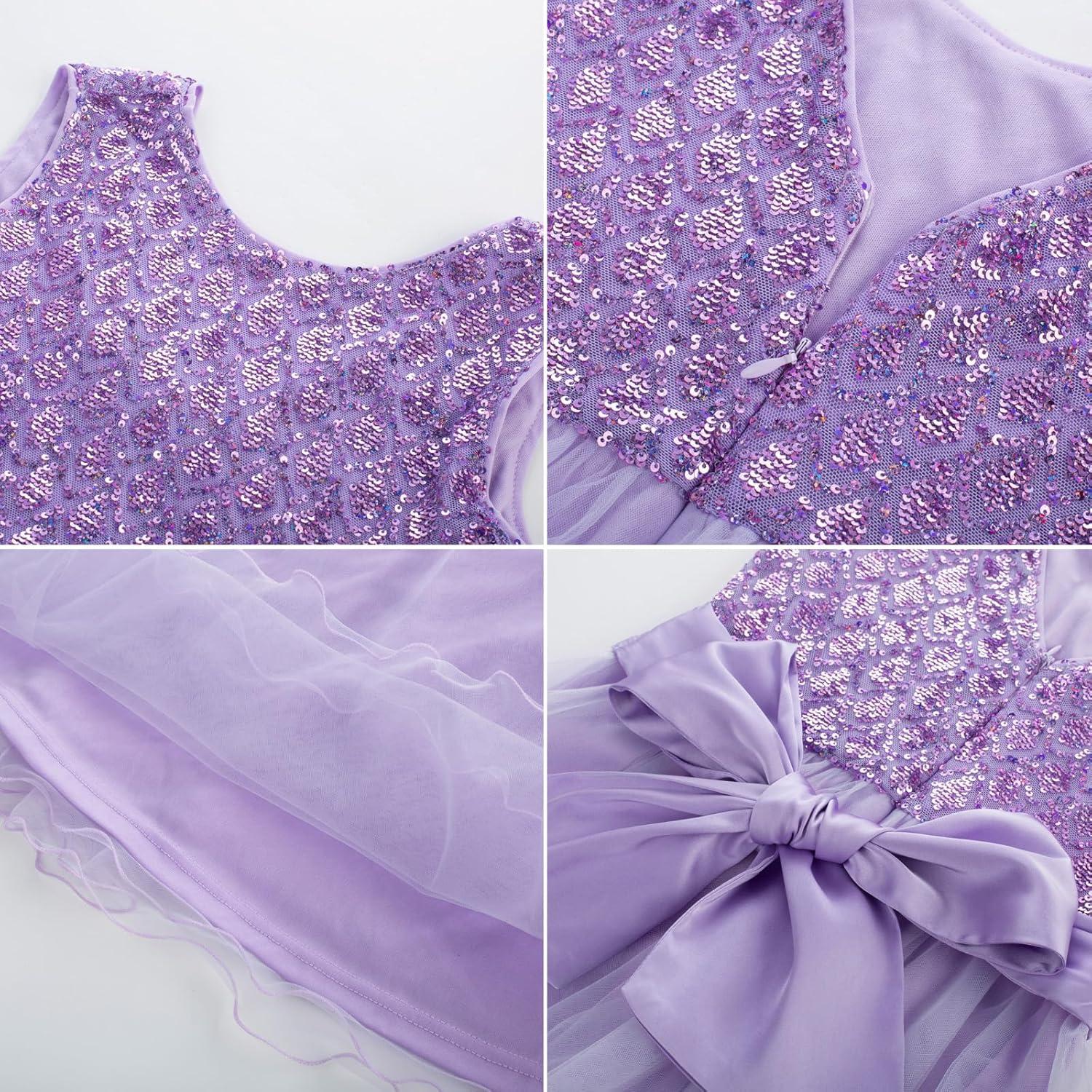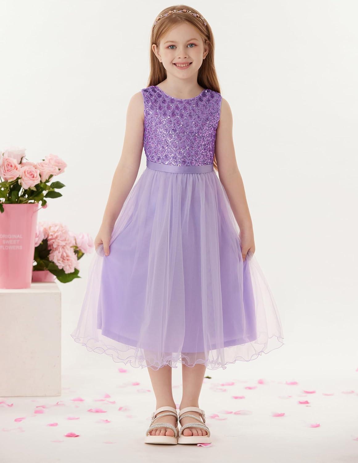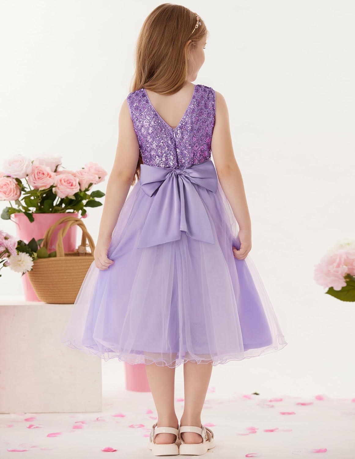 GRACE KARIN Flower Girl Dress V-Back Sequin Party Tulle Dresses Kids Birthday Formal Wedding Pageant Princess Dress 5-12(Purple)