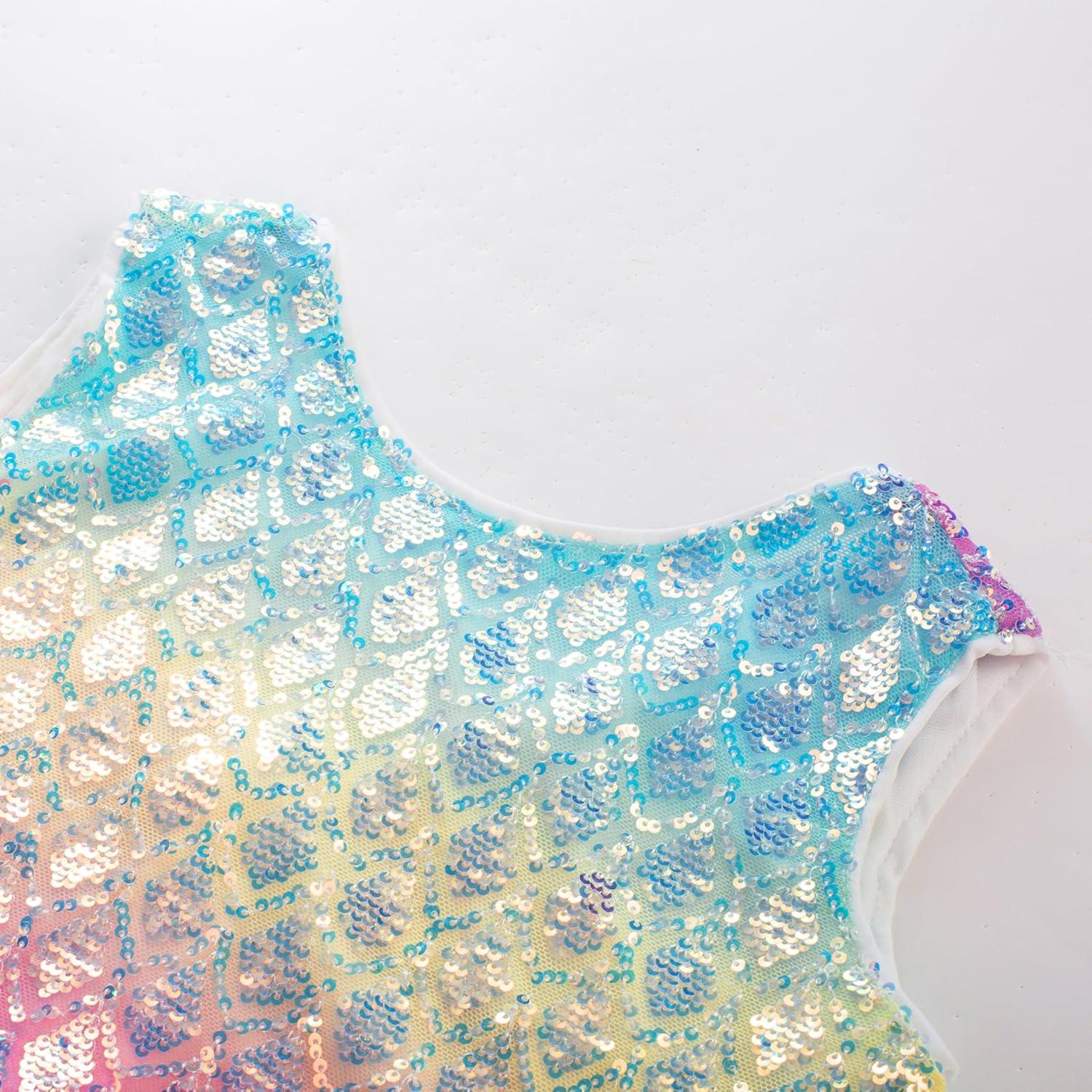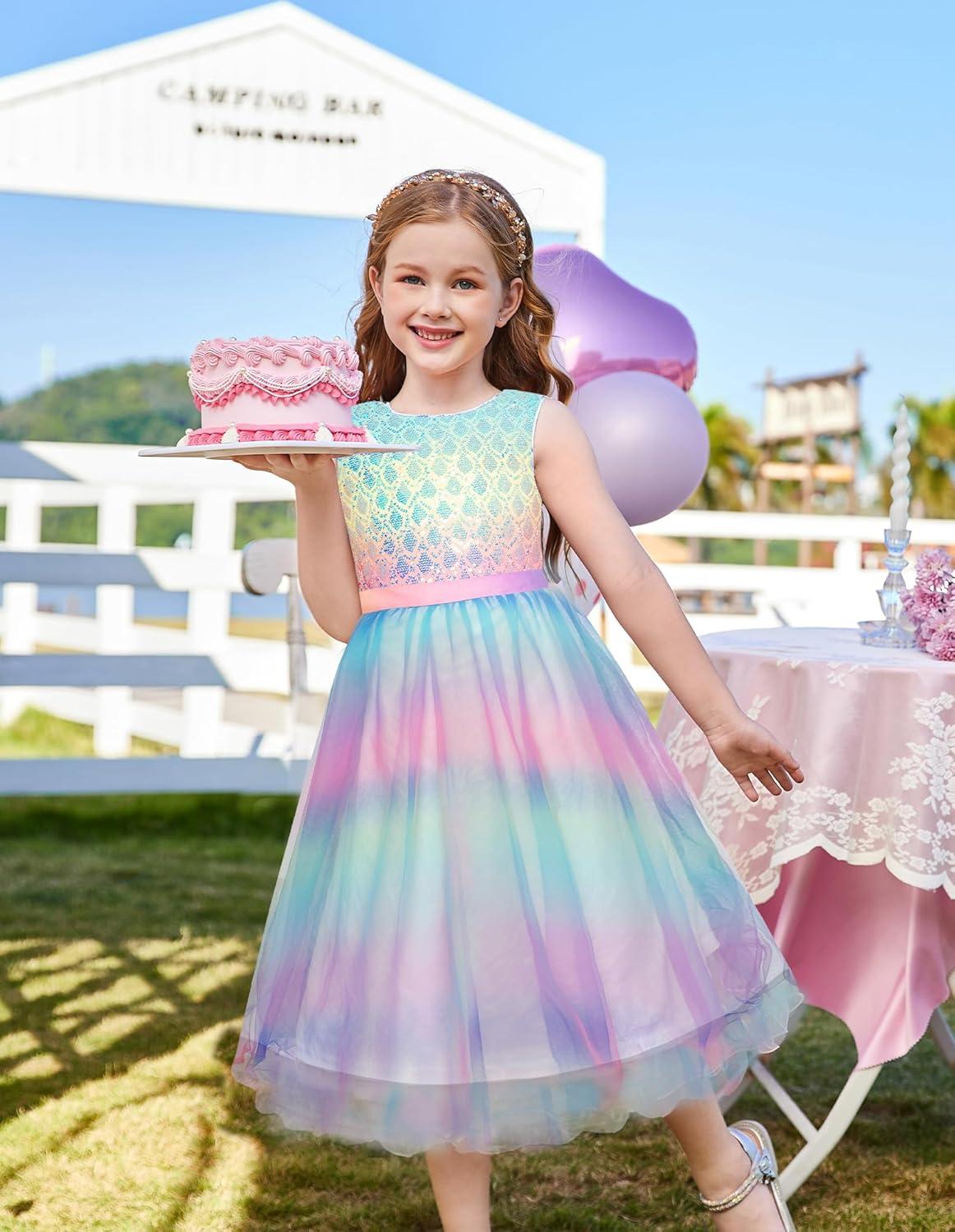 GRACE KARIN Flower Girl Dress V-Back Sequin Party Tulle Dresses Kids Birthday Formal Wedding Pageant Princess Dress 5-12(Rainbow)