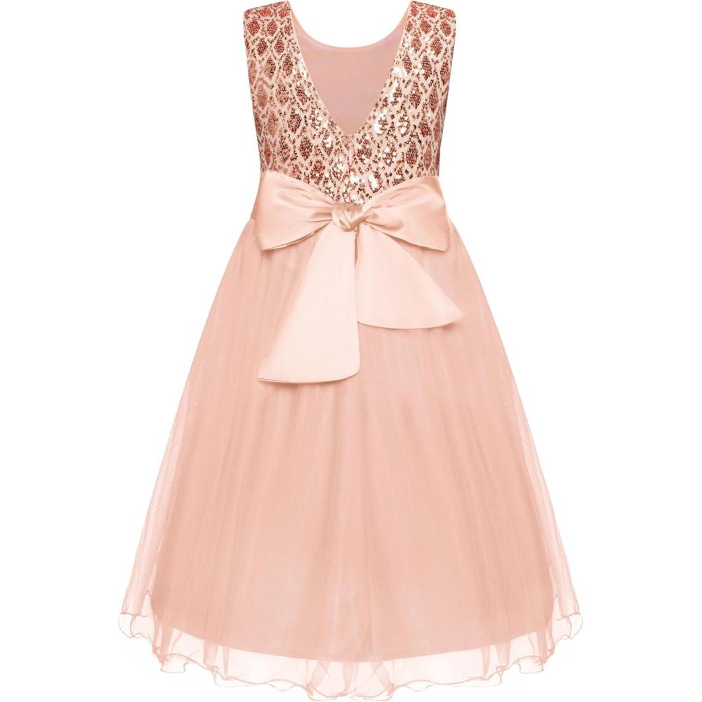 imageGRACE KARIN Flower Girl Dress VBack Sequin Party Tulle Dresses Kids Birthday Formal Wedding Pageant Princess Dress 512Rose Gold