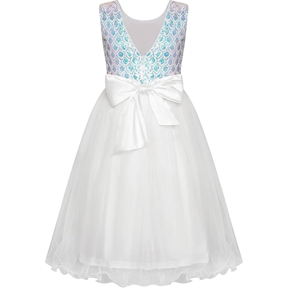imageGRACE KARIN Flower Girl Dress VBack Sequin Party Tulle Dresses Kids Birthday Formal Wedding Pageant Princess Dress 512White