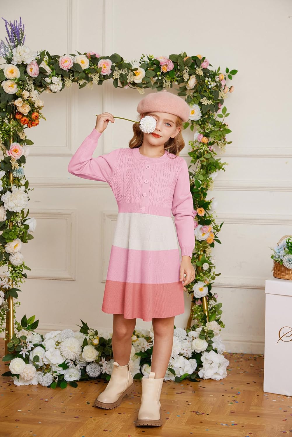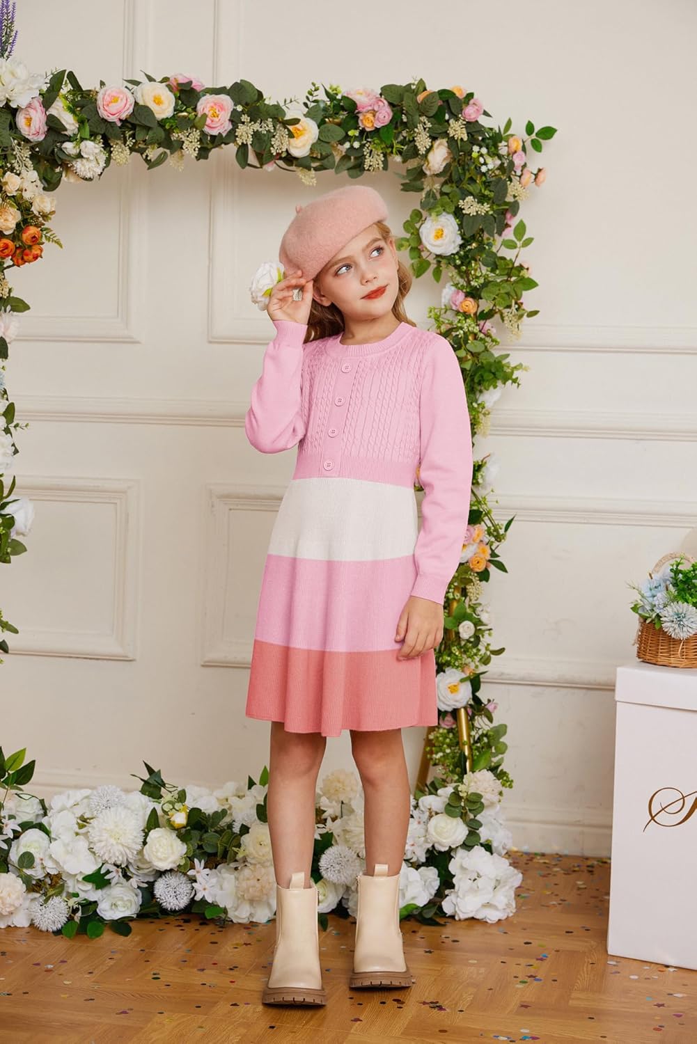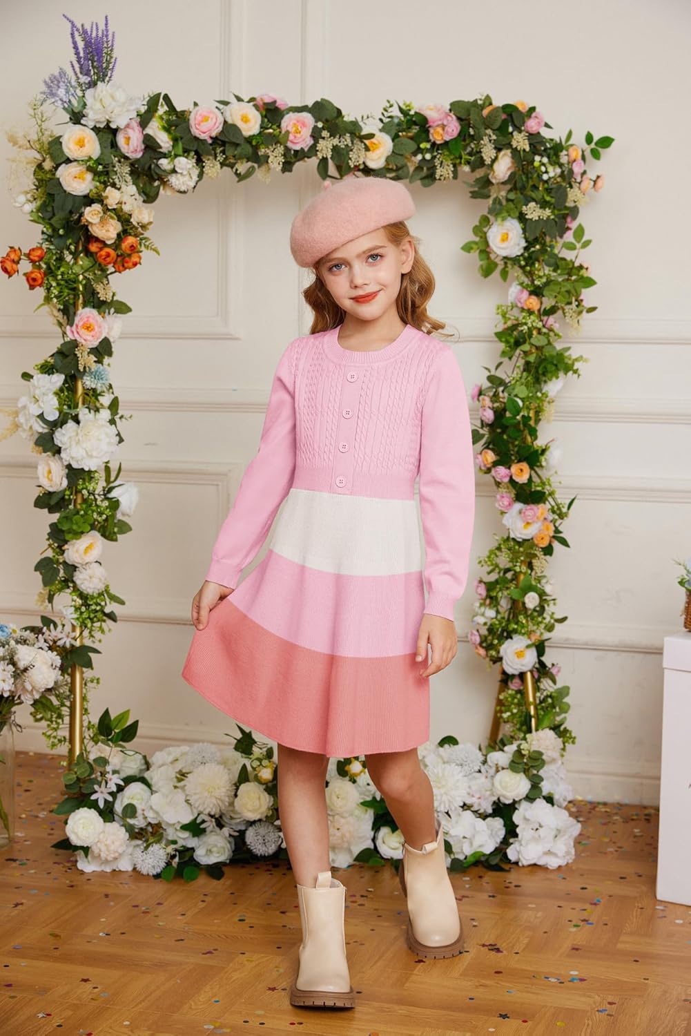 Be the first to review “GRACE KARIN Girl Dress Long Sleeve Sweater Ruffle Button Front Knit Casual Fall Winter Dresses for Girls 5-12(Color Block-pink)”