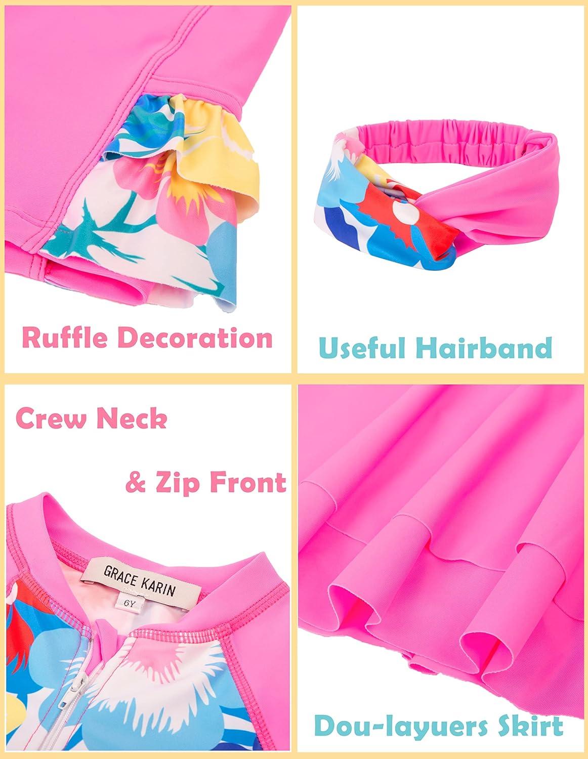 GRACE KARIN Girls Rash Guard Swimsuit 3 Pieces Bathing Suits Summer Beach Swimwear Pink Multicoloured 6-7 Years