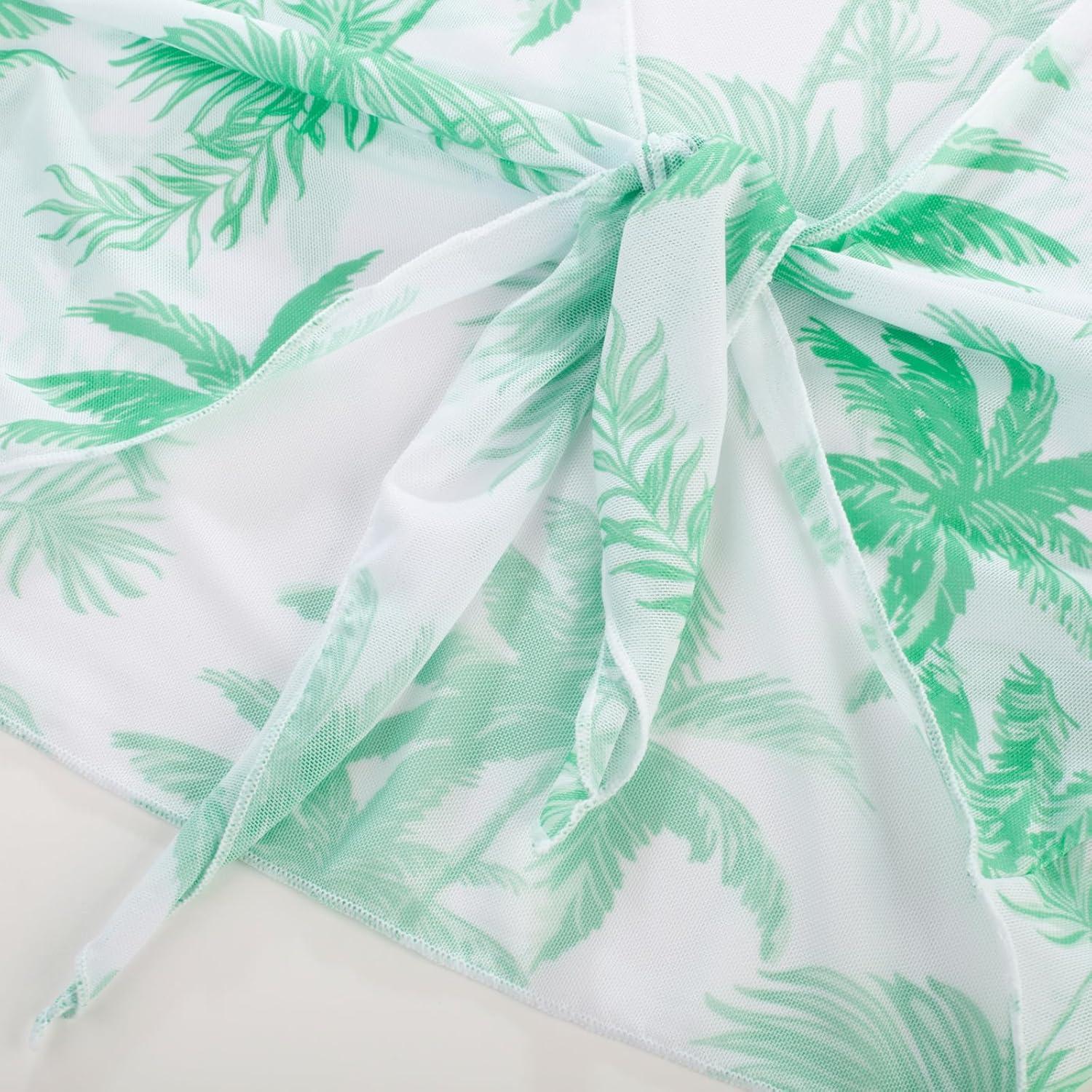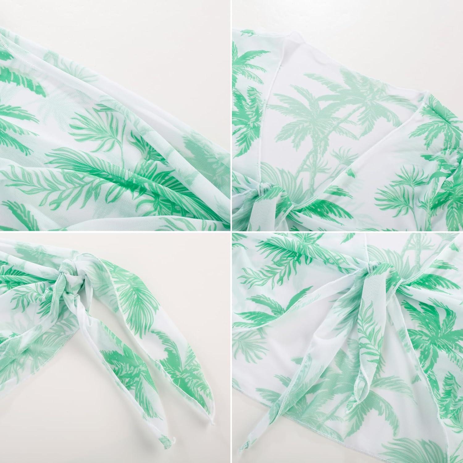 GRACE KARIN Girls Bathing Suit Adjustable Taniki Swimsuit Tie Front 4 Piece Bikini Set with Kimono Cover Up 6-14(Green-daisy)