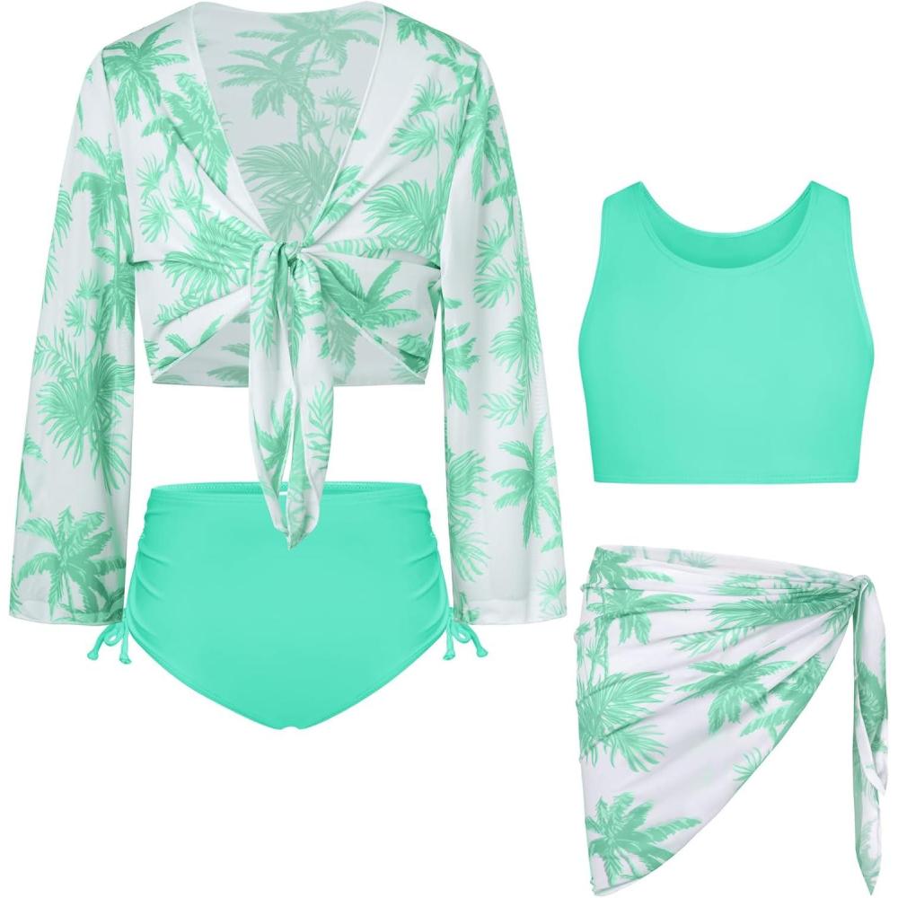 imageGRACE KARIN Girls Bathing Suit Adjustable Taniki Swimsuit Tie Front 4 Piece Bikini Set with Kimono Cover Up 614Greendaisy