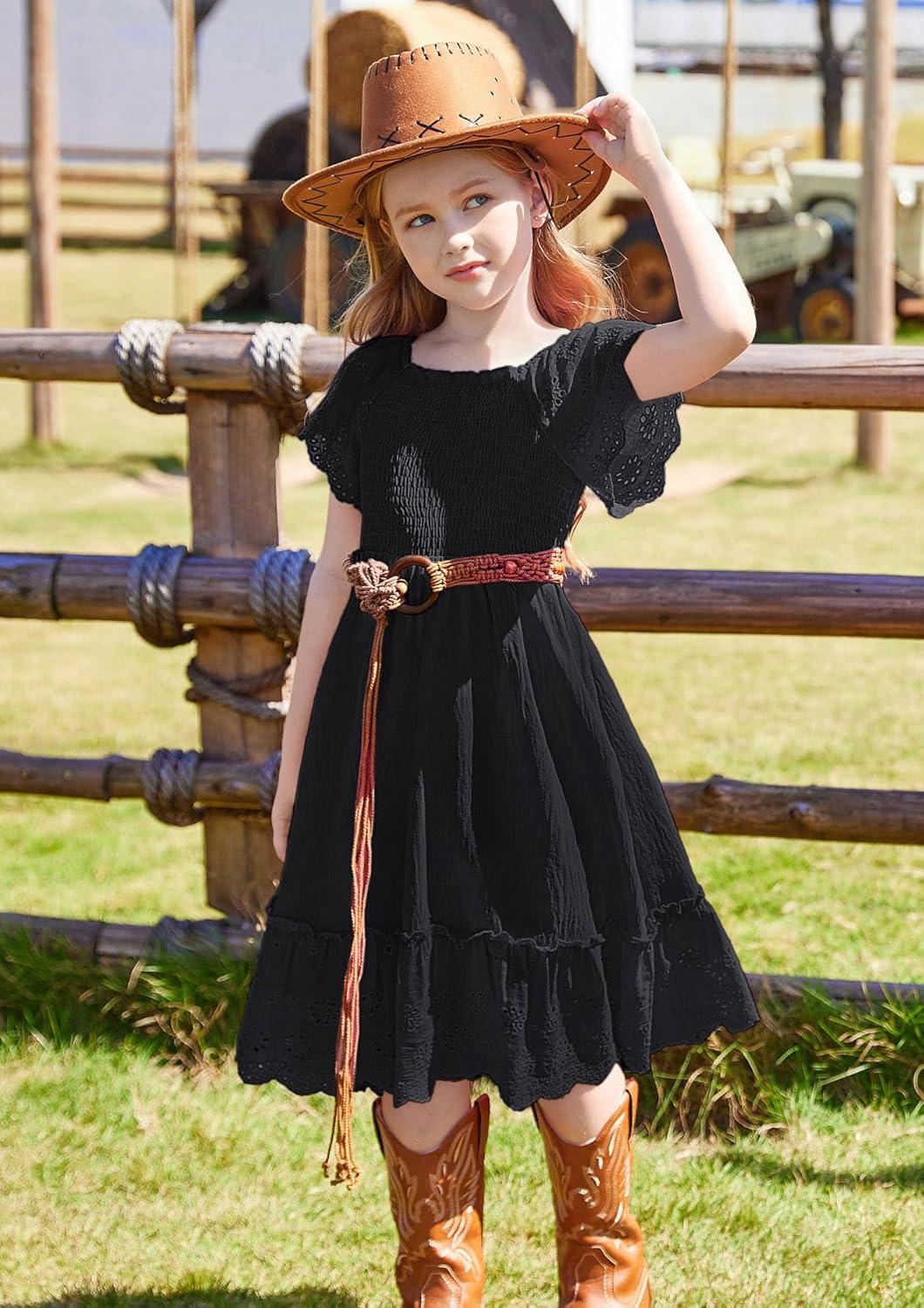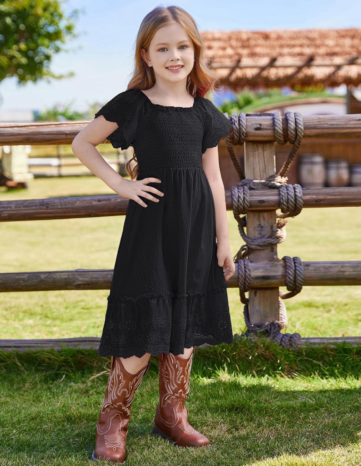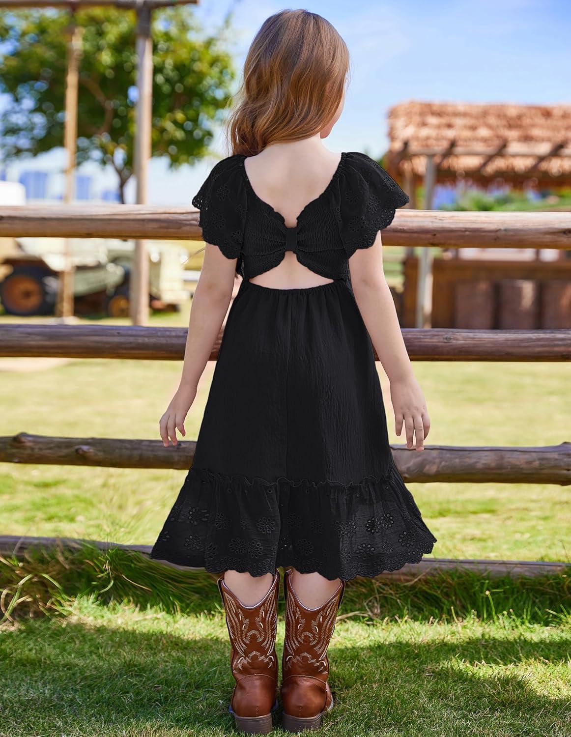 GRACE KARIN Girls Bow Back Dress Summer Beach Party Casual Sundress Ruffle Backless Dress for Teens Girls Size 6-14(Black)