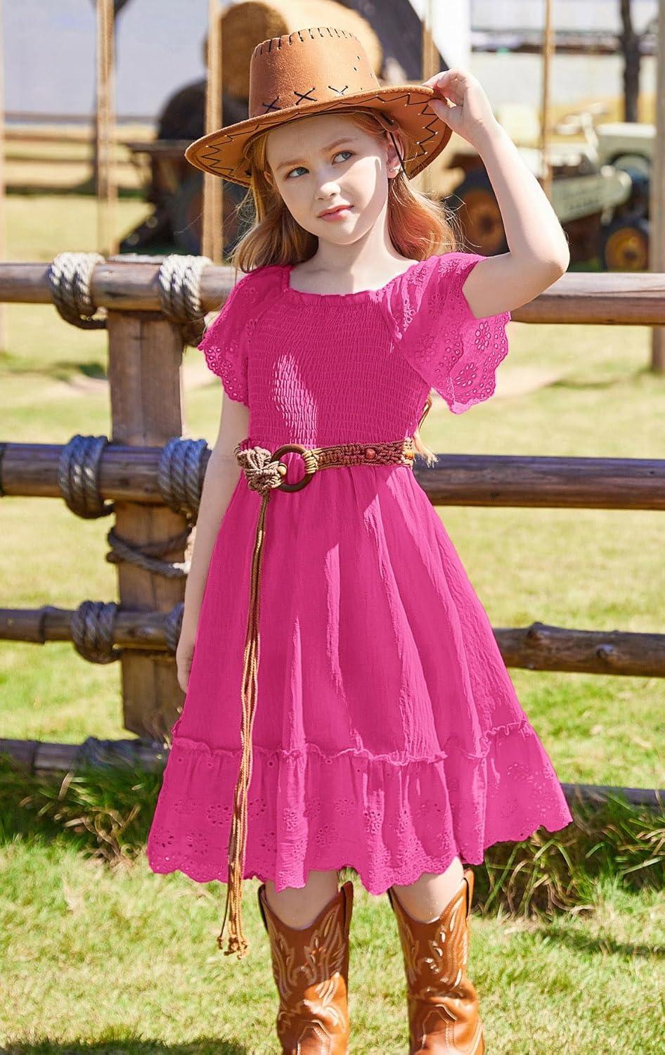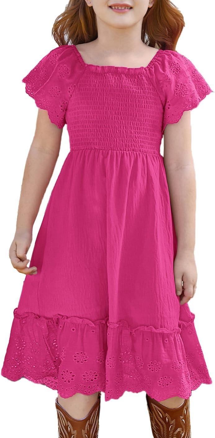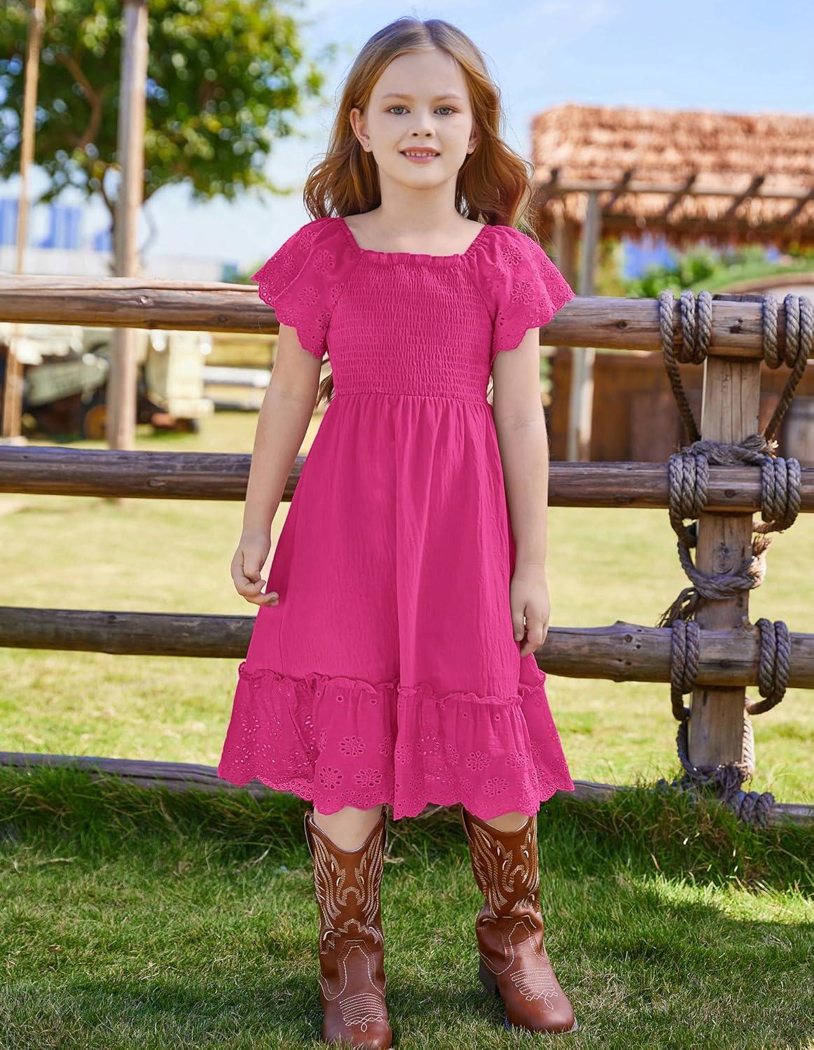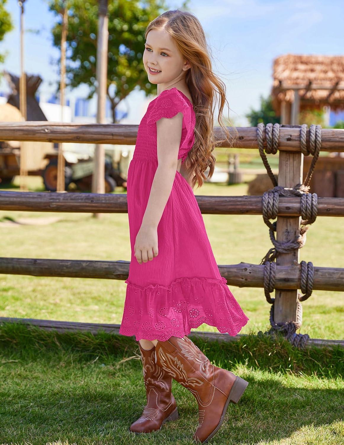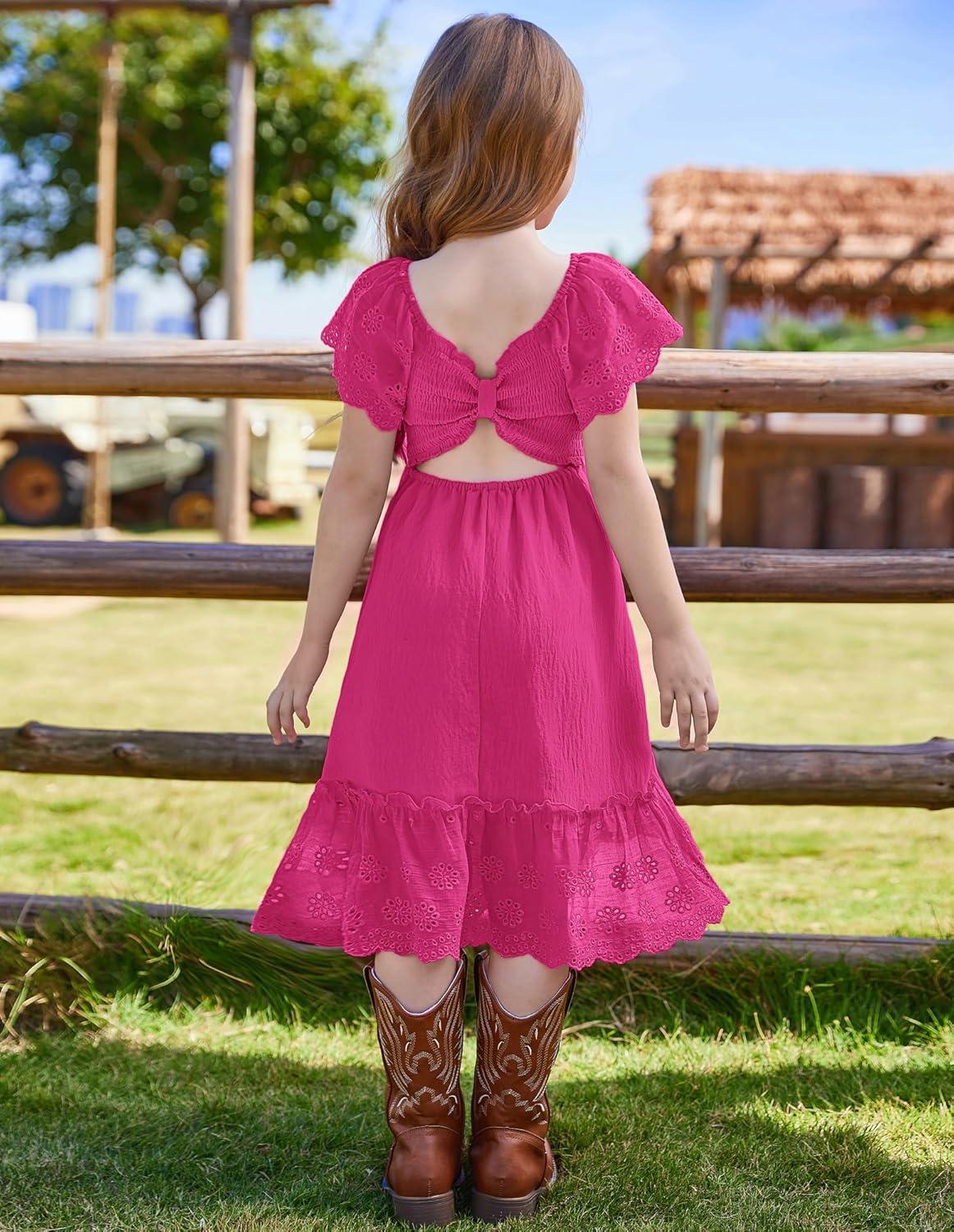 GRACE KARIN Girls Bow Back Dress Summer Beach Party Casual Sundress Ruffle Backless Dress for Teens Girls Size 6-14(Pink)