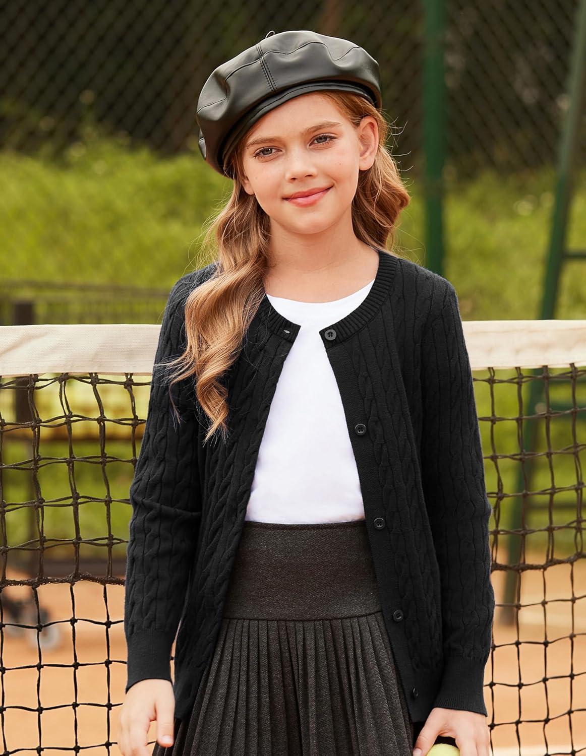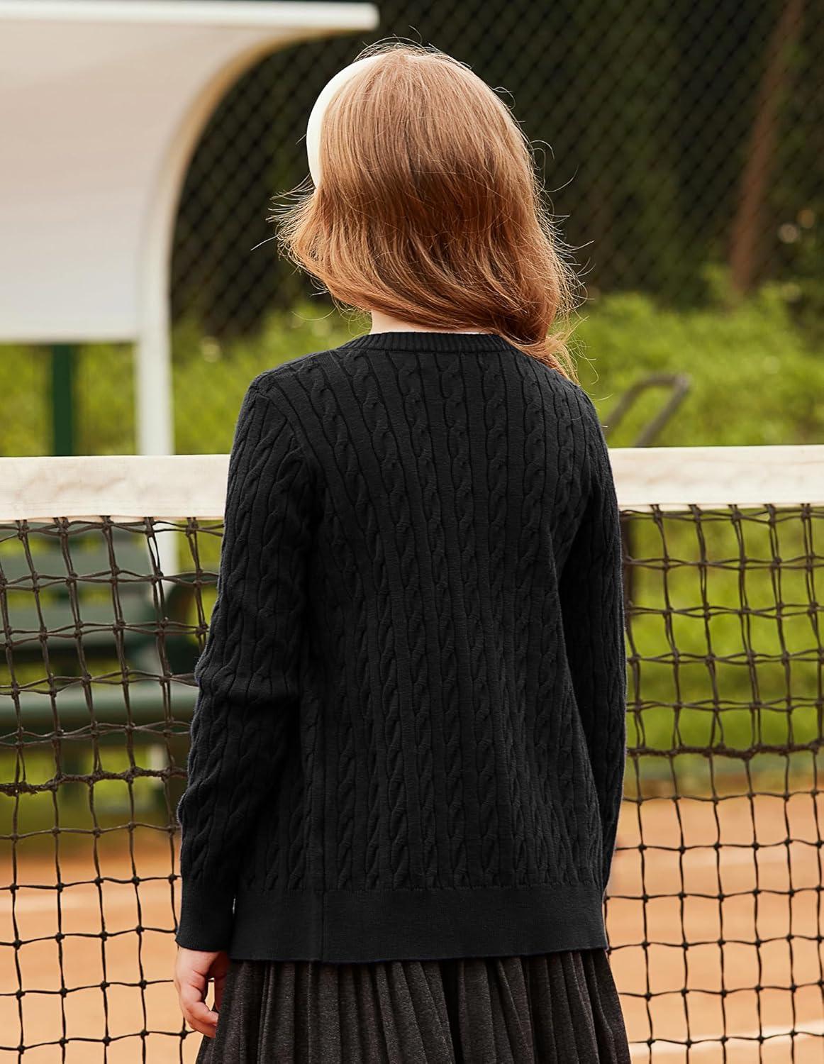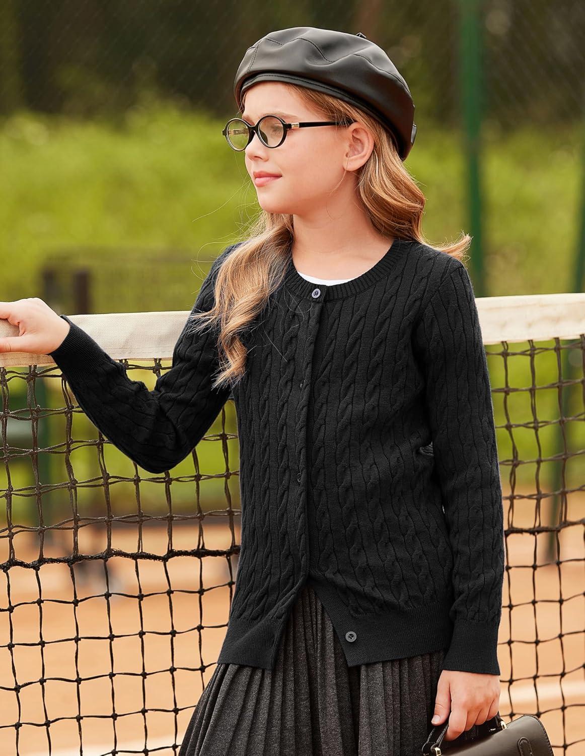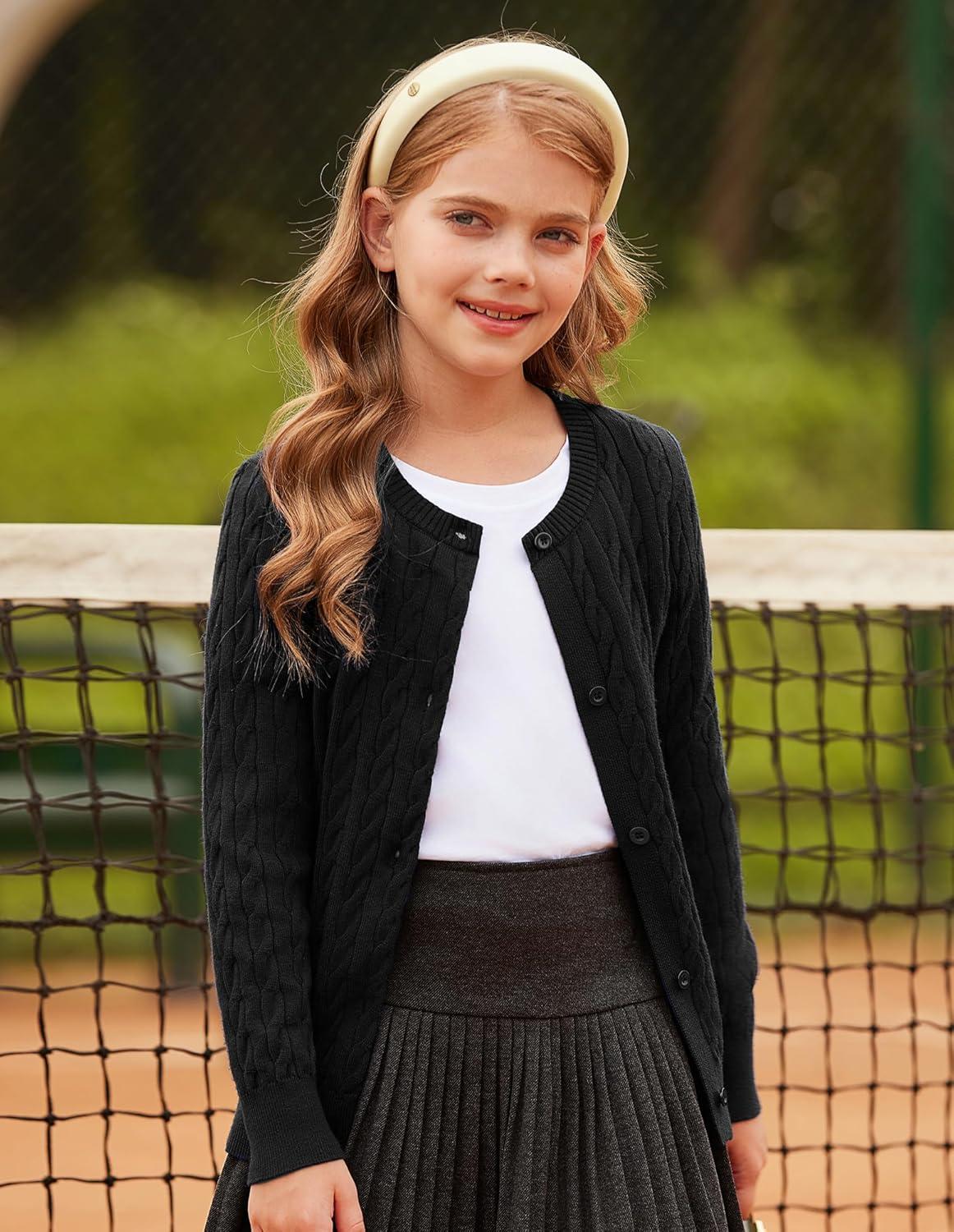 GRACE KARIN Girls Cardigan Button Front Cable Knitted School Uniform Sweater for 6-12 Years(Black)