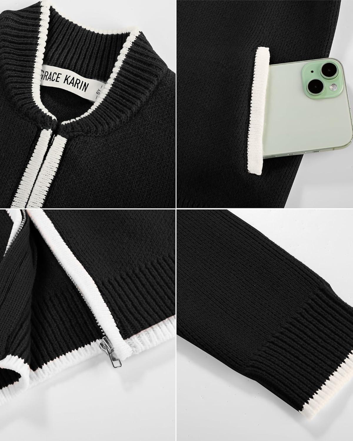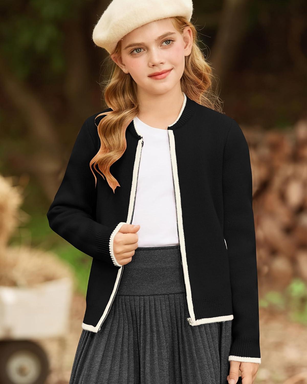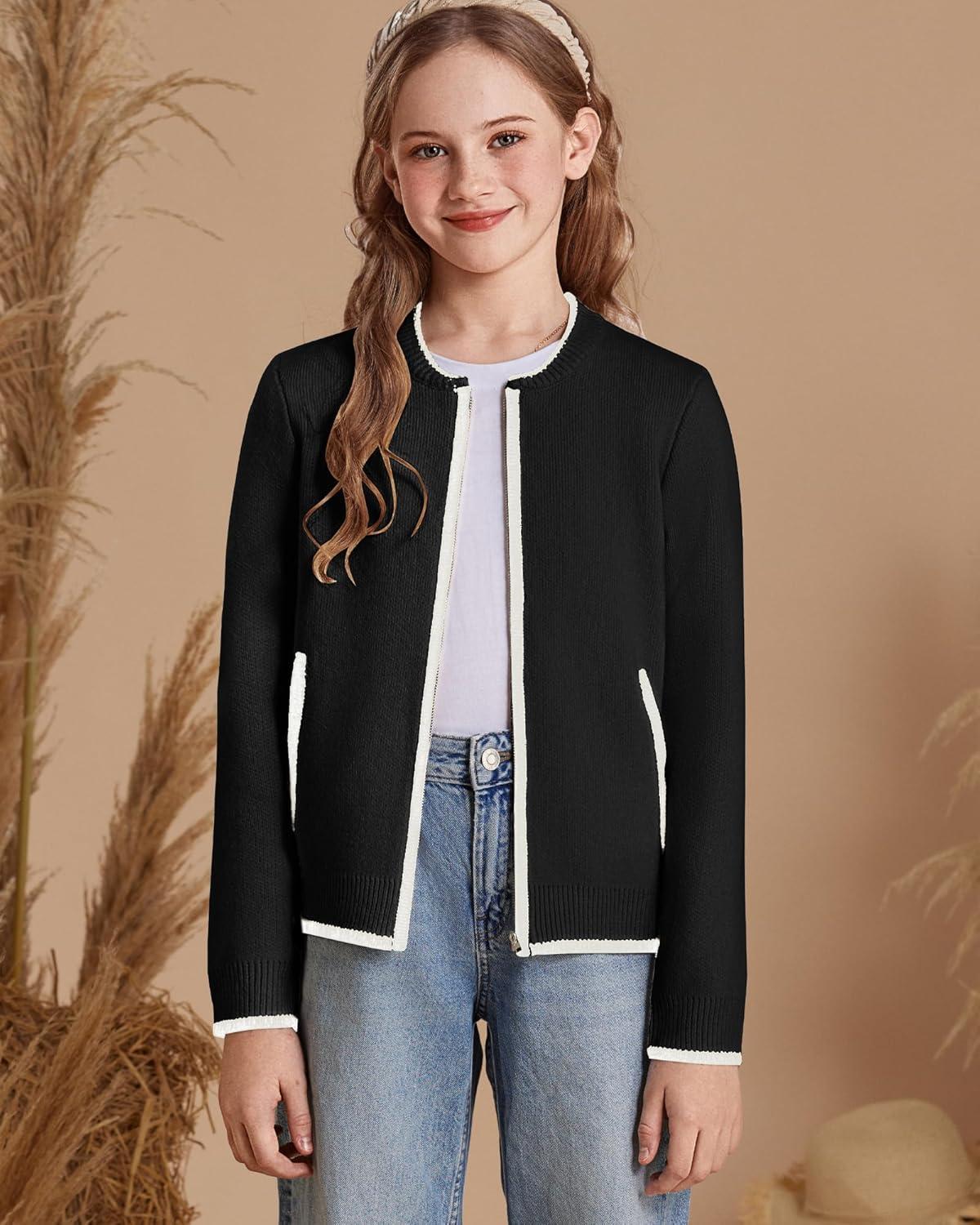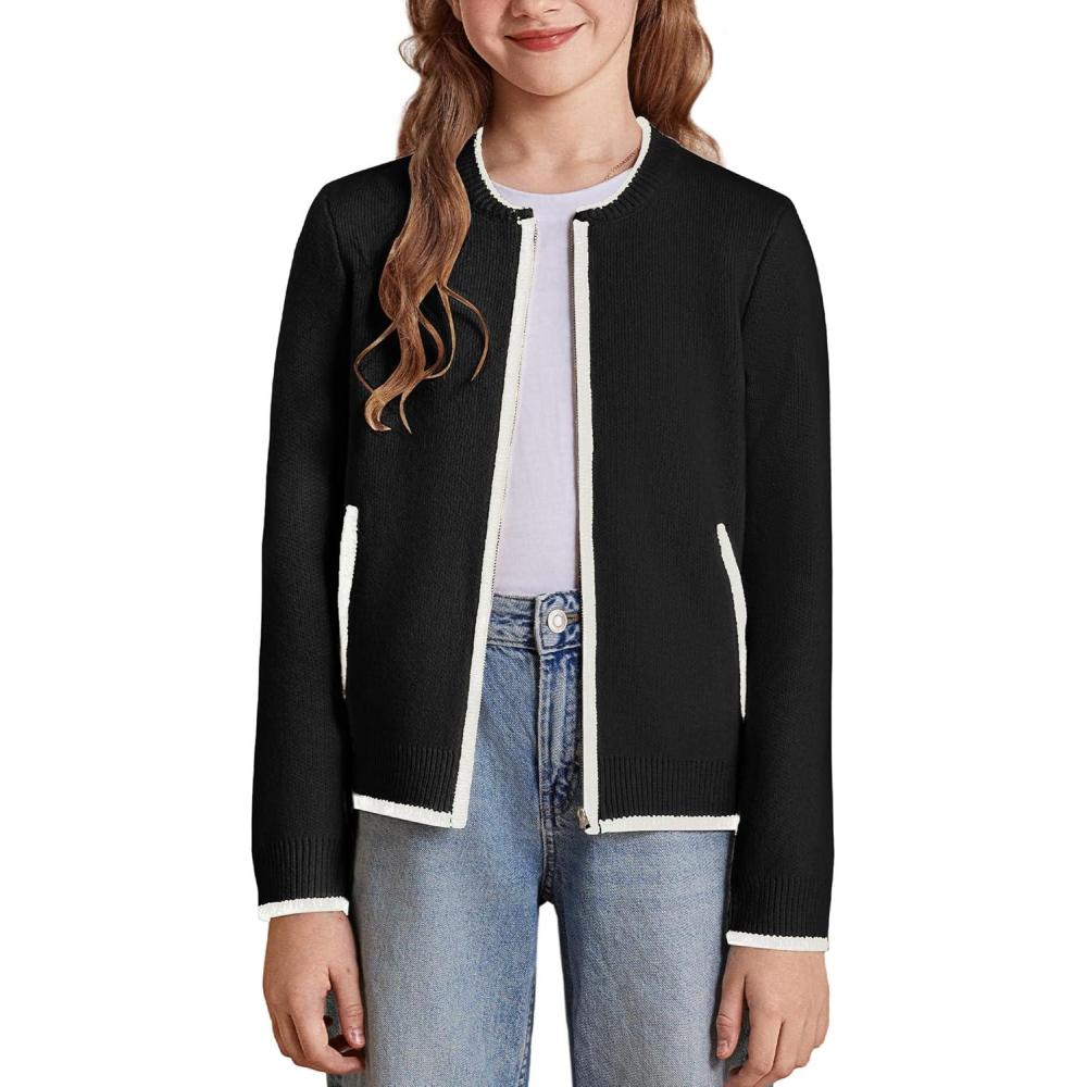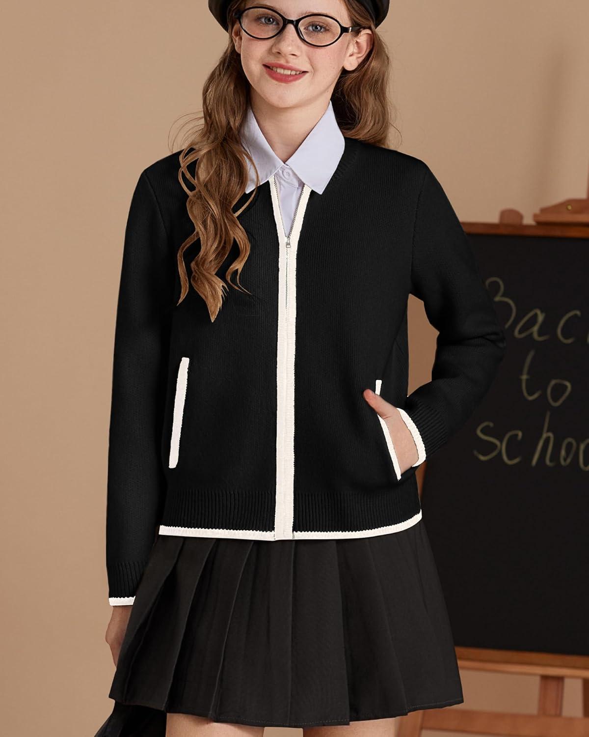 GRACE KARIN Girls Cardigan Knit Zip Uniform Sweater School Winter with Pockets 6-14Y(Black)