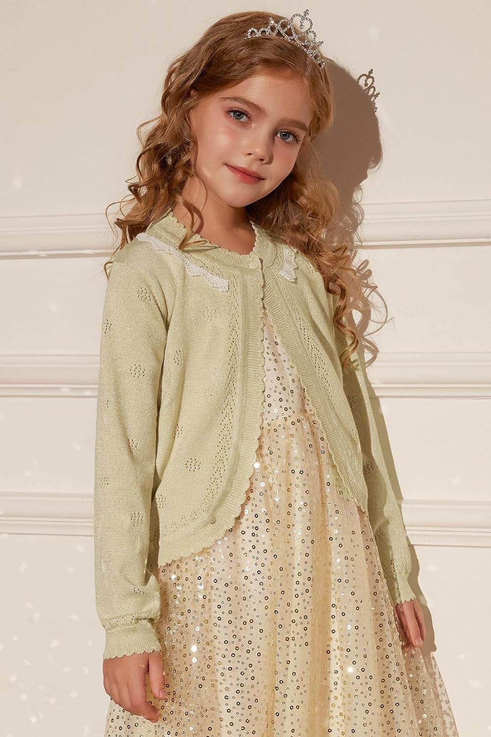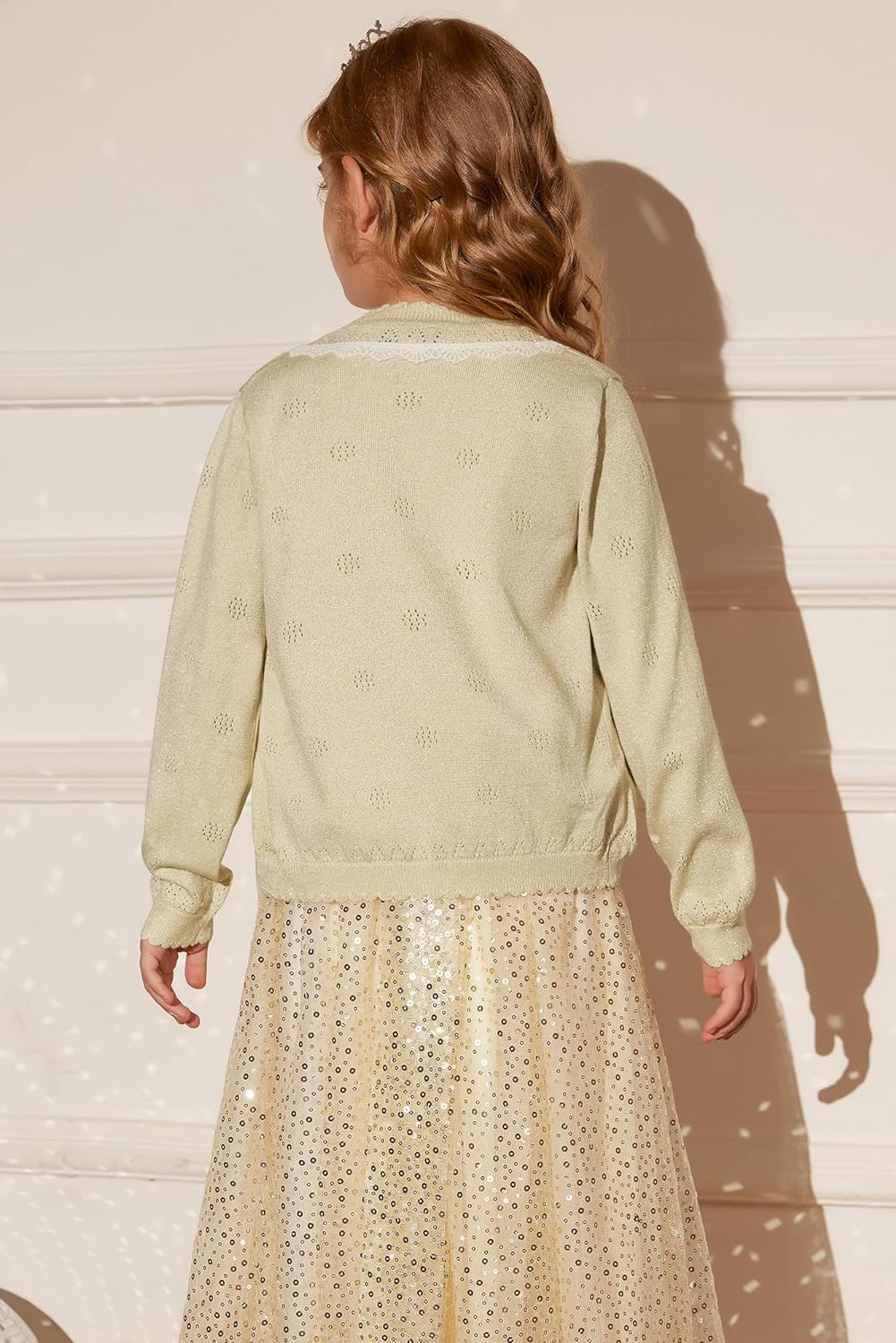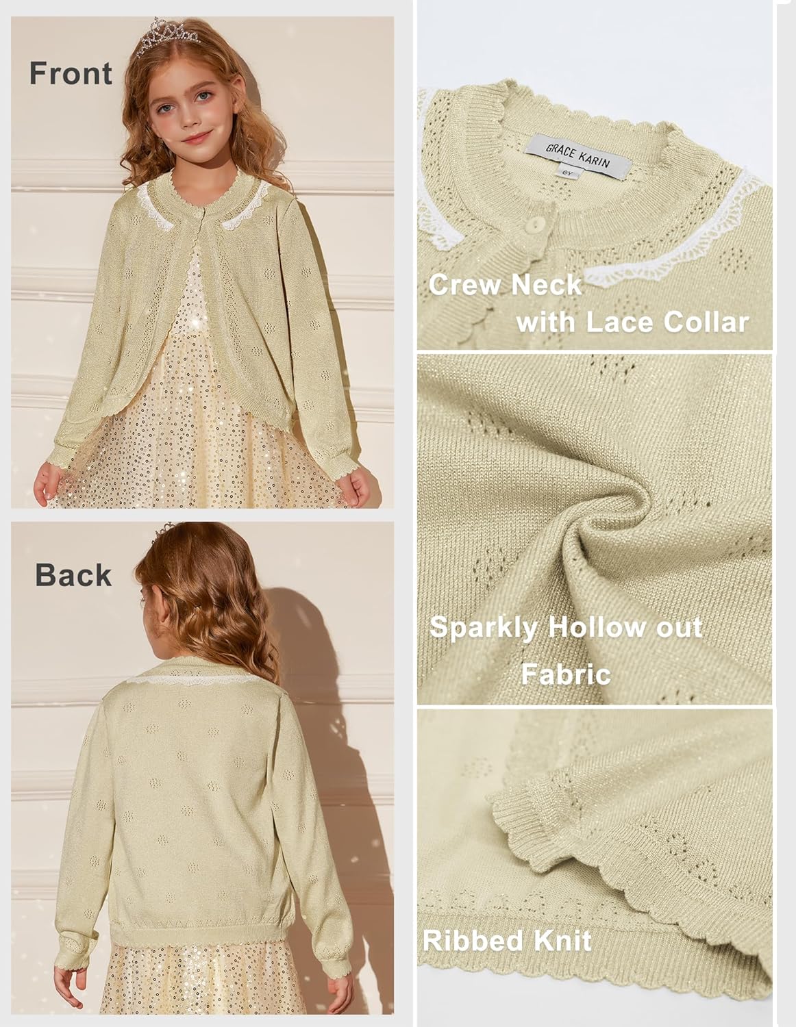 GRACE KARIN Girls Cardigan Long Sleeve Lace Collar Cover Up Shrug Sweater 510YGold
