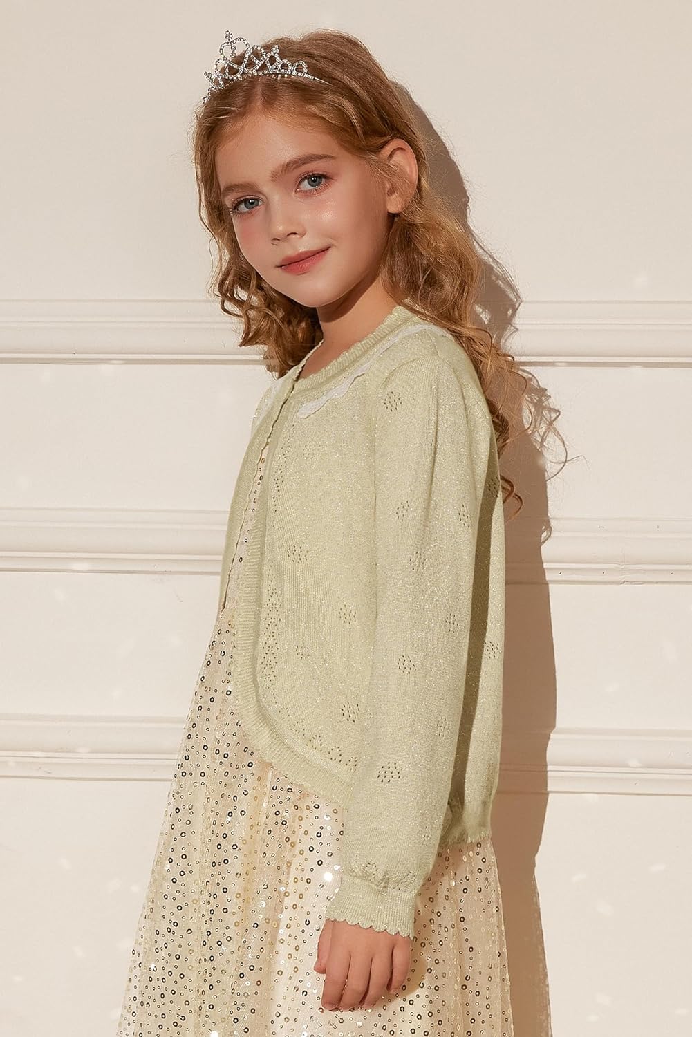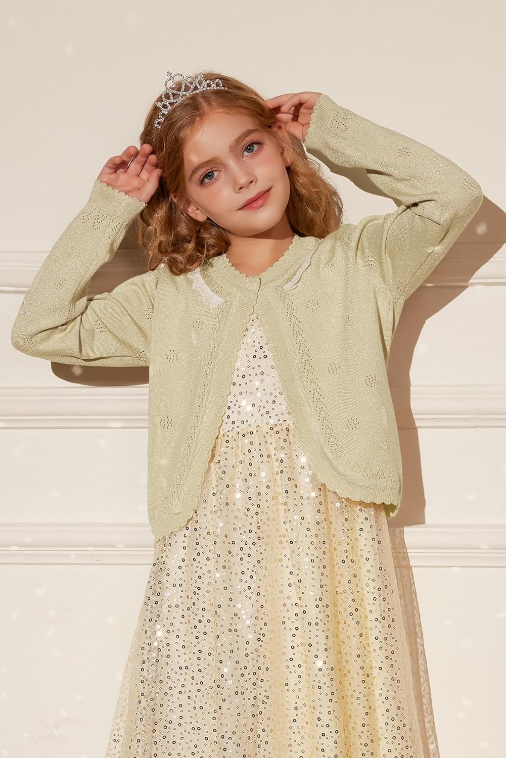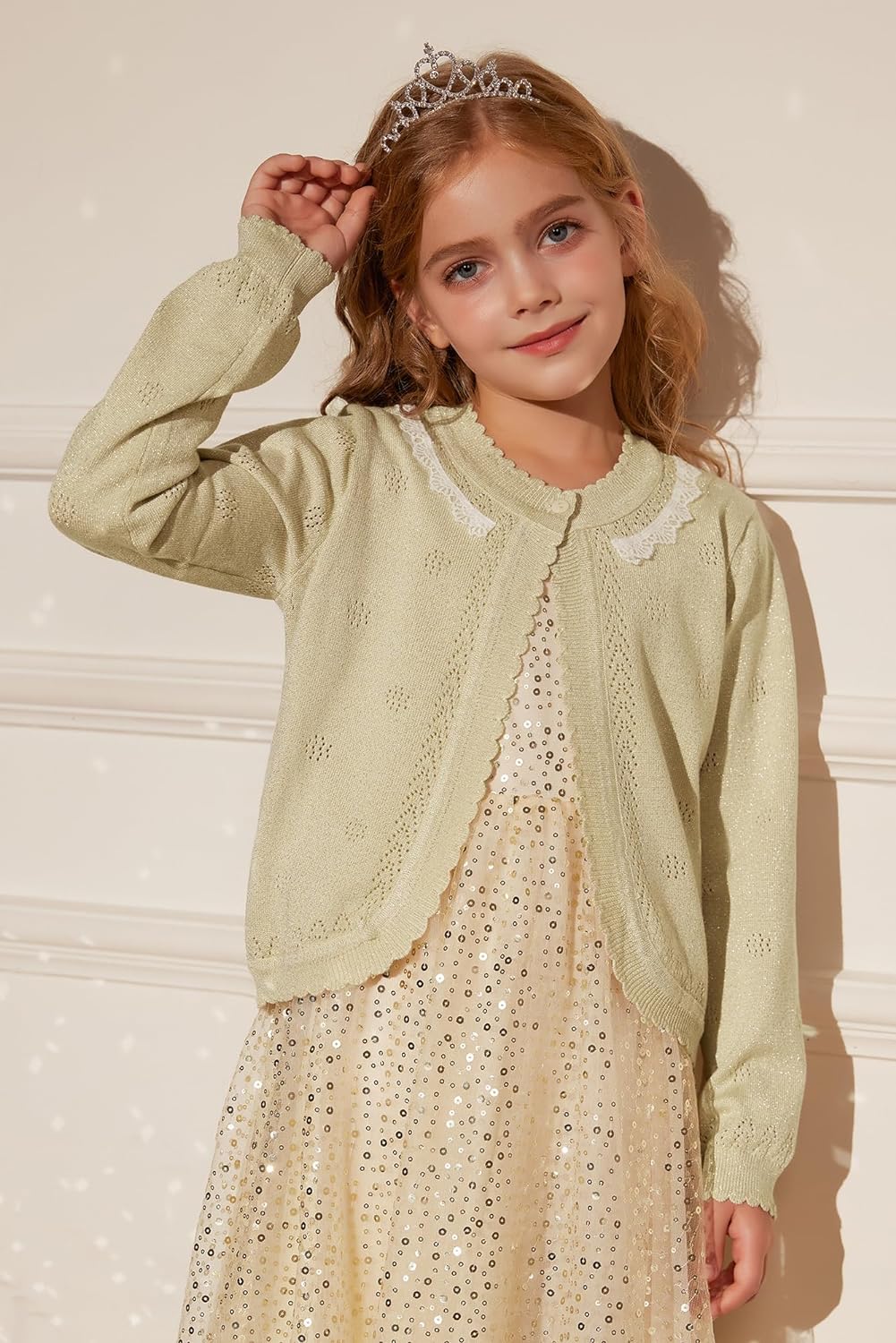 GRACE KARIN Girls Cardigan Long Sleeve Lace Collar Cover Up Shrug Sweater 510YGold