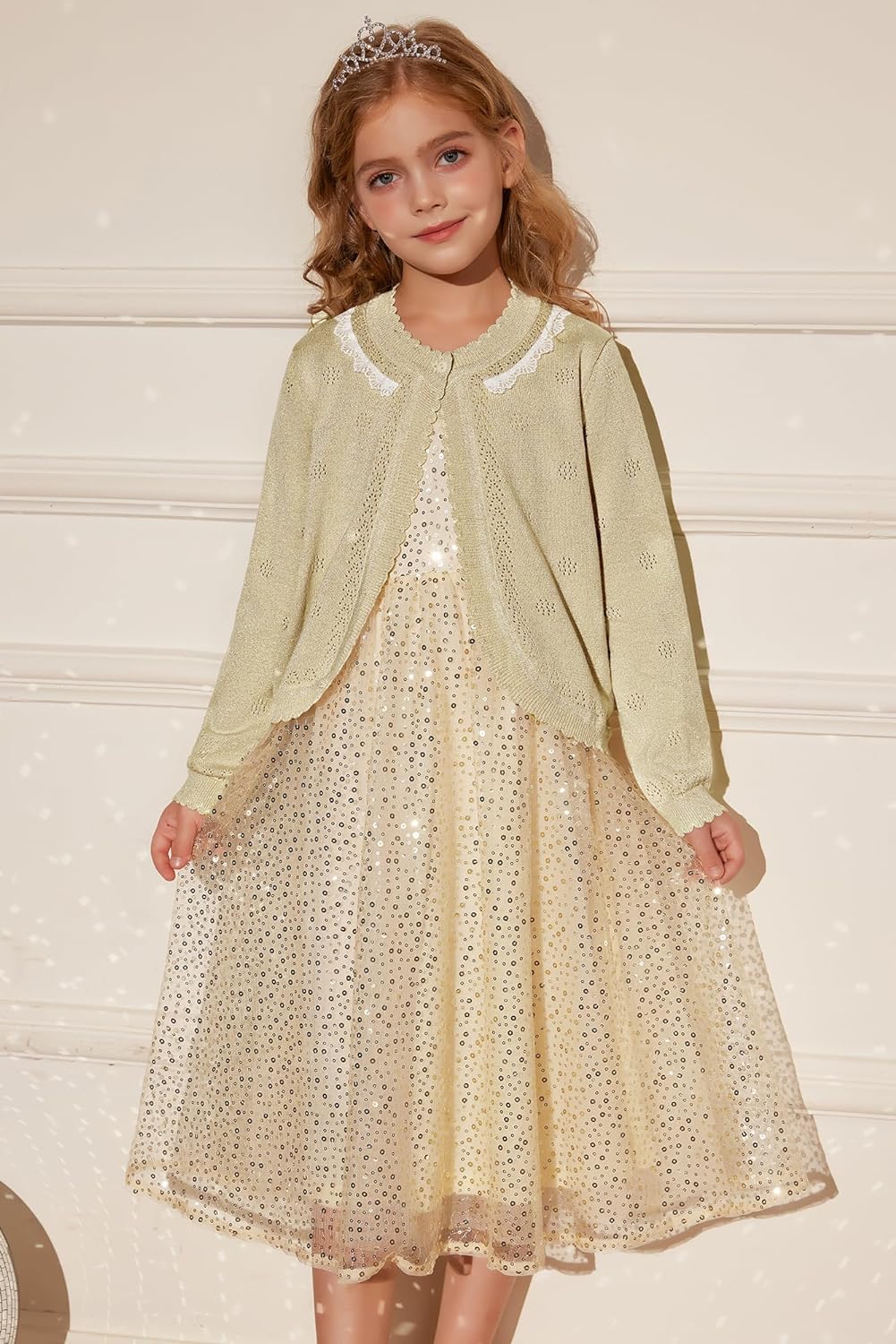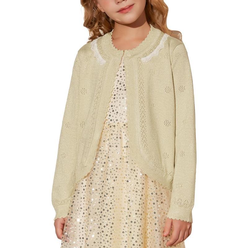 GRACE KARIN Girls Cardigan Long Sleeve Lace Collar Cover Up Shrug Sweater 5-10Y(Gold)