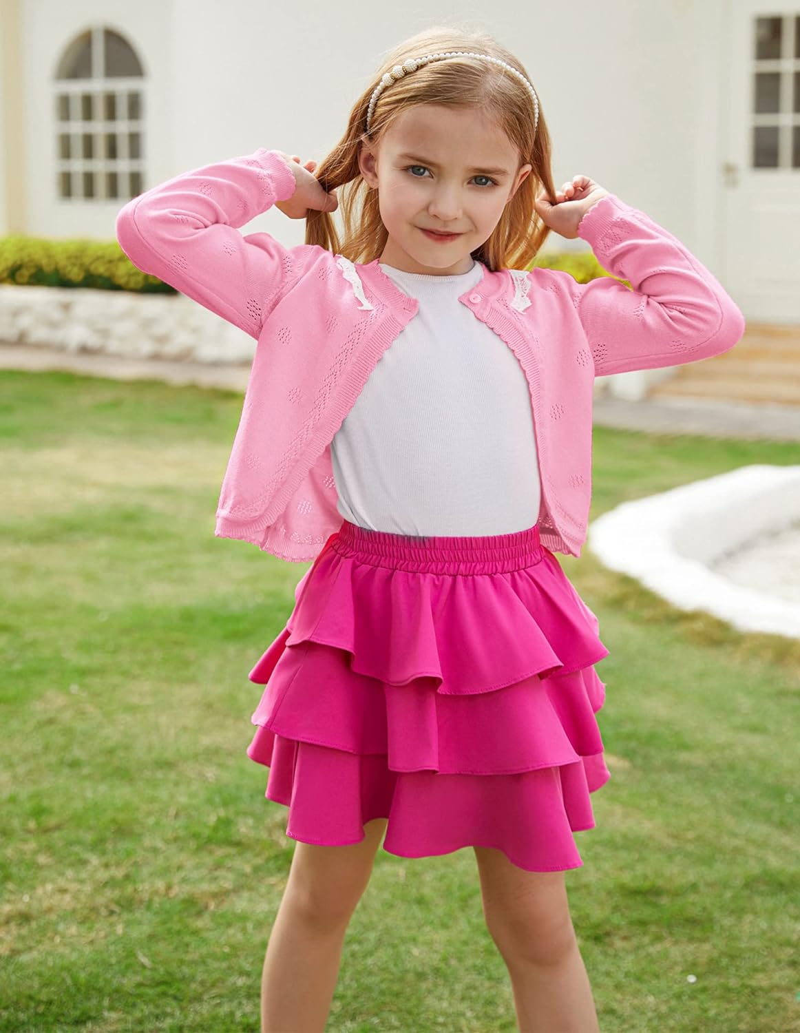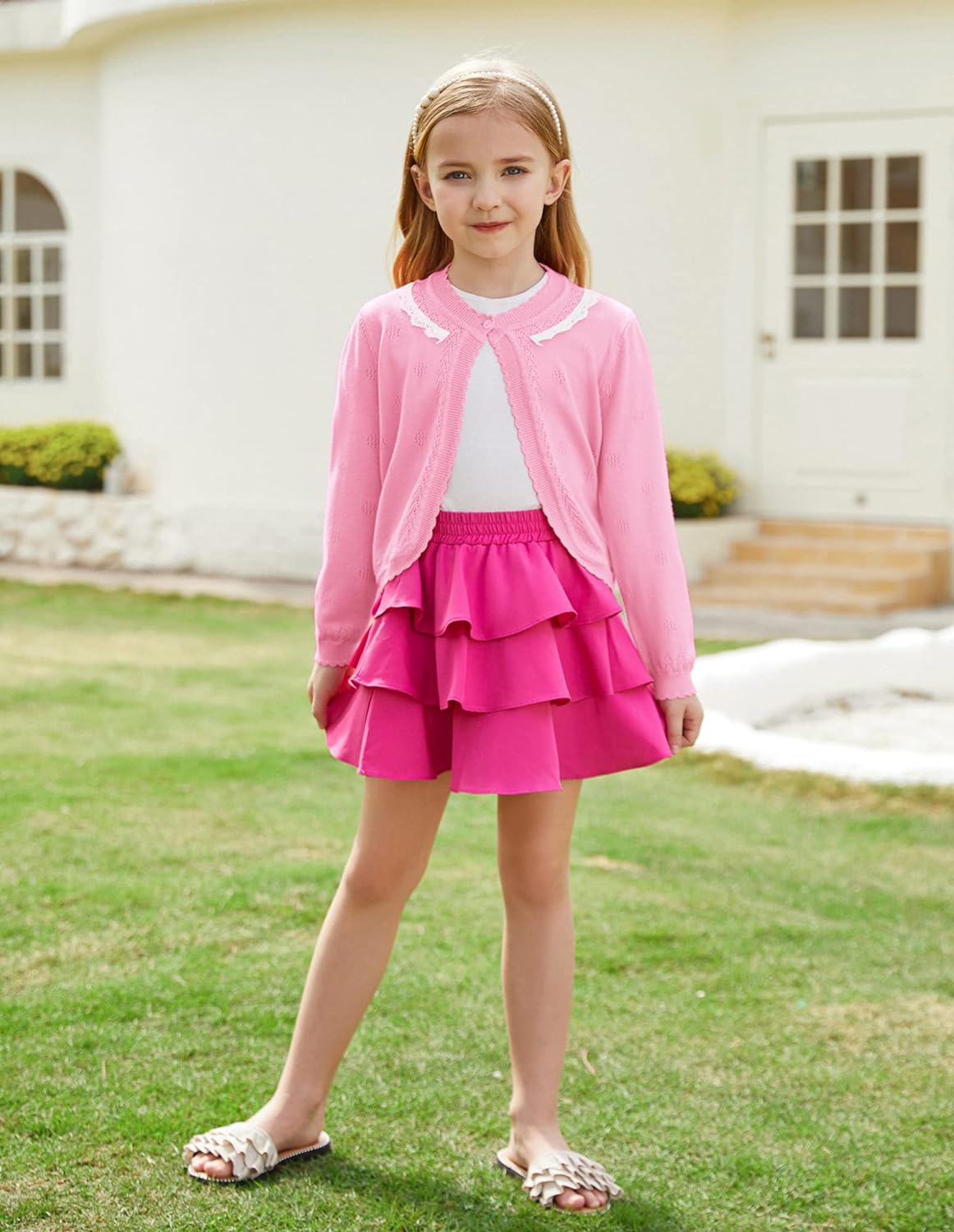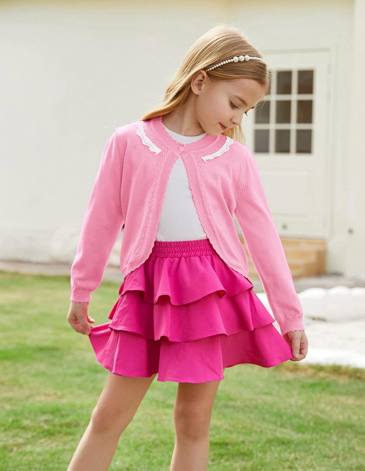 GRACE KARIN Girls Cardigan Long Sleeve Lace Collar Cover Up Shrug Sweater 510YHotpink