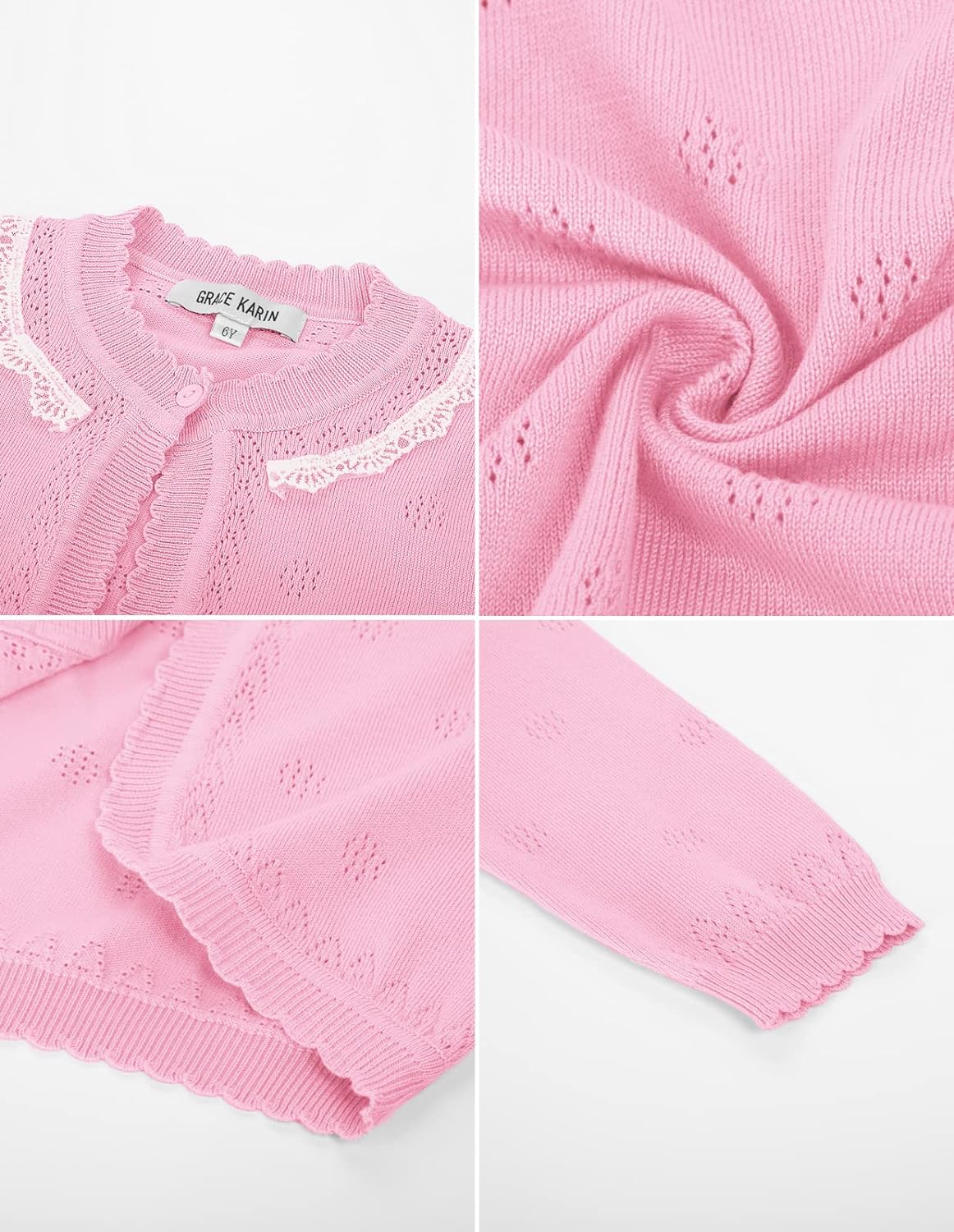 GRACE KARIN Girls Cardigan Long Sleeve Lace Collar Cover Up Shrug Sweater 510YLight Pink