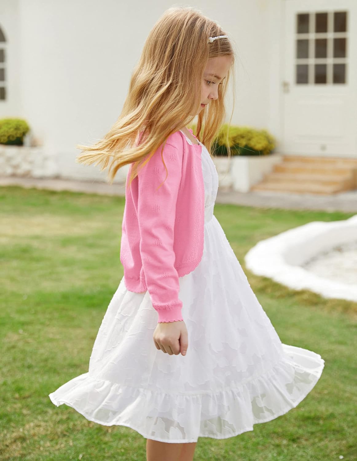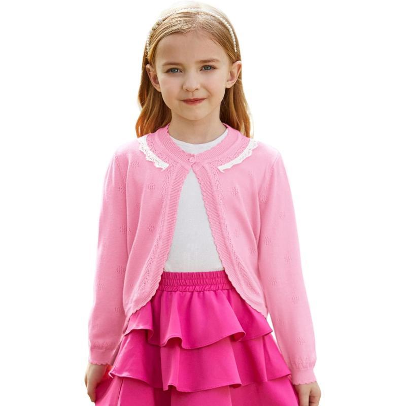 GRACE KARIN Girls Cardigan Long Sleeve Lace Collar Cover Up Shrug Sweater 5-10Y(Light Pink)