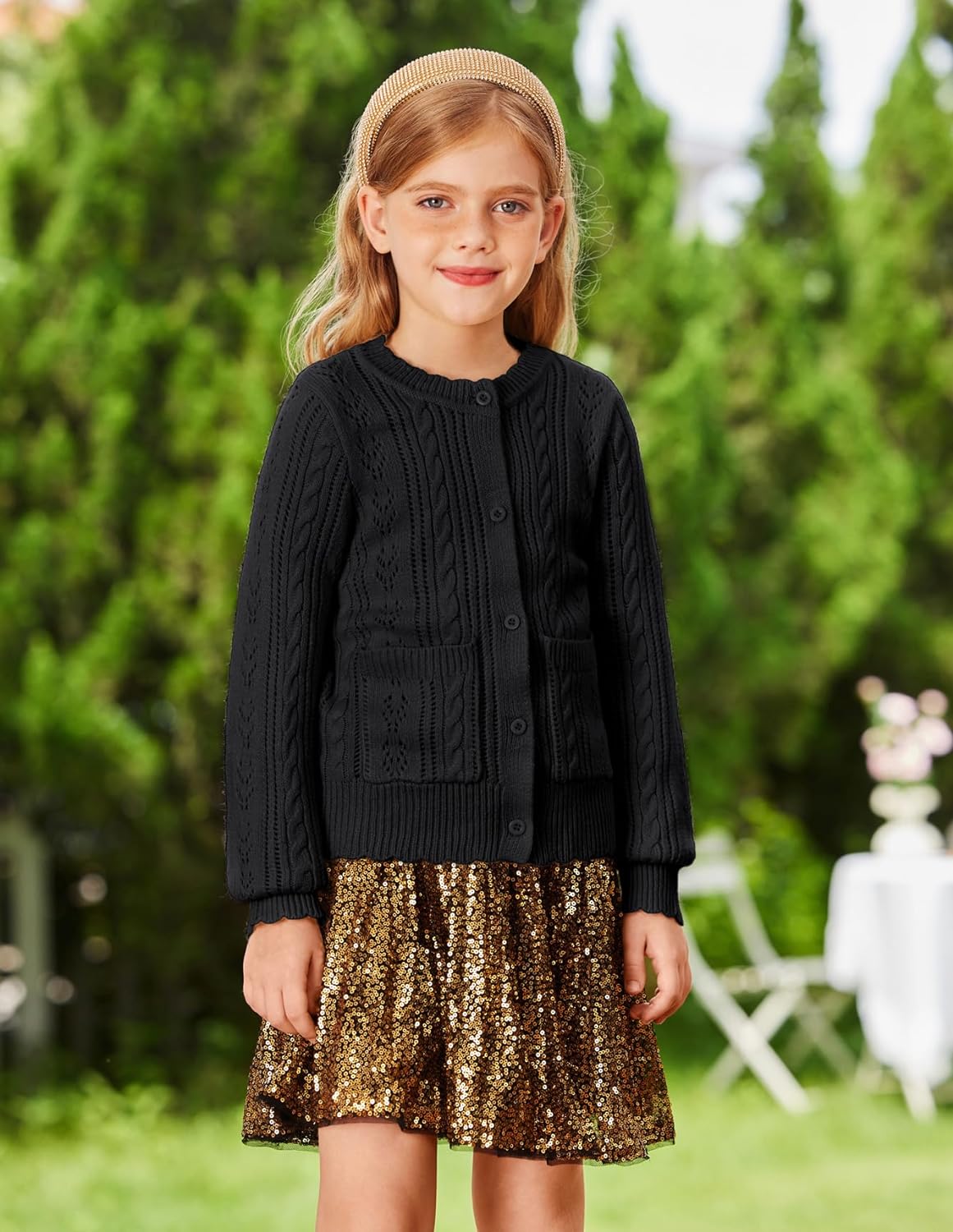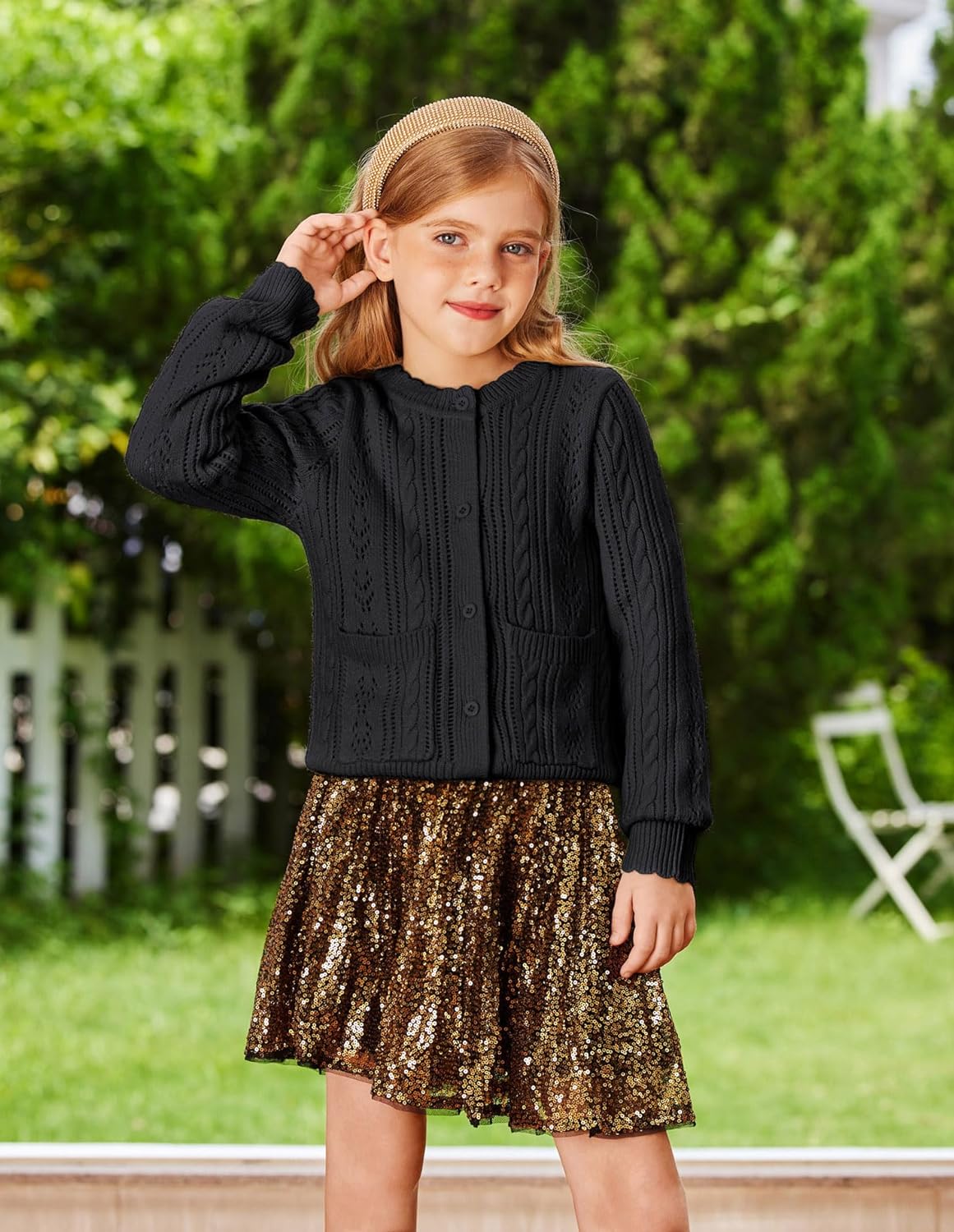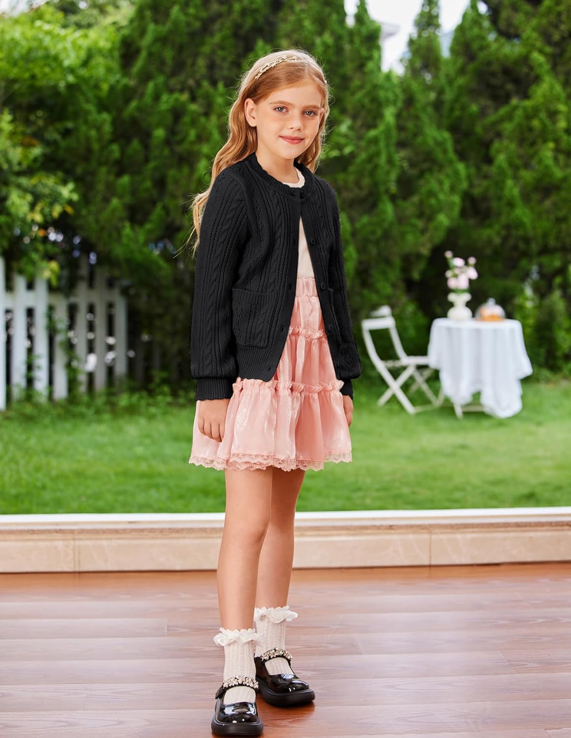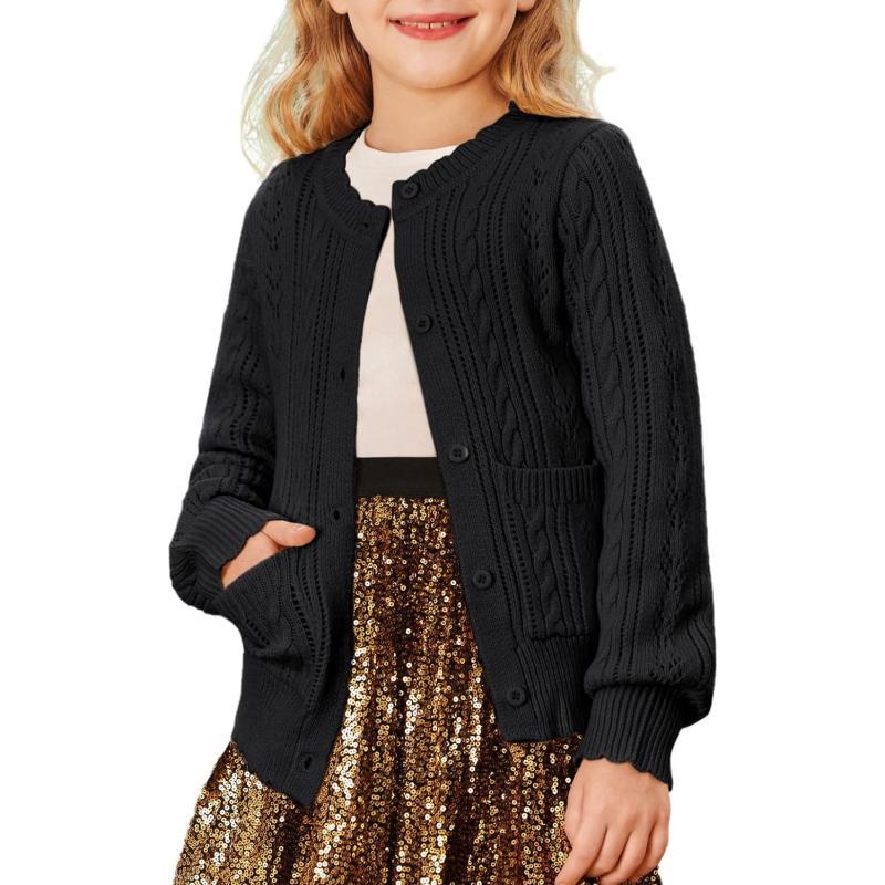 GRACE KARIN Girls Cardigan Long Sleeve Uniforms Knit Sweater Outerwear for KidsBlack