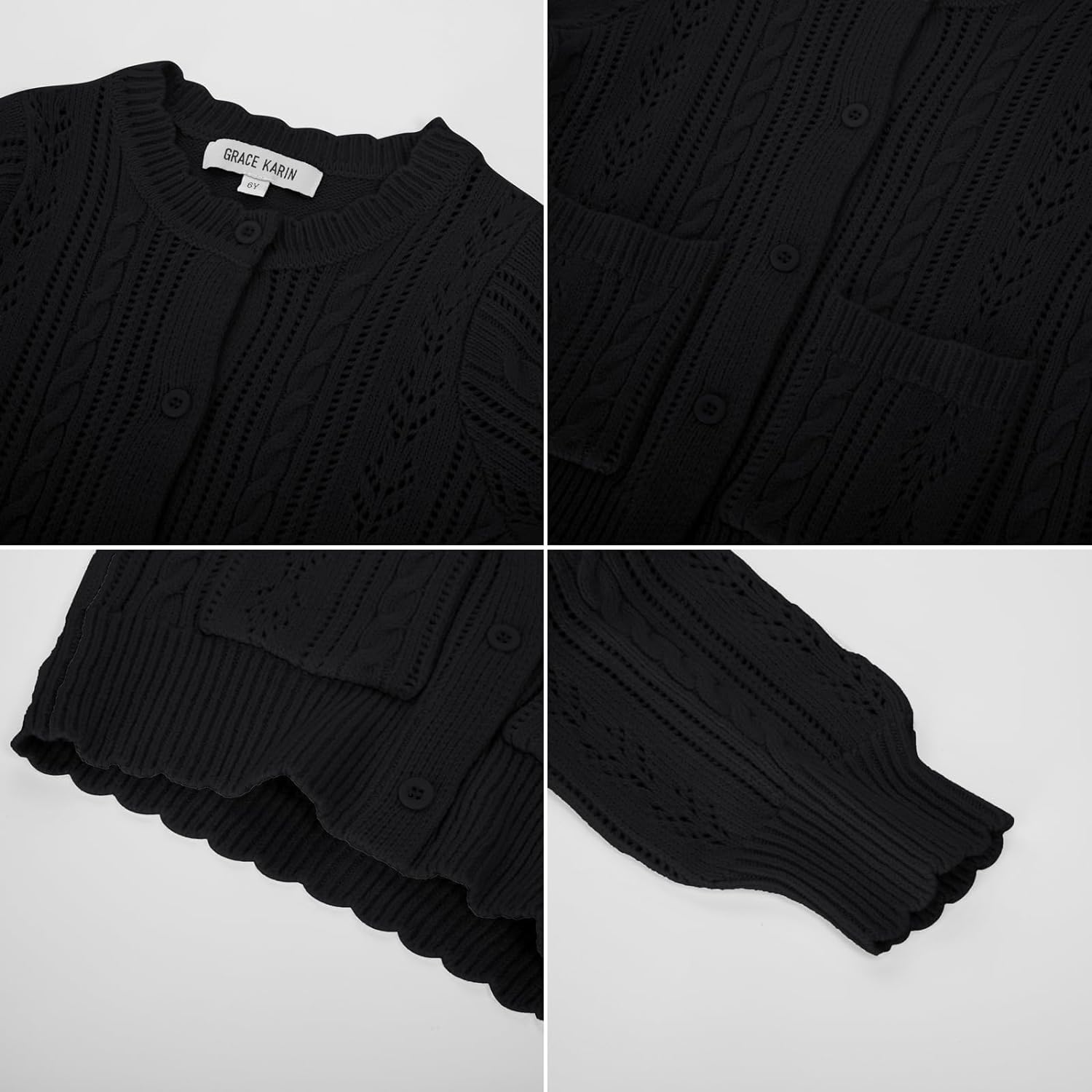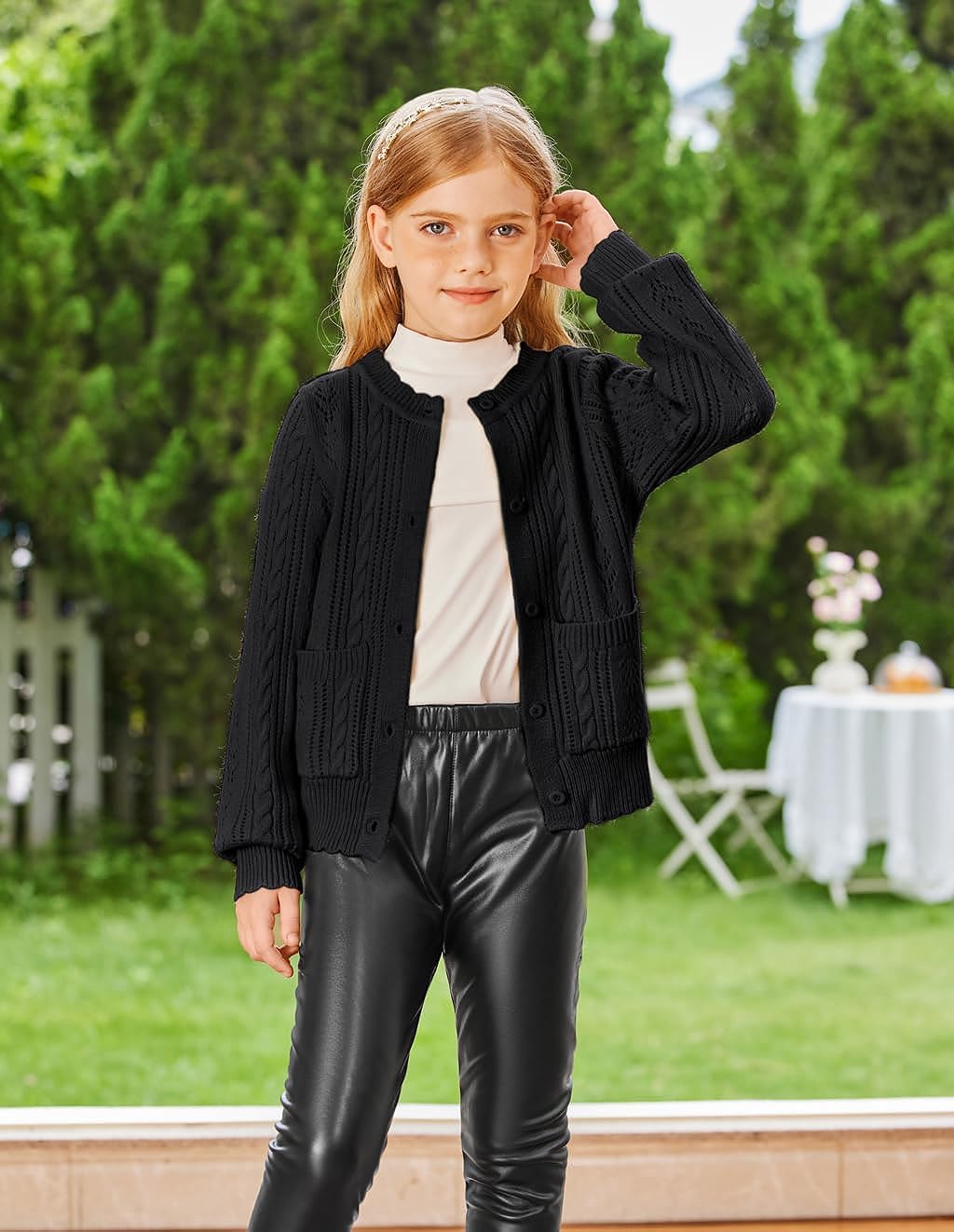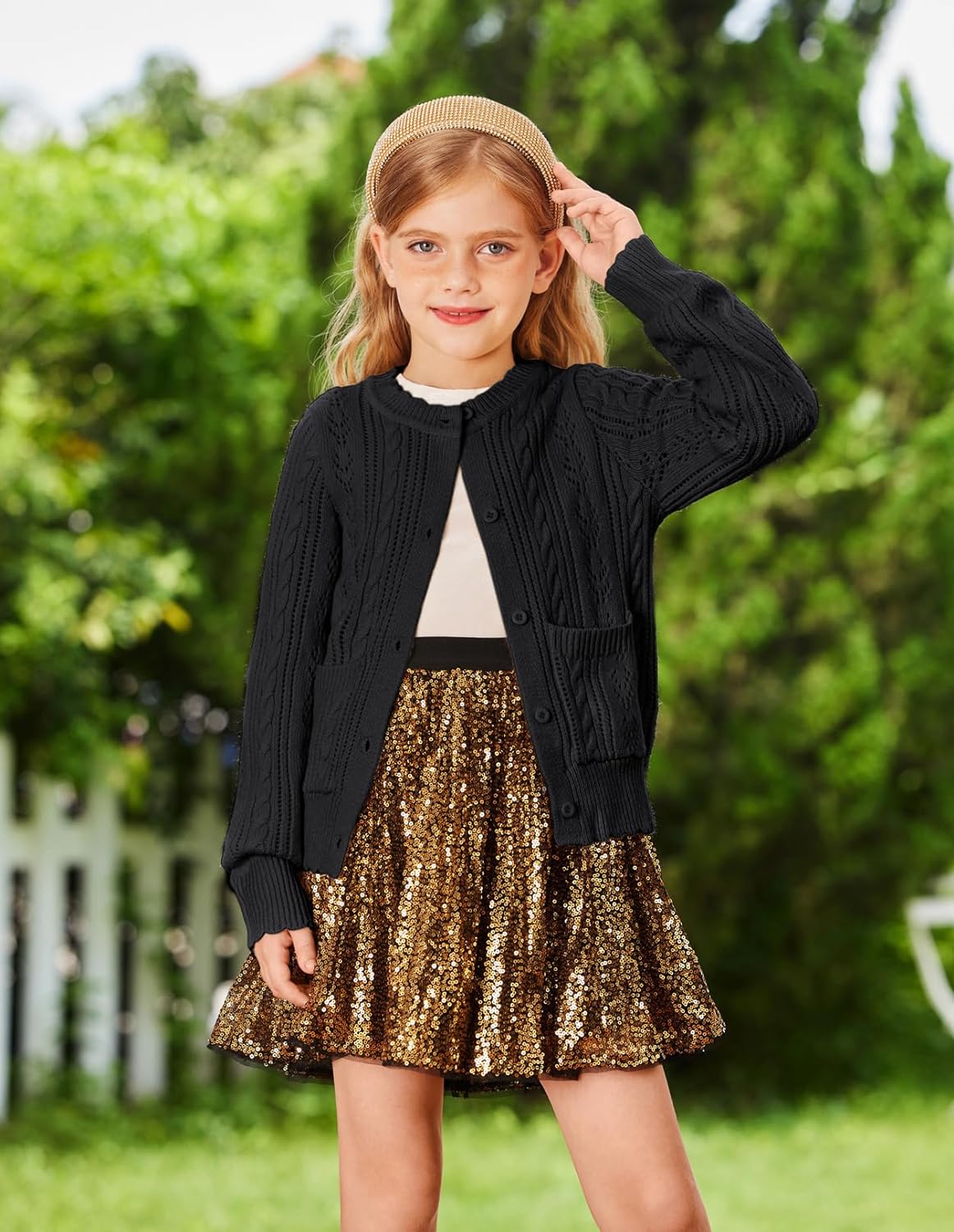 GRACE KARIN Girls Cardigan Long Sleeve Uniforms Knit Sweater Outerwear for KidsBlack