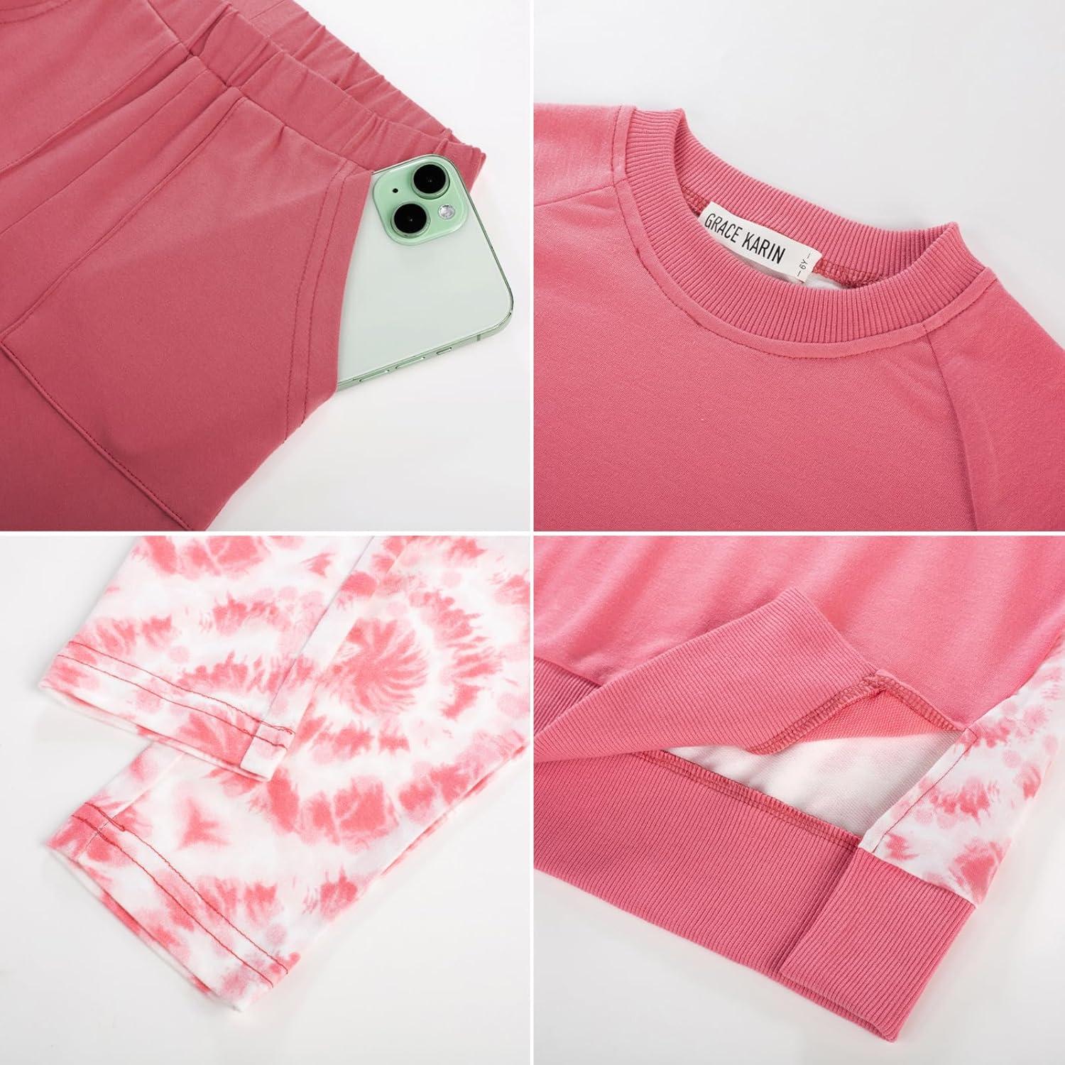 GRACE KARIN Girls Clothes Sweatshirt for Teen Girls Fashion Outfits Sweapants Leggings Tracksuit Clothing Set Size 5-14(Grey Pink)