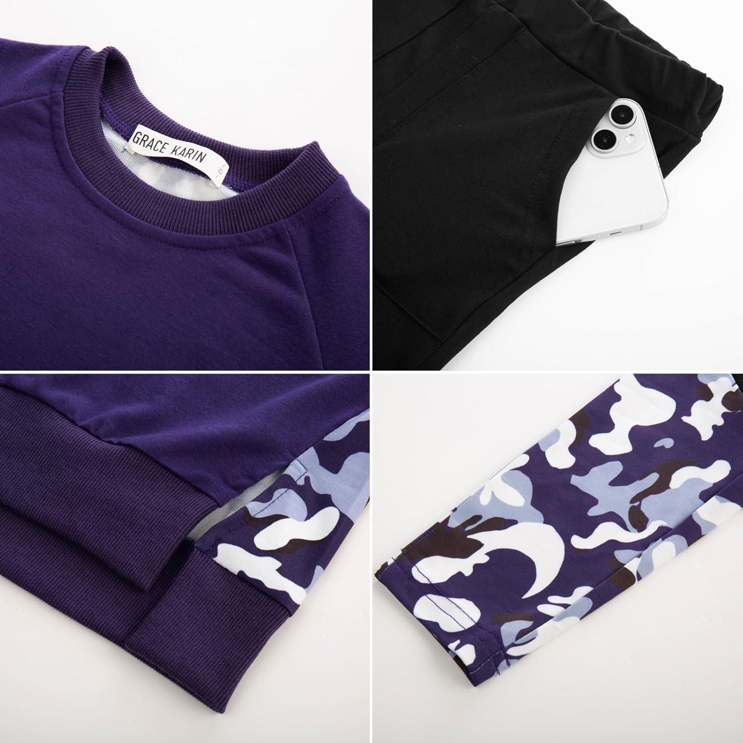 GRACE KARIN Girls Clothes Sweatshirt for Teen Girls Fashion Outfits Sweapants Leggings Tracksuit Clothing Set Size 5-14(Purple Camouflage)