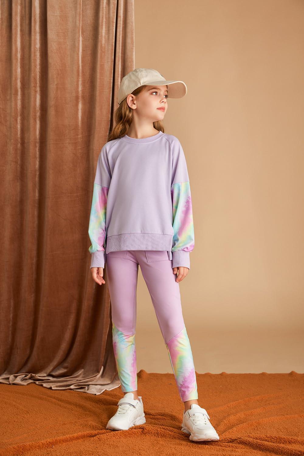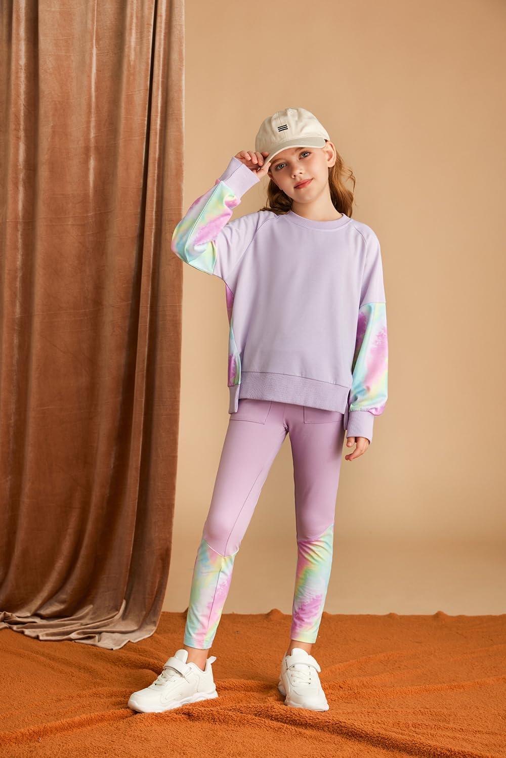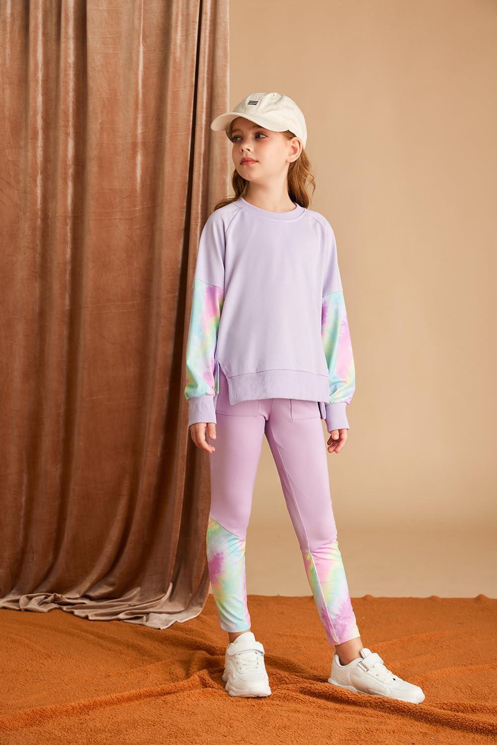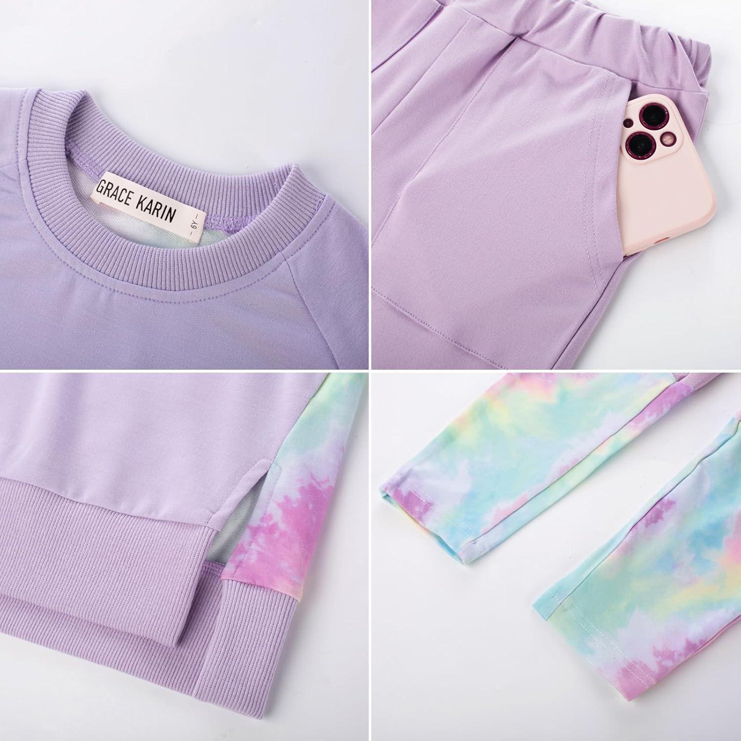 GRACE KARIN Girls Clothes Sweatshirt for Teen Girls Fashion Outfits Sweapants Leggings Tracksuit Clothing Set Size 5-14(Purple)