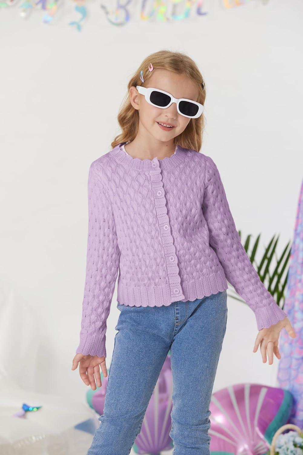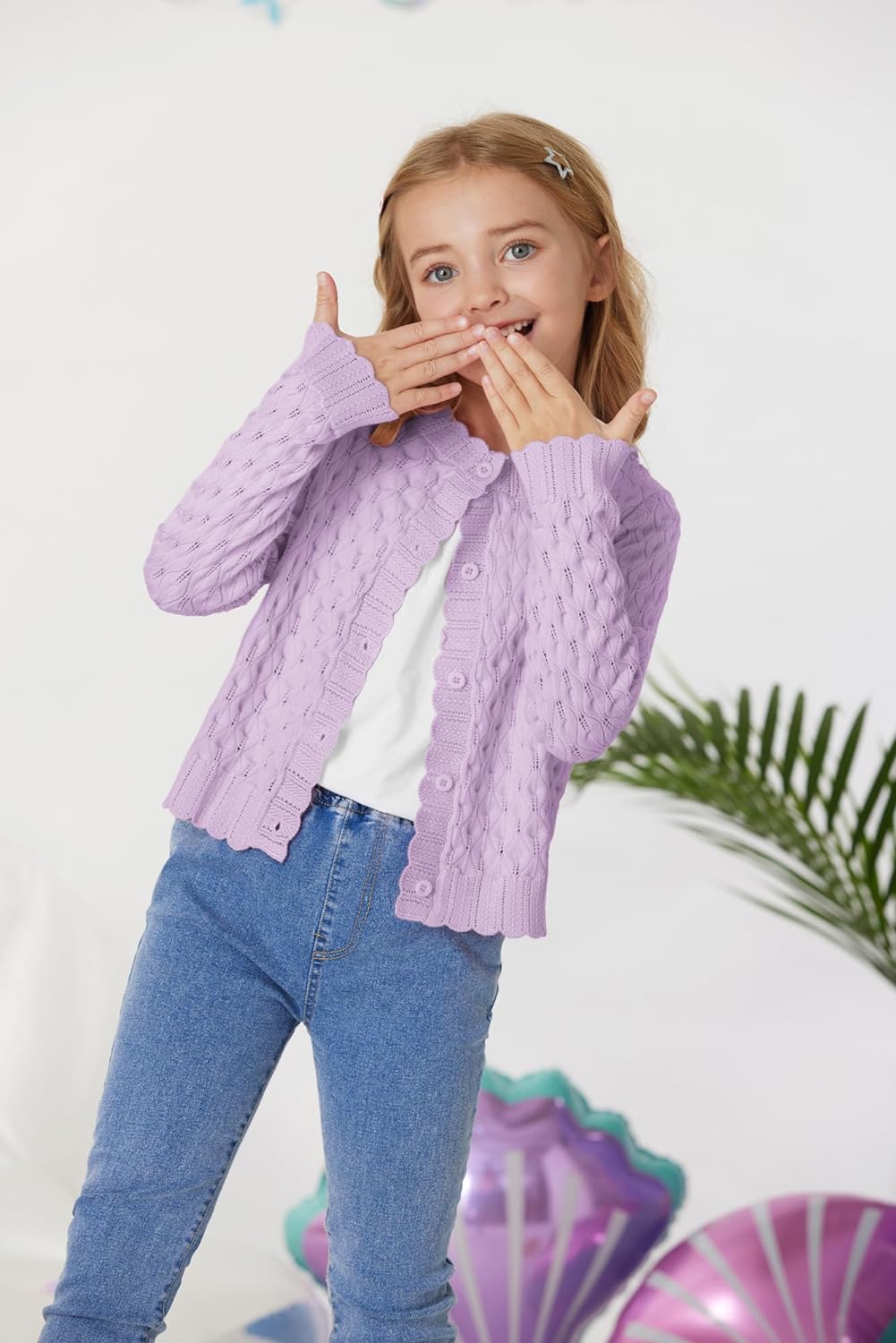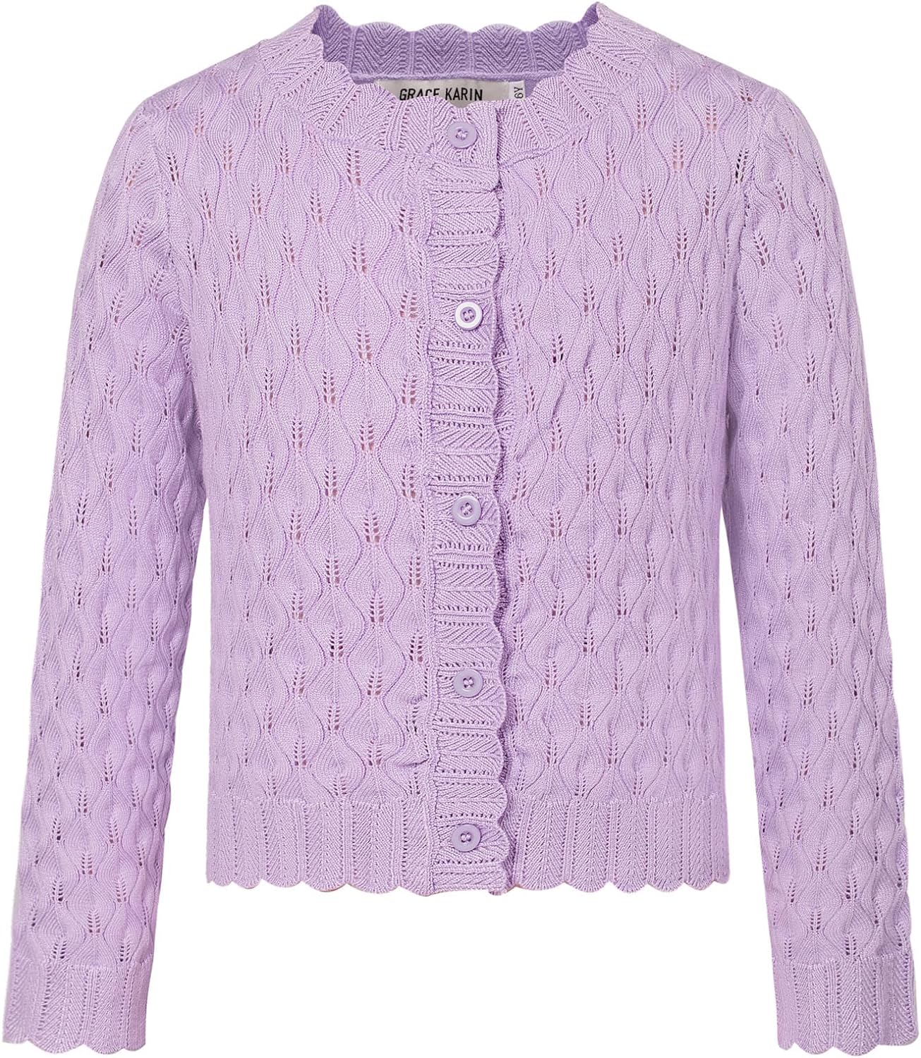 GRACE KARIN Girls Cropped Cardigan Sweaters Long Sleeve Cable Knit Button Front Sweater 5-12Y(Lavender)