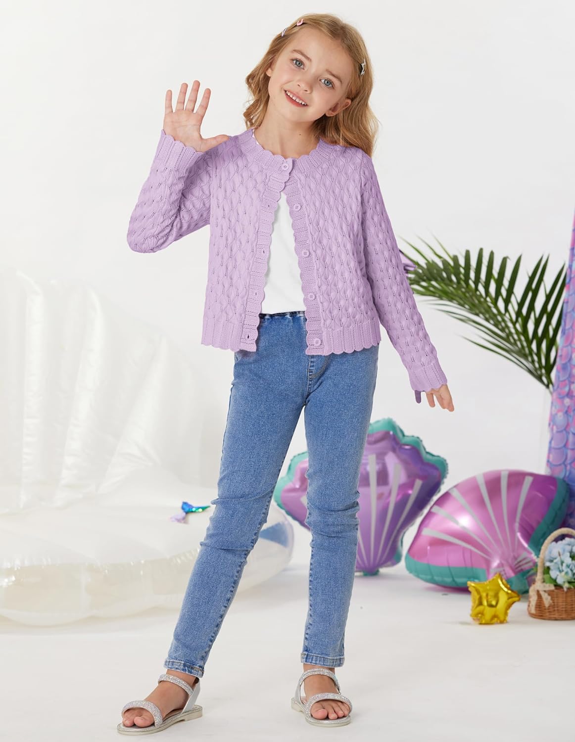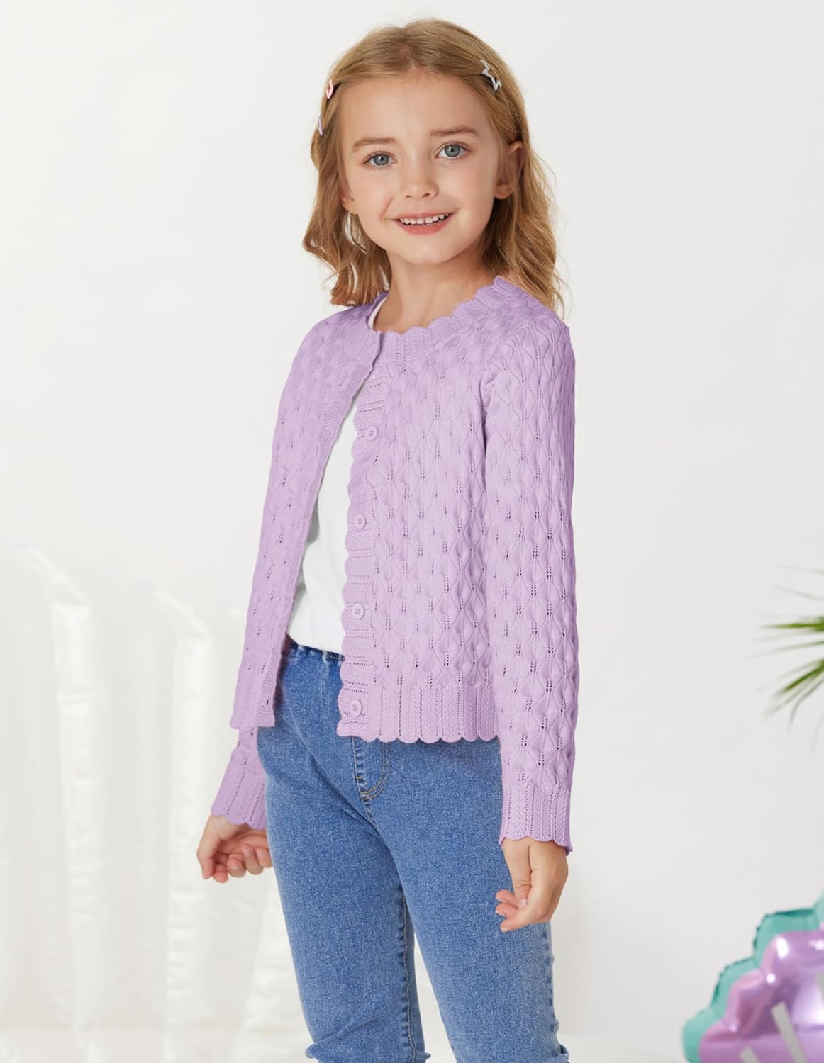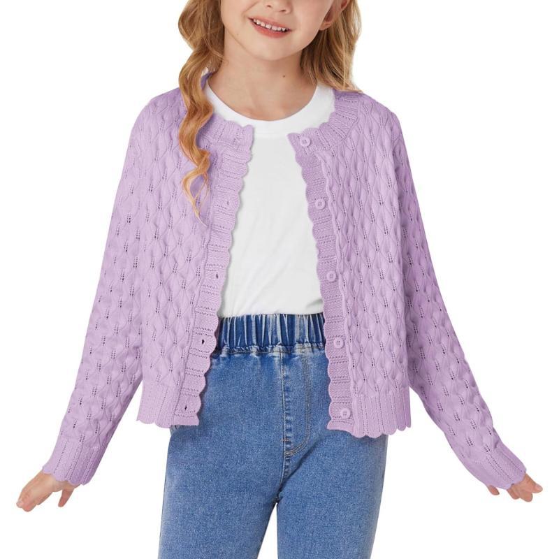 GRACE KARIN Girls Cropped Cardigan Sweaters Long Sleeve Cable Knit Button Front Sweater 5-12Y(Lavender)