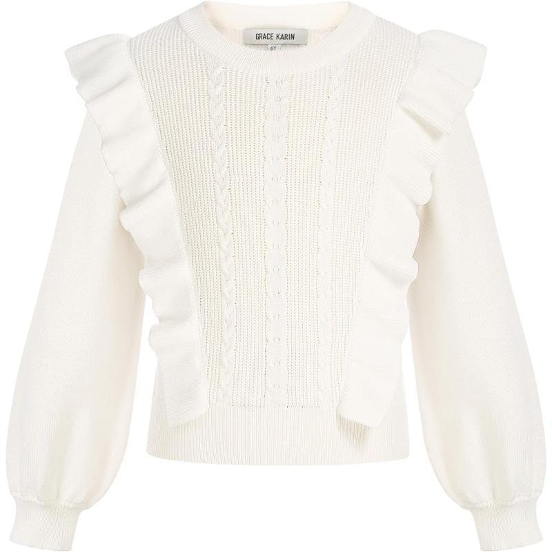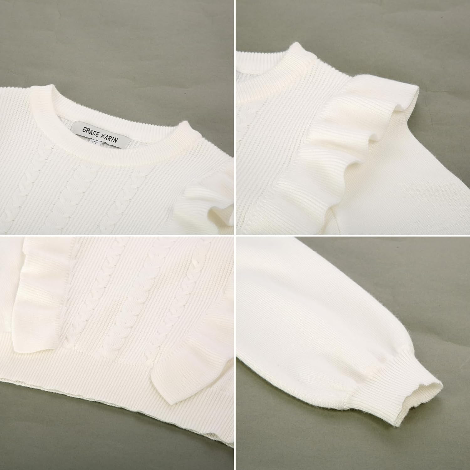 GRACE KARIN Girls Cute Sweater Long Sleeve Ruffled Pullover Sweater for Girls 5-12Y(White)