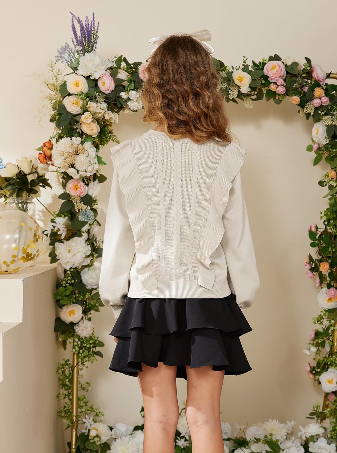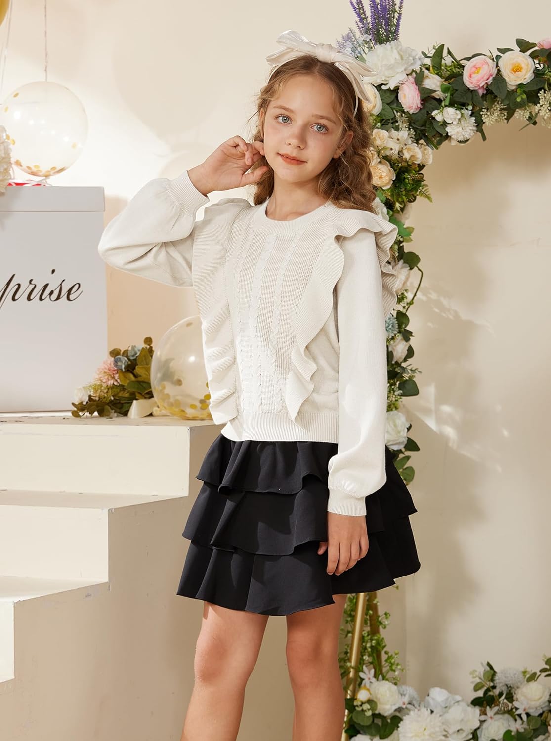 GRACE KARIN Girls Cute Sweater Long Sleeve Ruffled Pullover Sweater for Girls 512YWhite