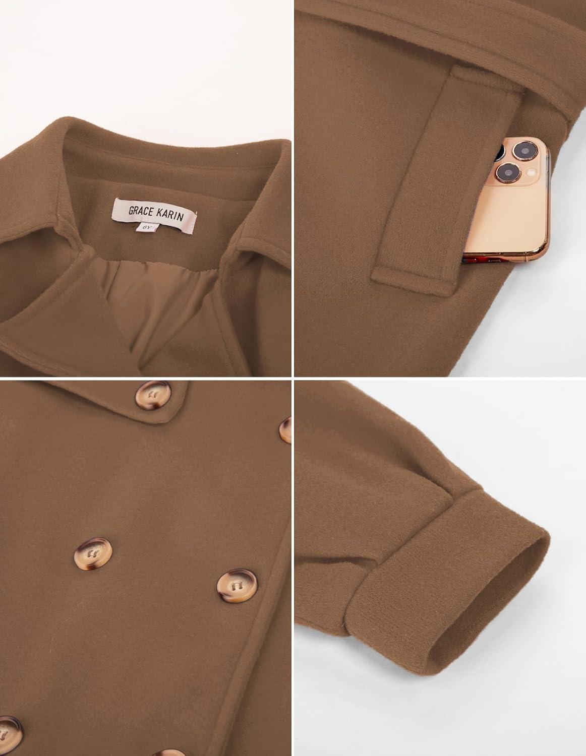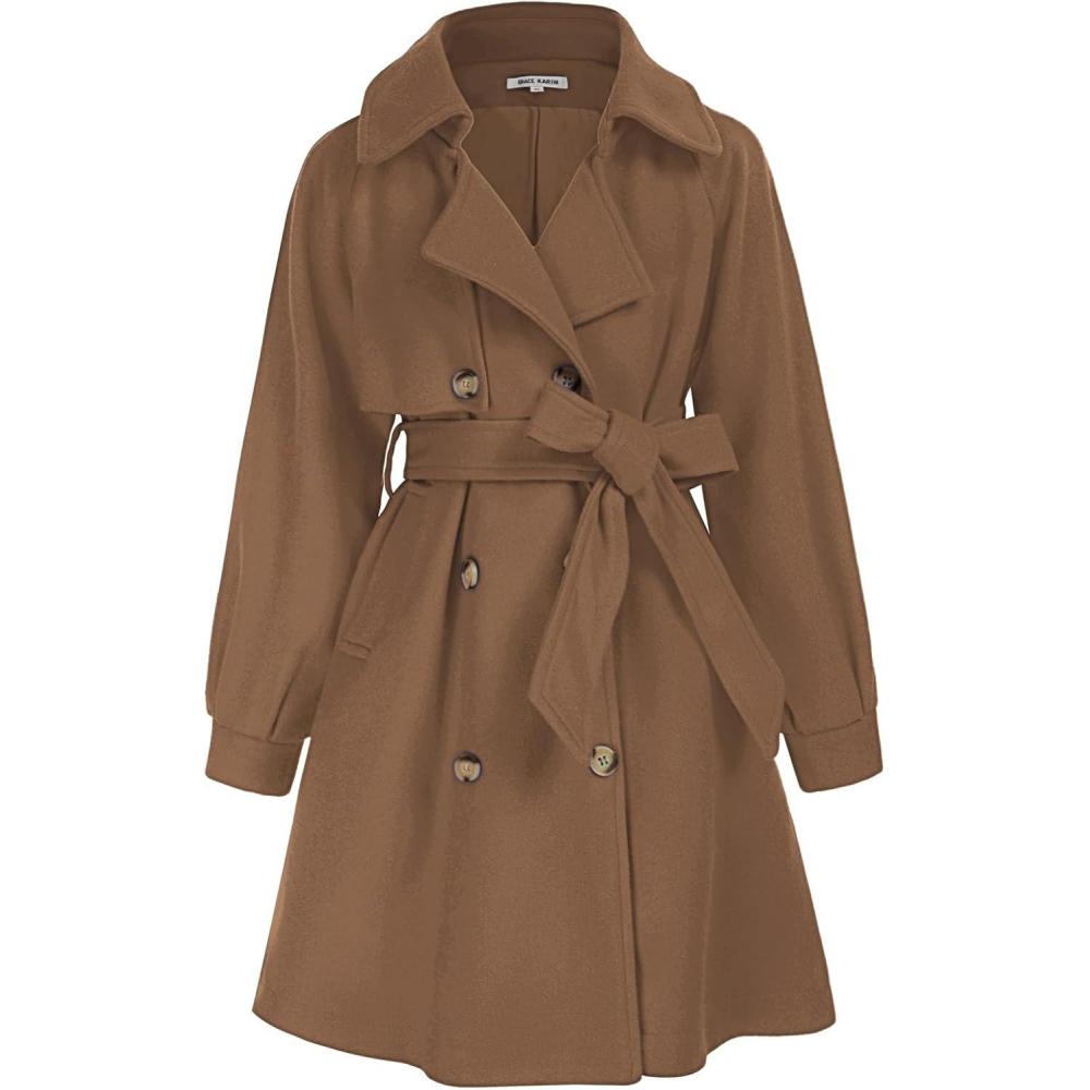 imageGRACE KARIN Girls Dress Coat Lapel Wool Blend Long Winter Jackets with Pockets Belt 614YDark Camel