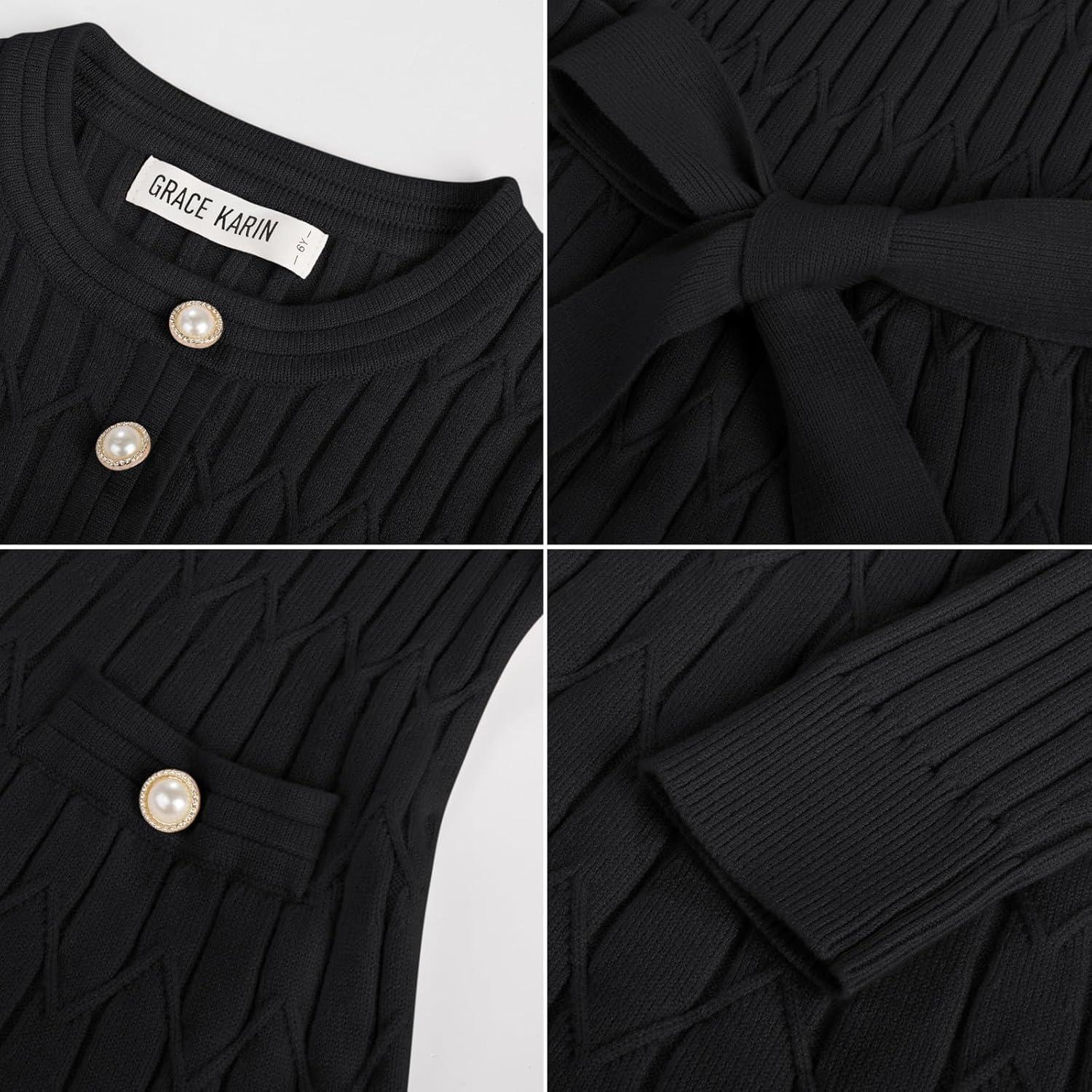 imageGRACE KARIN Girls Dress Fall Winter Sweater Long Sleeve Cable Knit Button Casual Dresses for Teen Girl 614YBlack