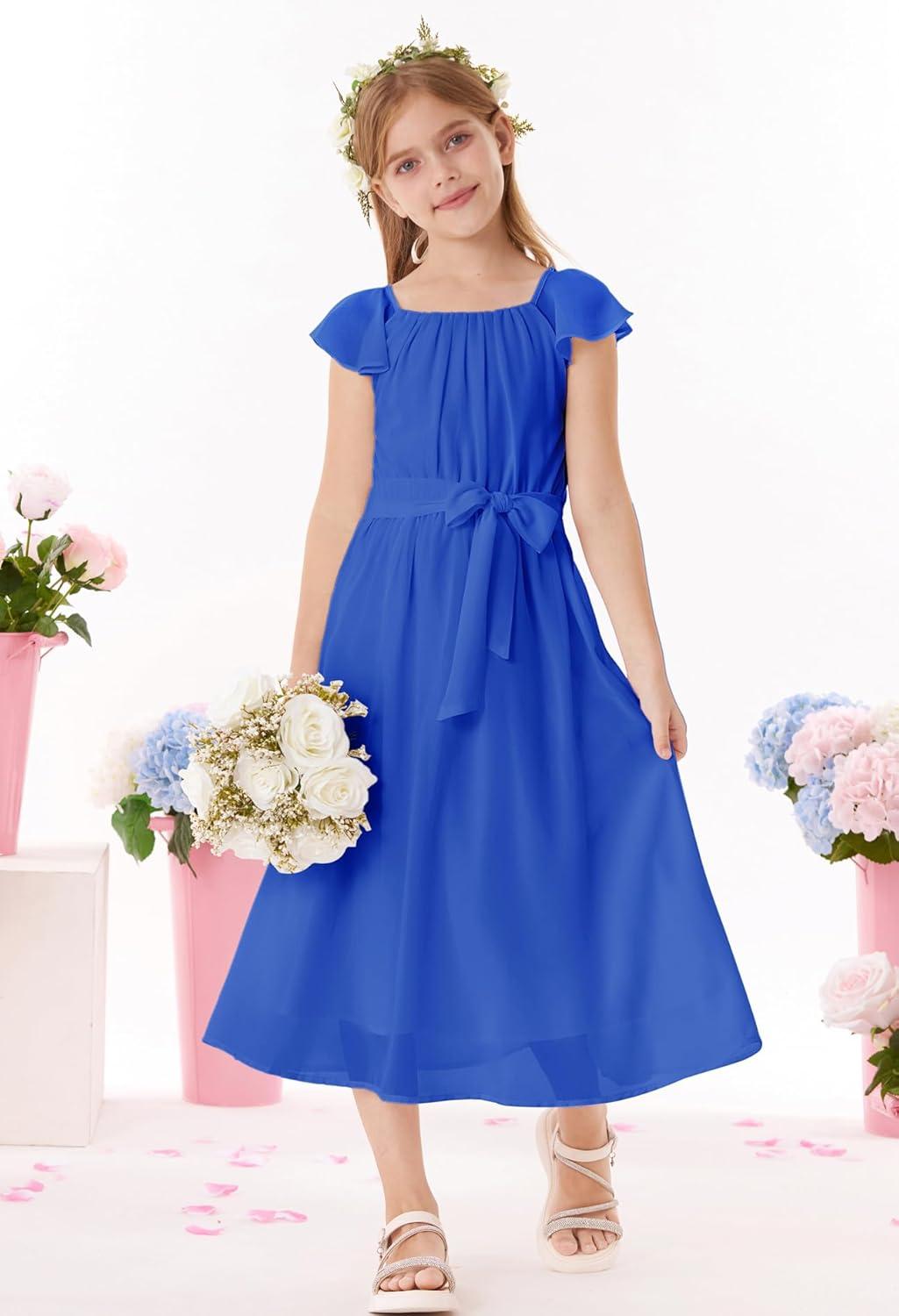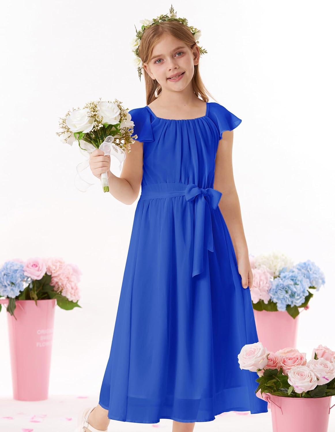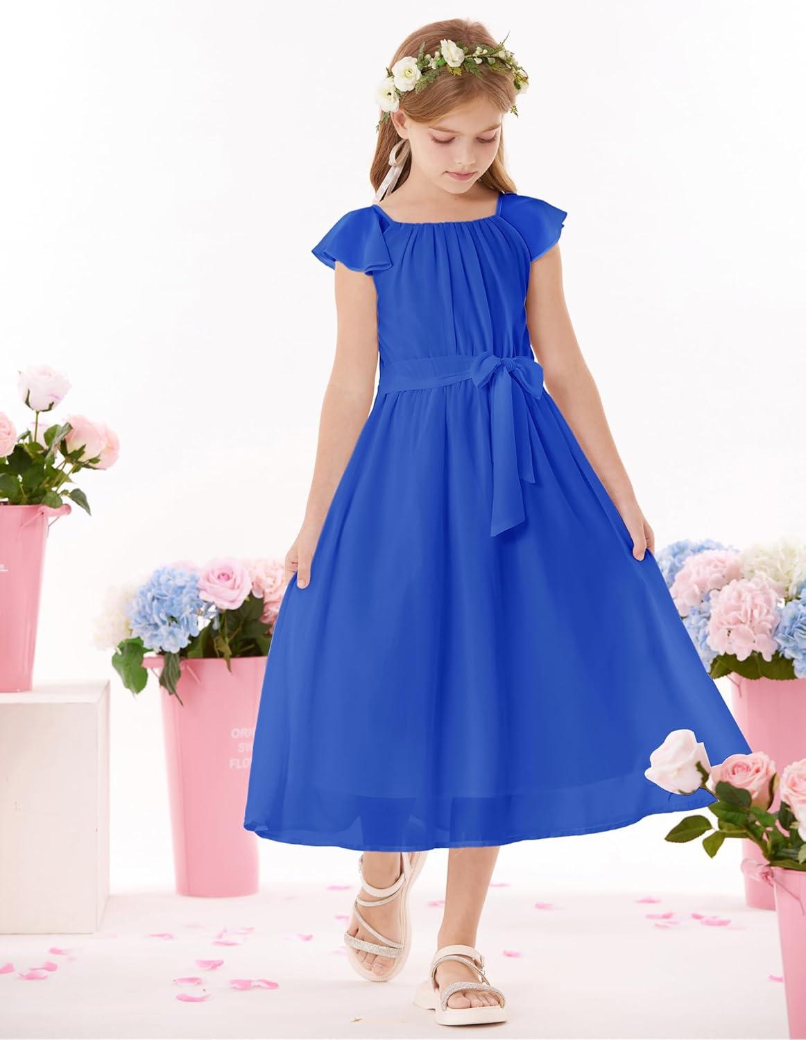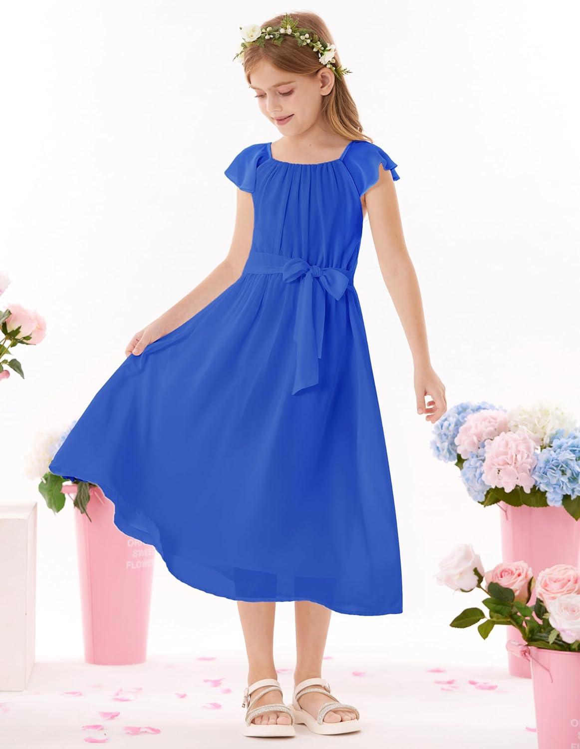 GRACE KARIN Girls Dress Formal Party Wedding Guest Pageant Dress for Teen Girls Ruffle Backless Maxi Sundress Size 6-14(Royal Blue)