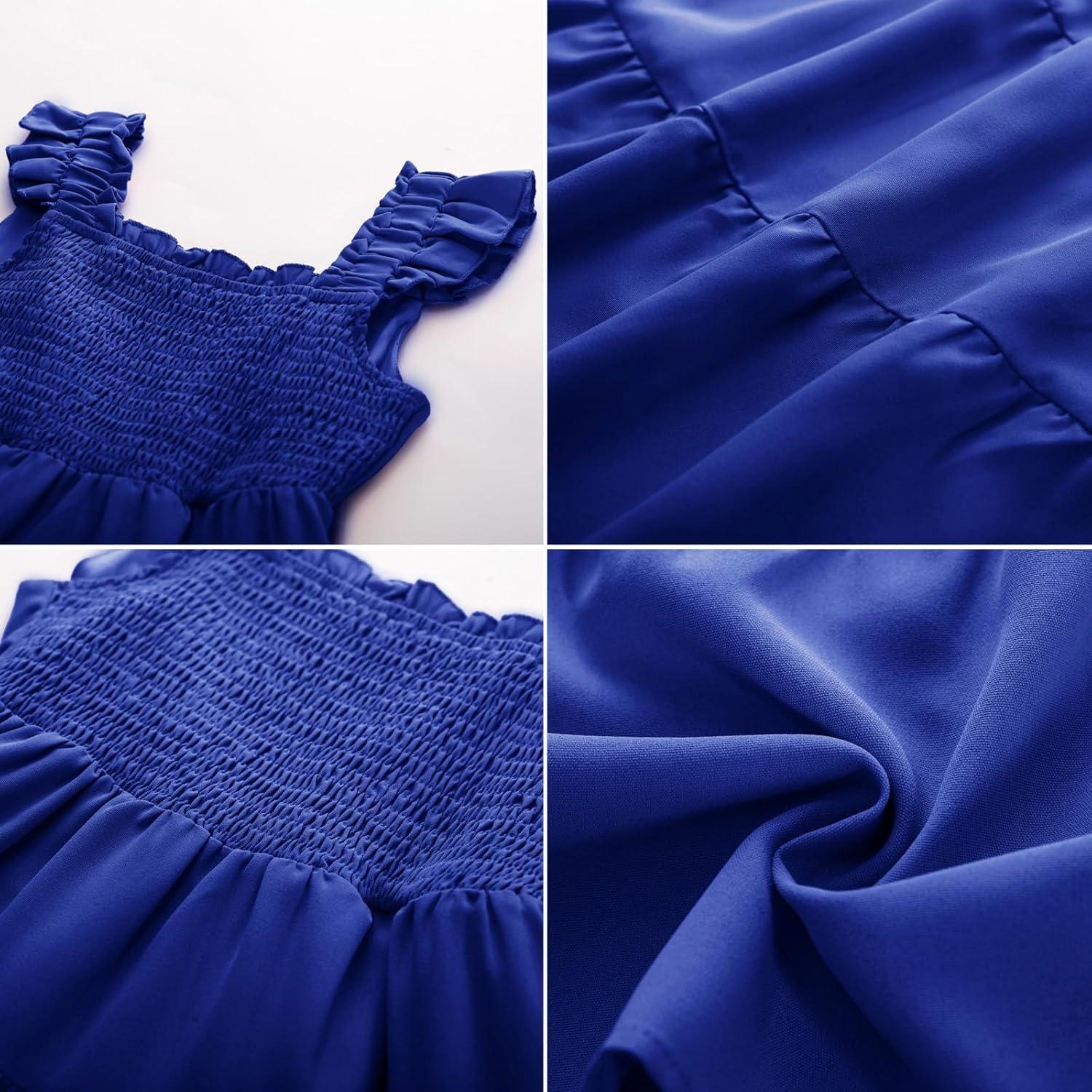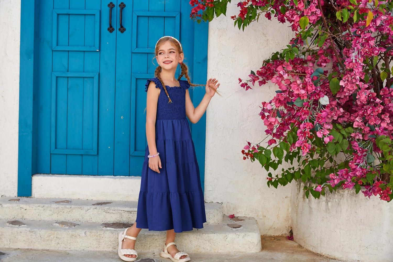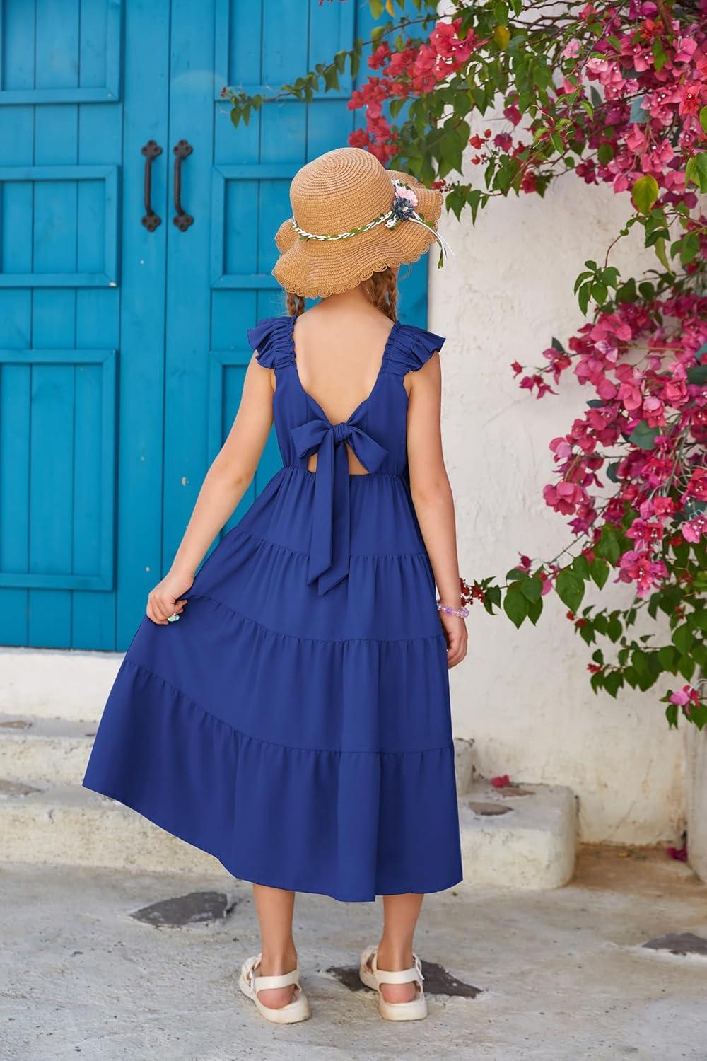 GRACE KARIN Girls Dress Summer Tie Back Party Dress Ruffle Sleeve Smoke Tiered Special Occasions Maxi Tween Dresses Size 5-14(Navy Blue)