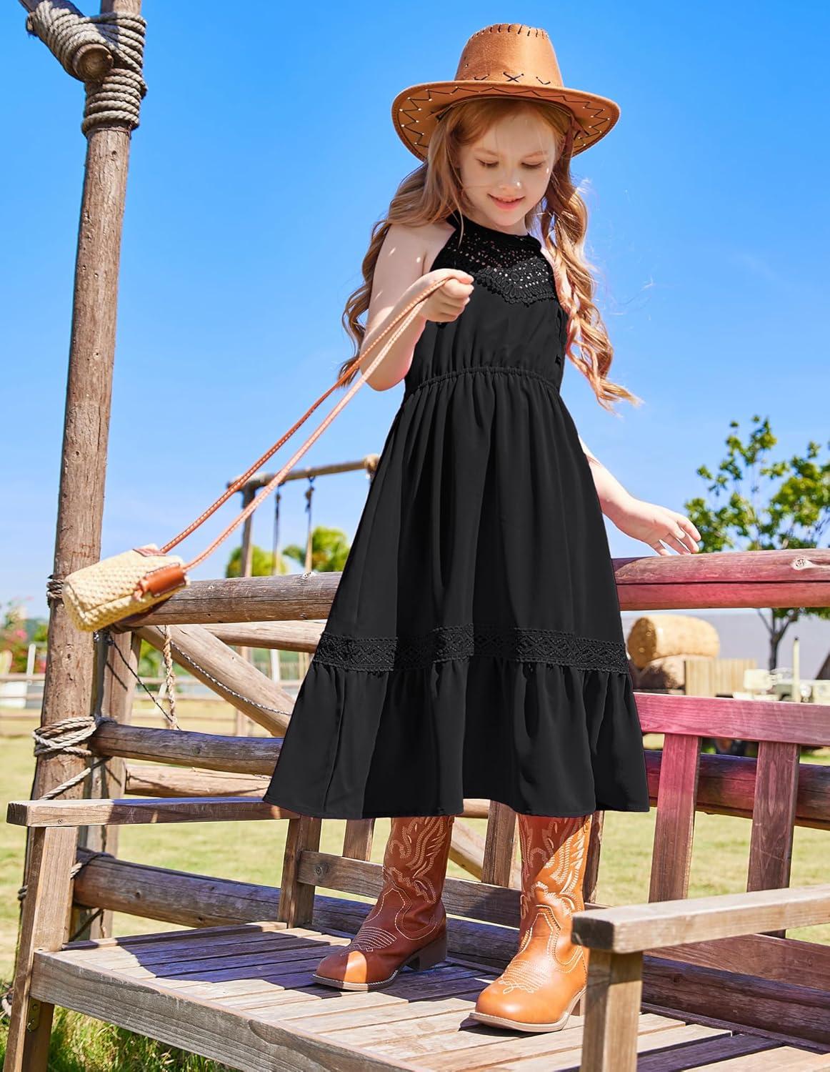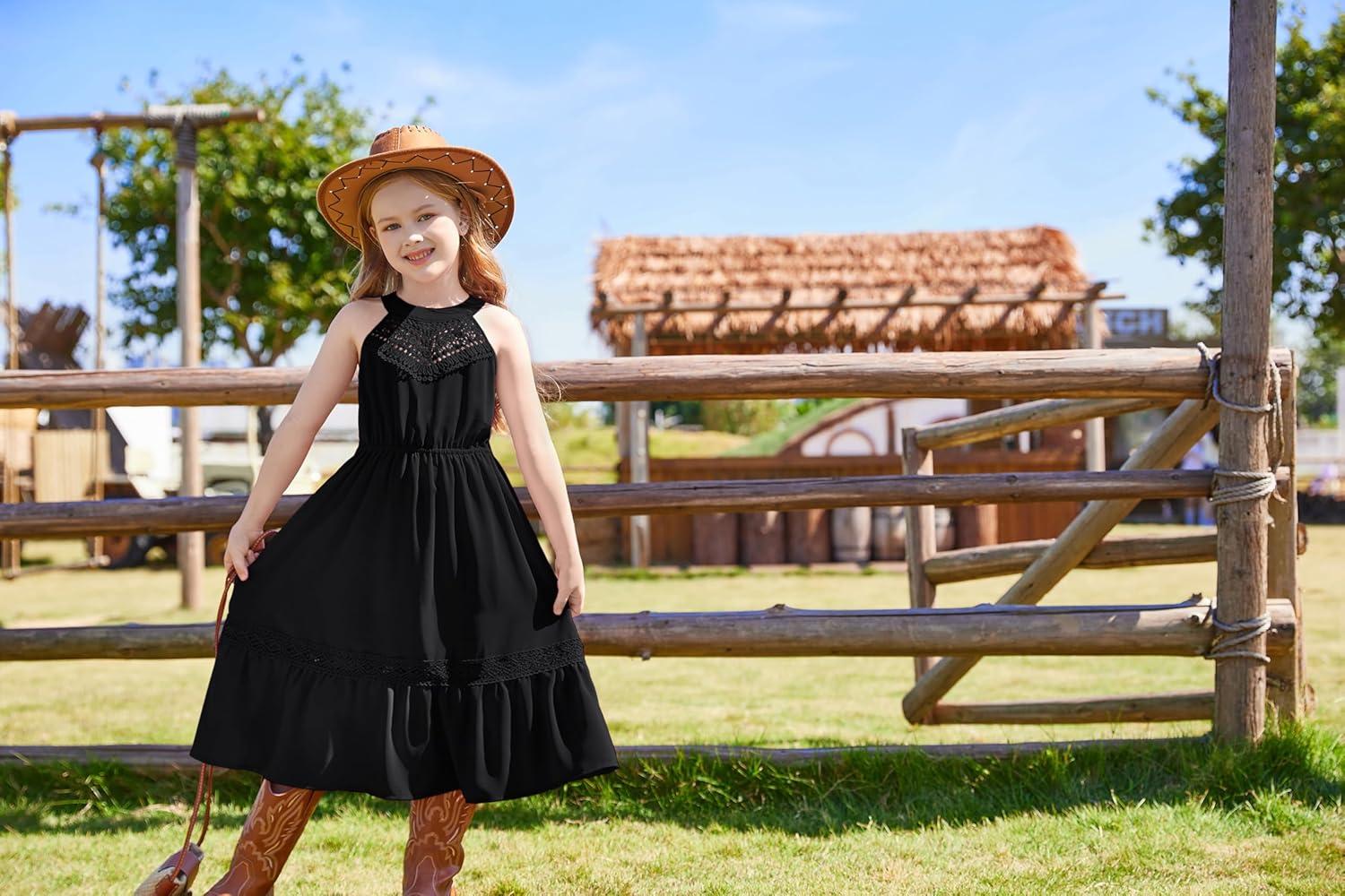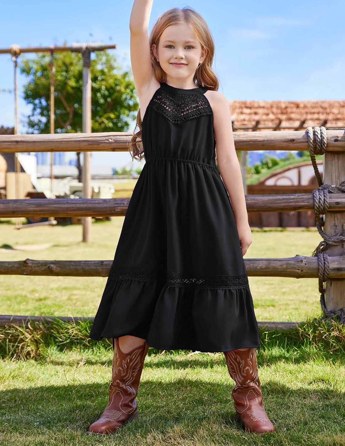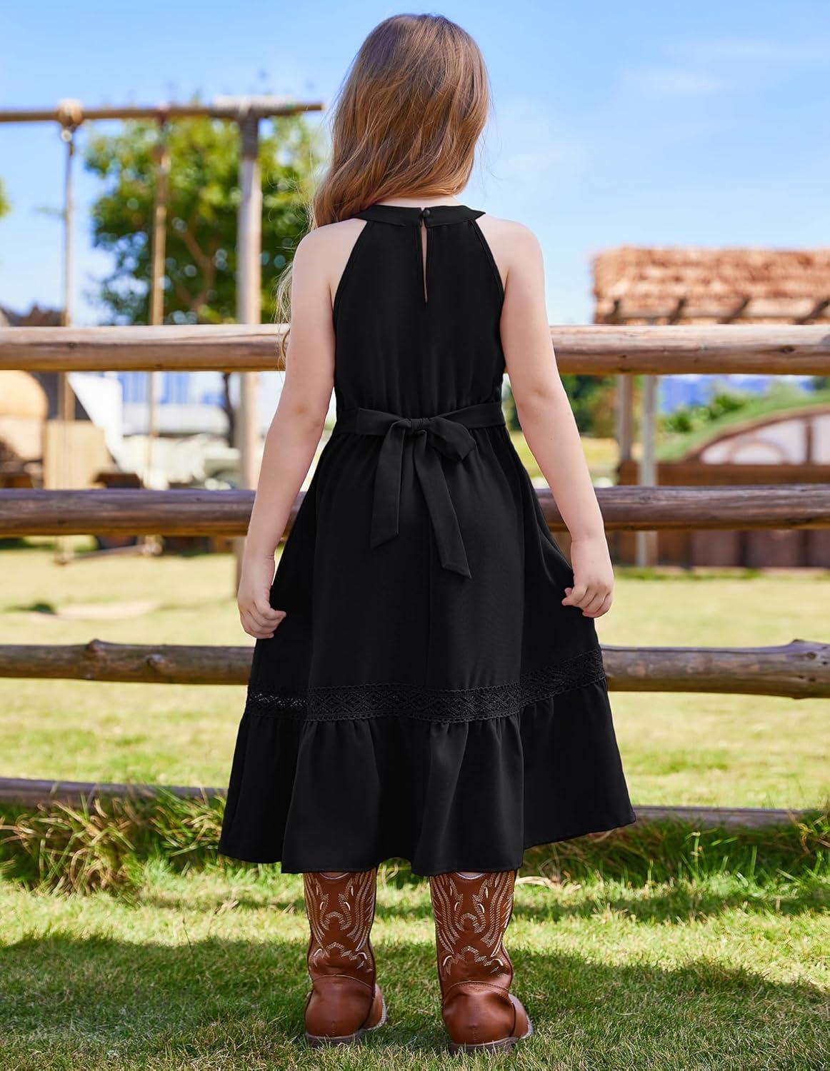 GRACE KARIN Girls Dresses Summer Spring Halter Maxi Dress Kids Ruffle Casual Flower Pleated Sun Dress Size 5-14(Black)