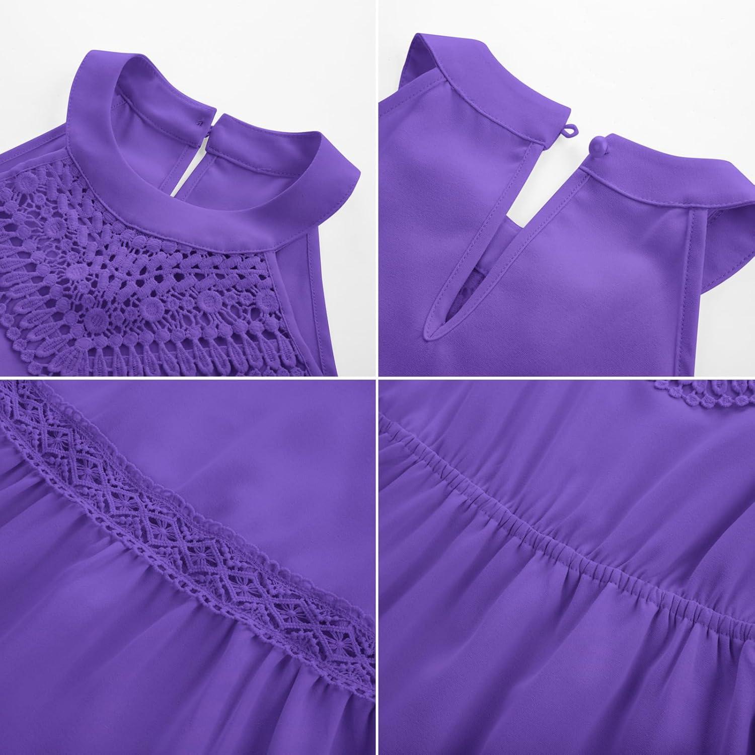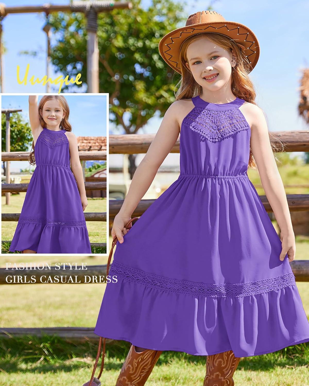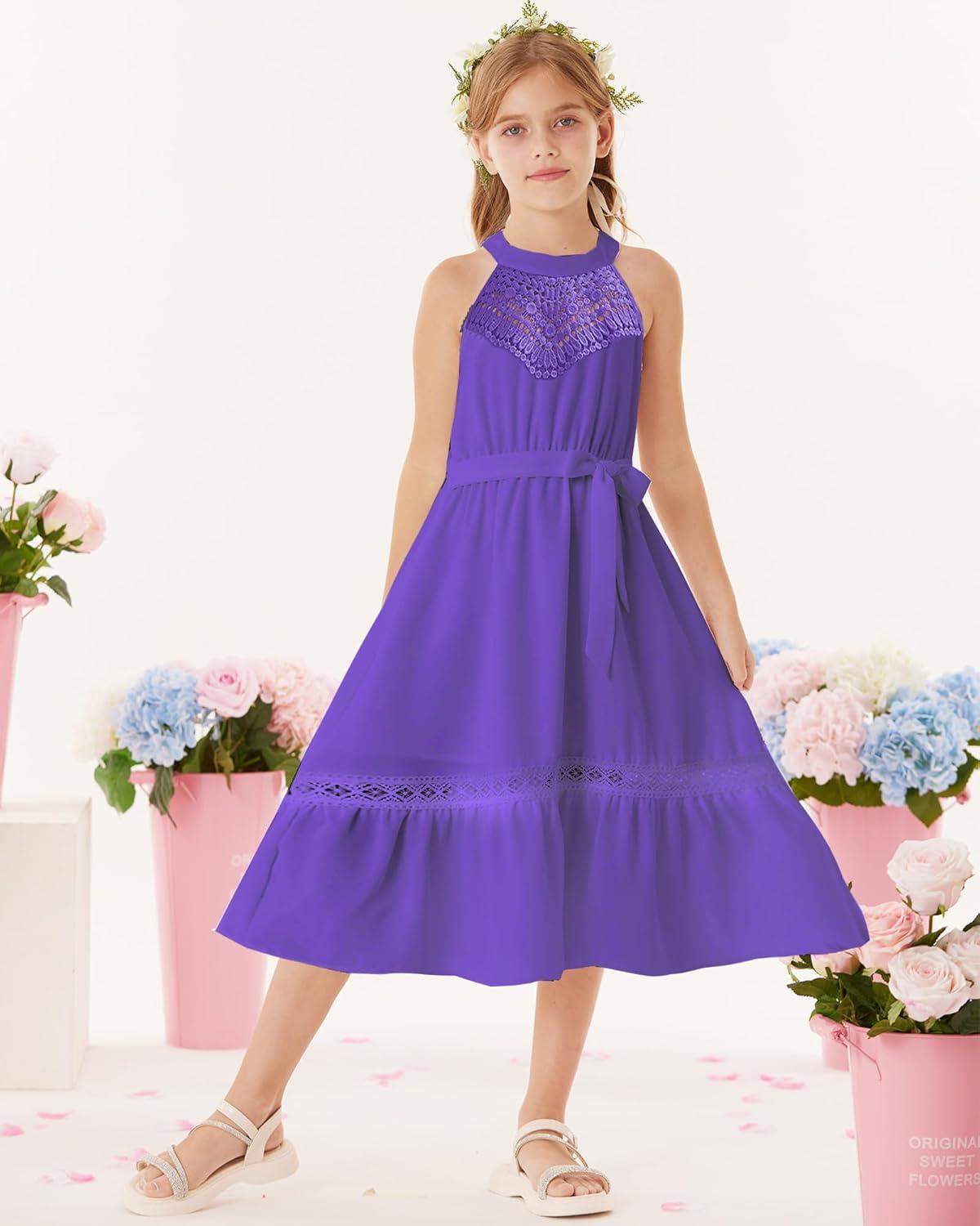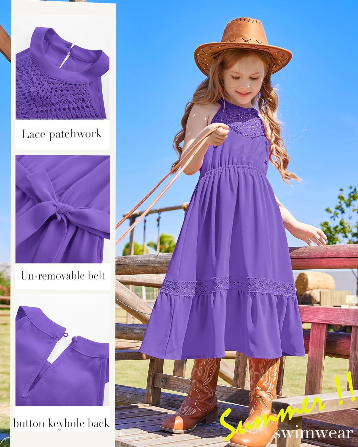 GRACE KARIN Girls Dresses Summer Spring Halter Maxi Dress Kids Ruffle Casual Flower Pleated Sun Dress Size 5-14(Blue Purple)