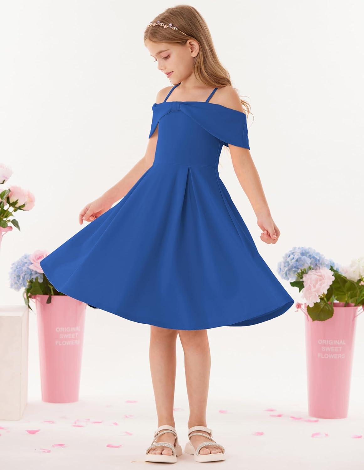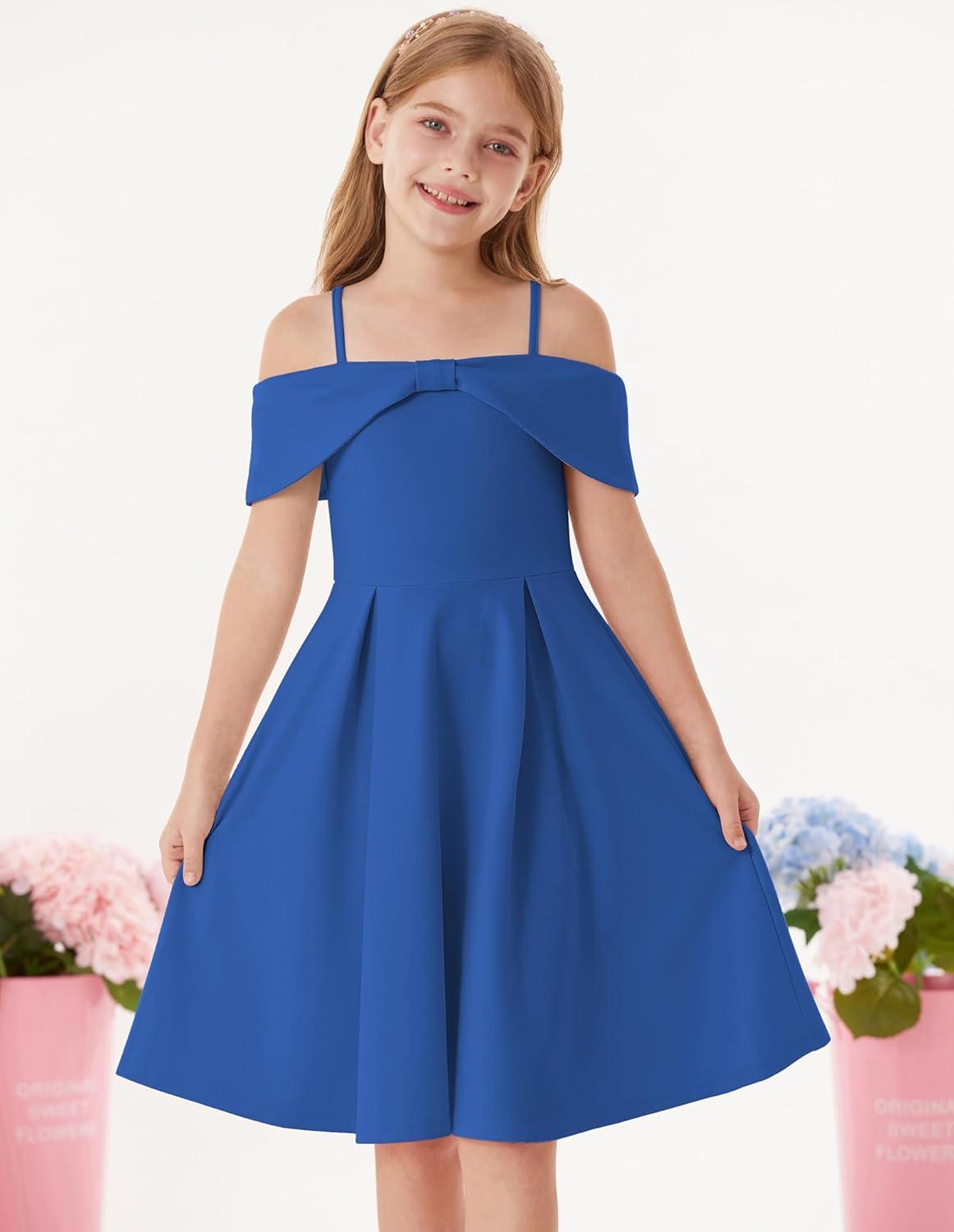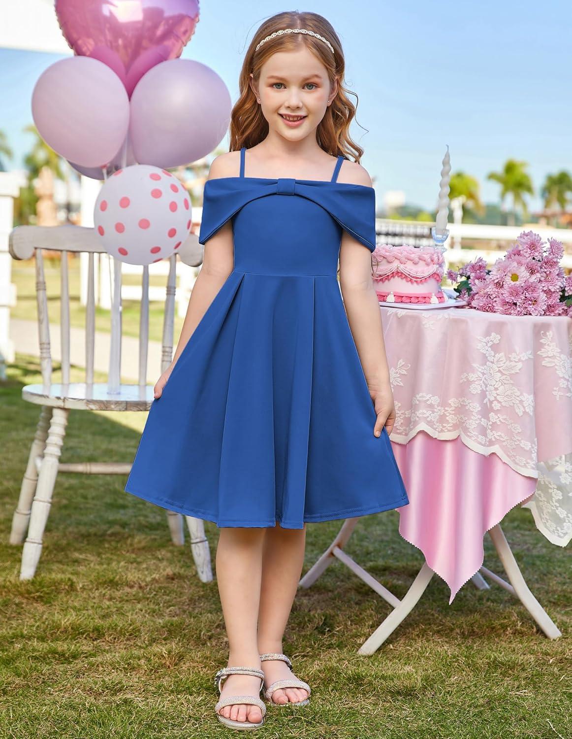GRACE KARIN Girls Elegant Dress Off Shoulder A-Line Casual Party Dresses for 6-14 Years(Blue)