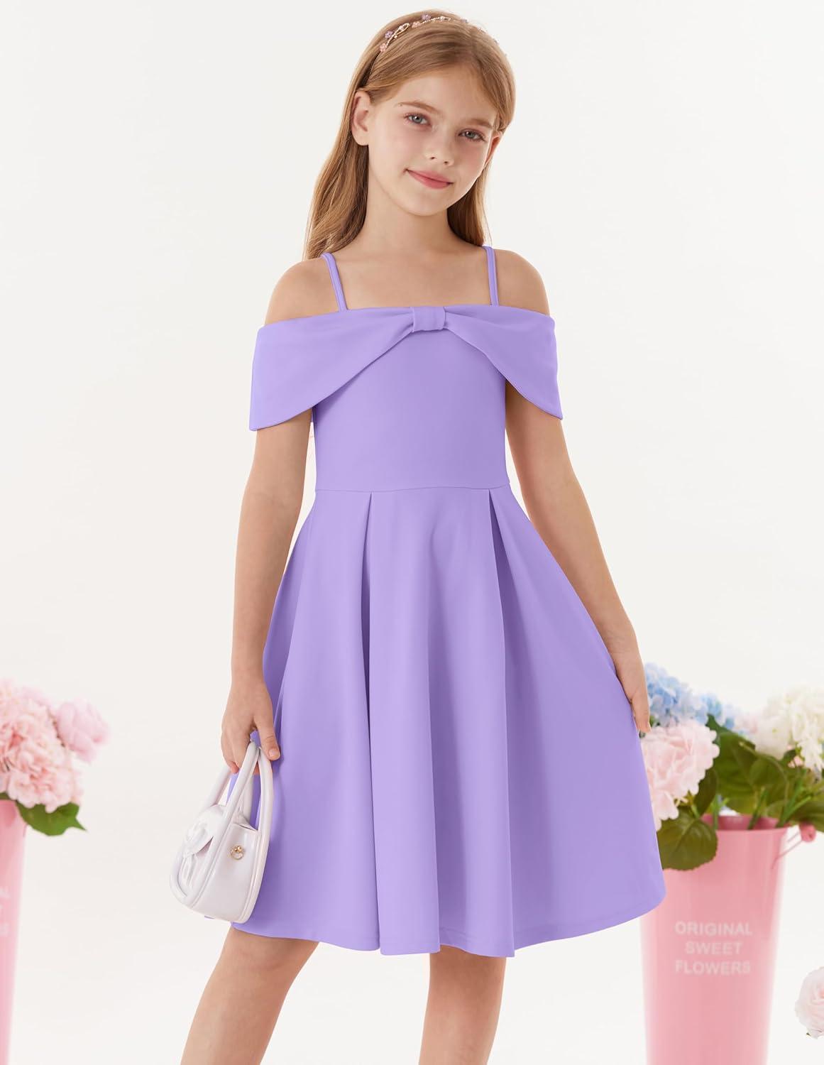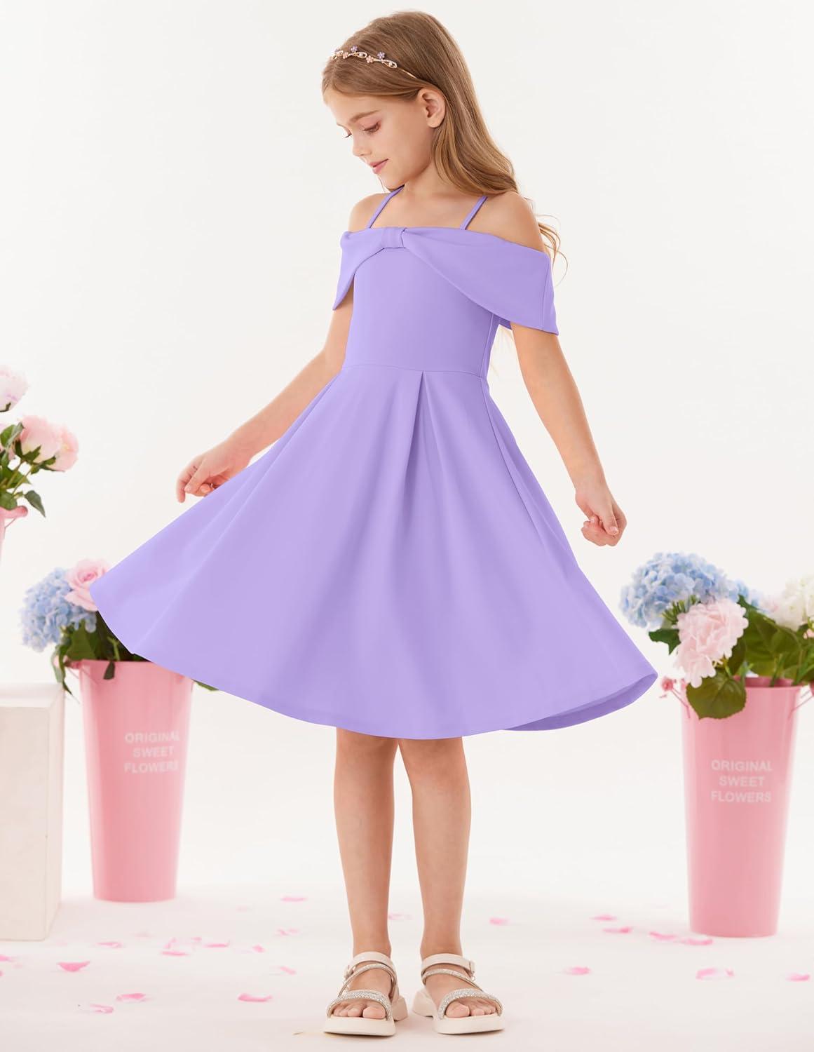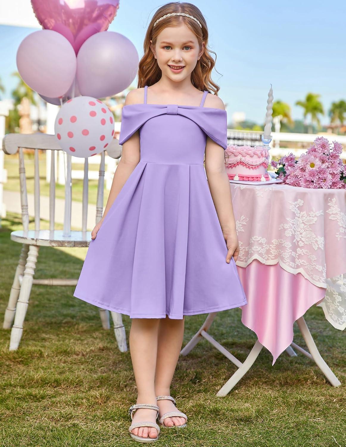GRACE KARIN Girls Elegant Dress Off Shoulder A-Line Casual Party Dresses for 6-14 Years(Purple)