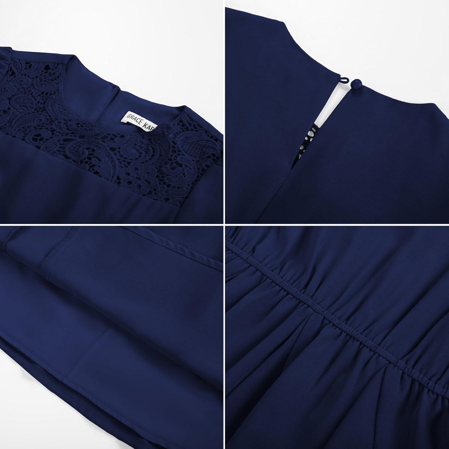 imageGRACE KARIN Girls Fall Dress Long Sleeve Midi with Lace Panels Twirl Skirt Elastic Waist for Holiday Party 614YNavy Blue