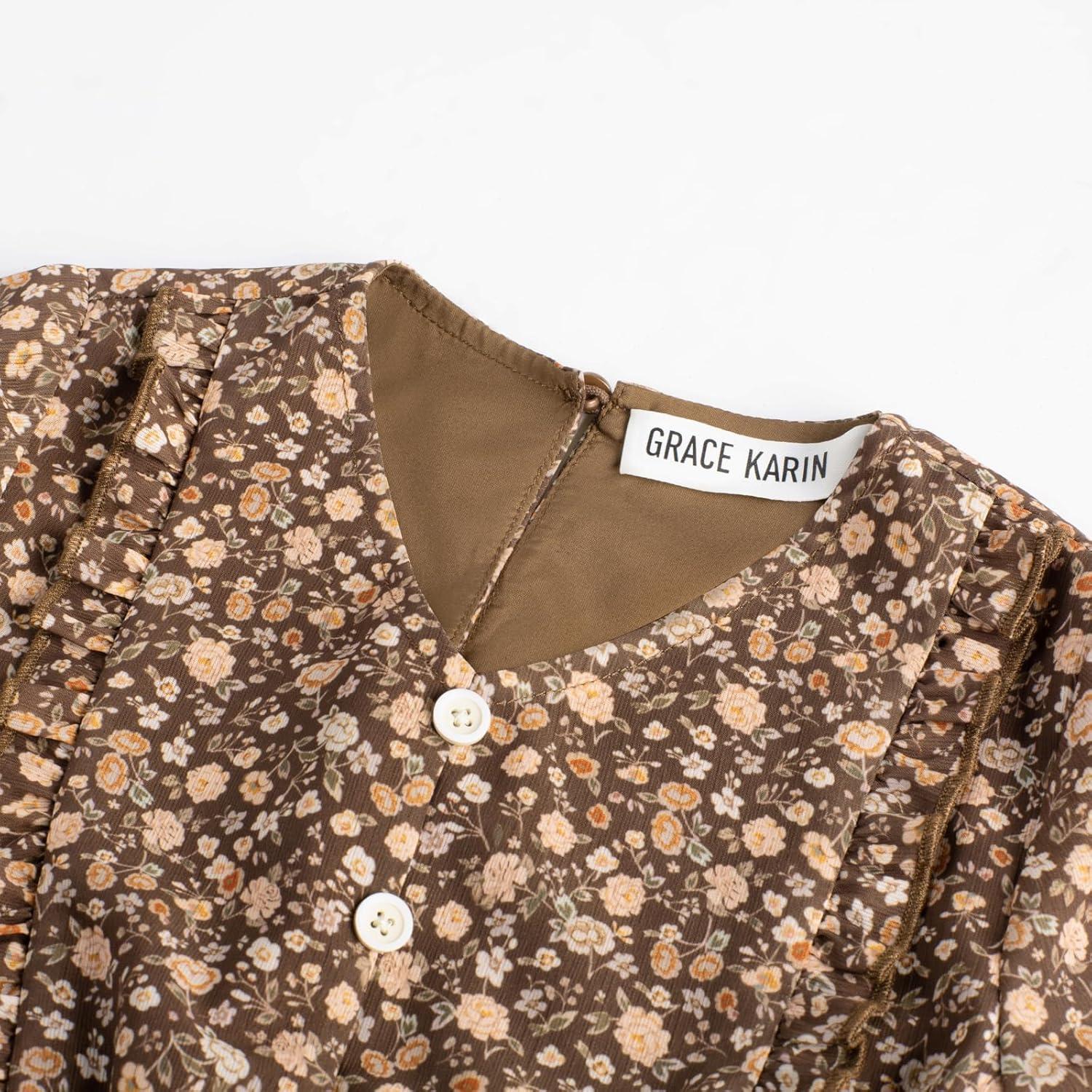 imageGRACE KARIN Girls Fall Floral Dresses 614Y Kids Winter Christmas Party Long Sleeve Holiday Hawaiian Flower DressLight Brown Floral