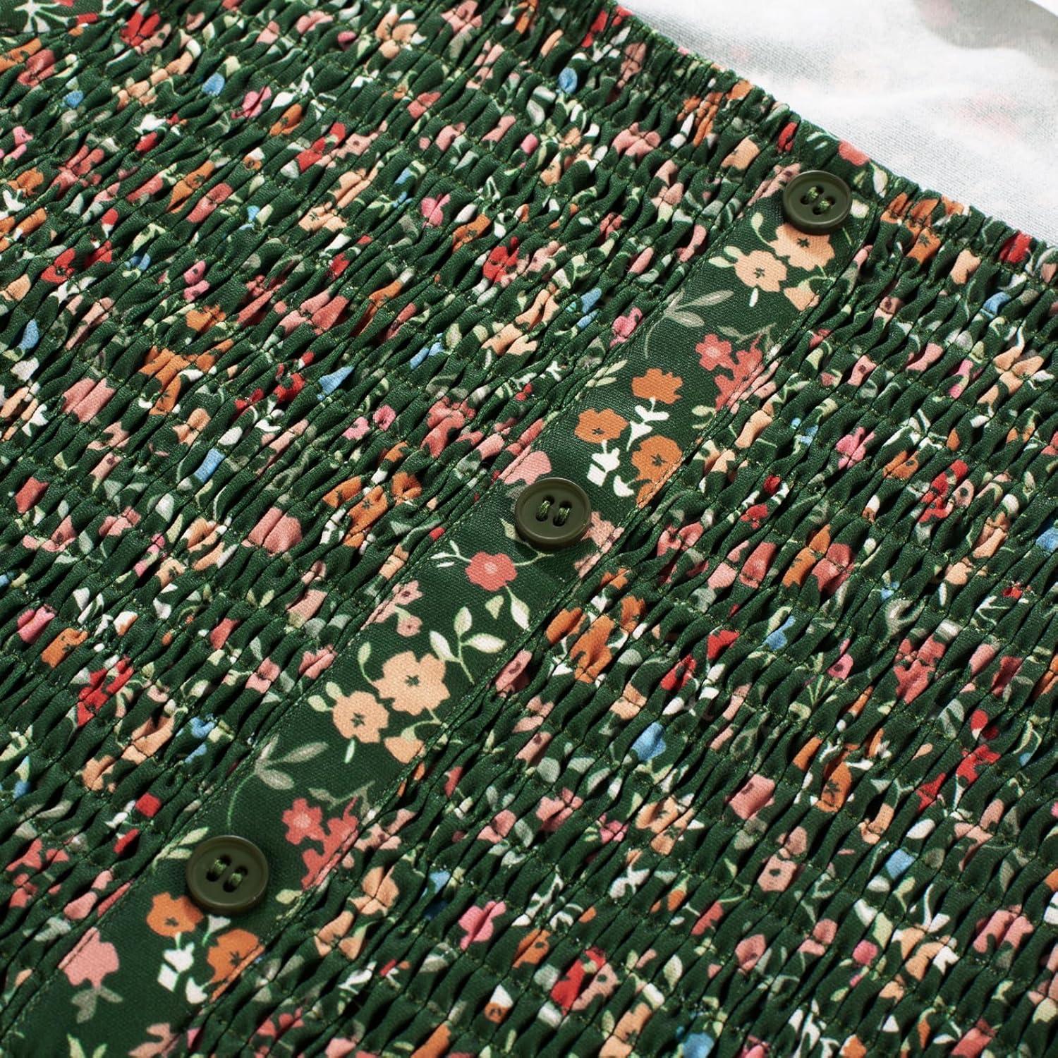GRACE KARIN Girls Fall Long Sleeve Floral Square Neck Smock Tiered Casual Holiday Teen Dress Size 5-14(Green Floral)