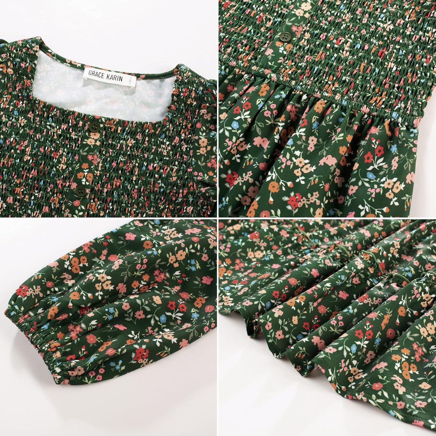 Don’t break the bank! Get the GRACE KARIN Girls Fall Long Sleeve Floral Square Neck Smock Tiered Casual Holiday Teen Dress Size 5-14(Green Floral) you want at a price you can afford during our markdown sale.