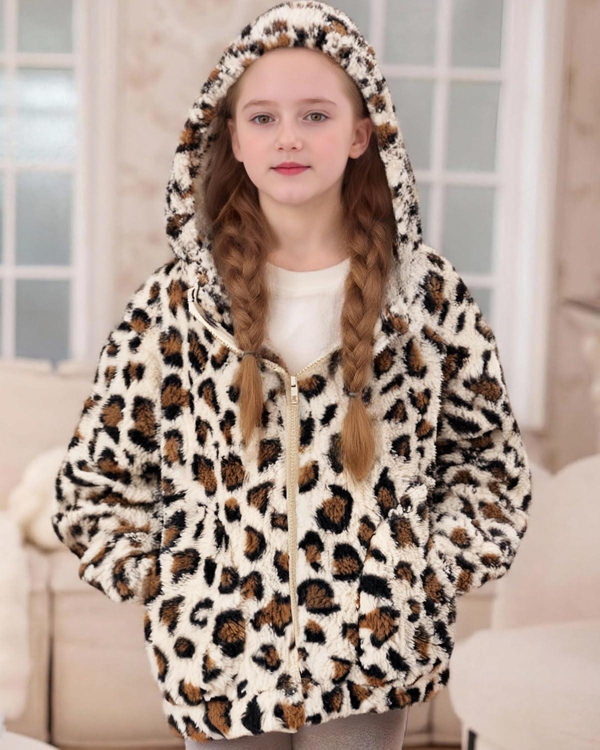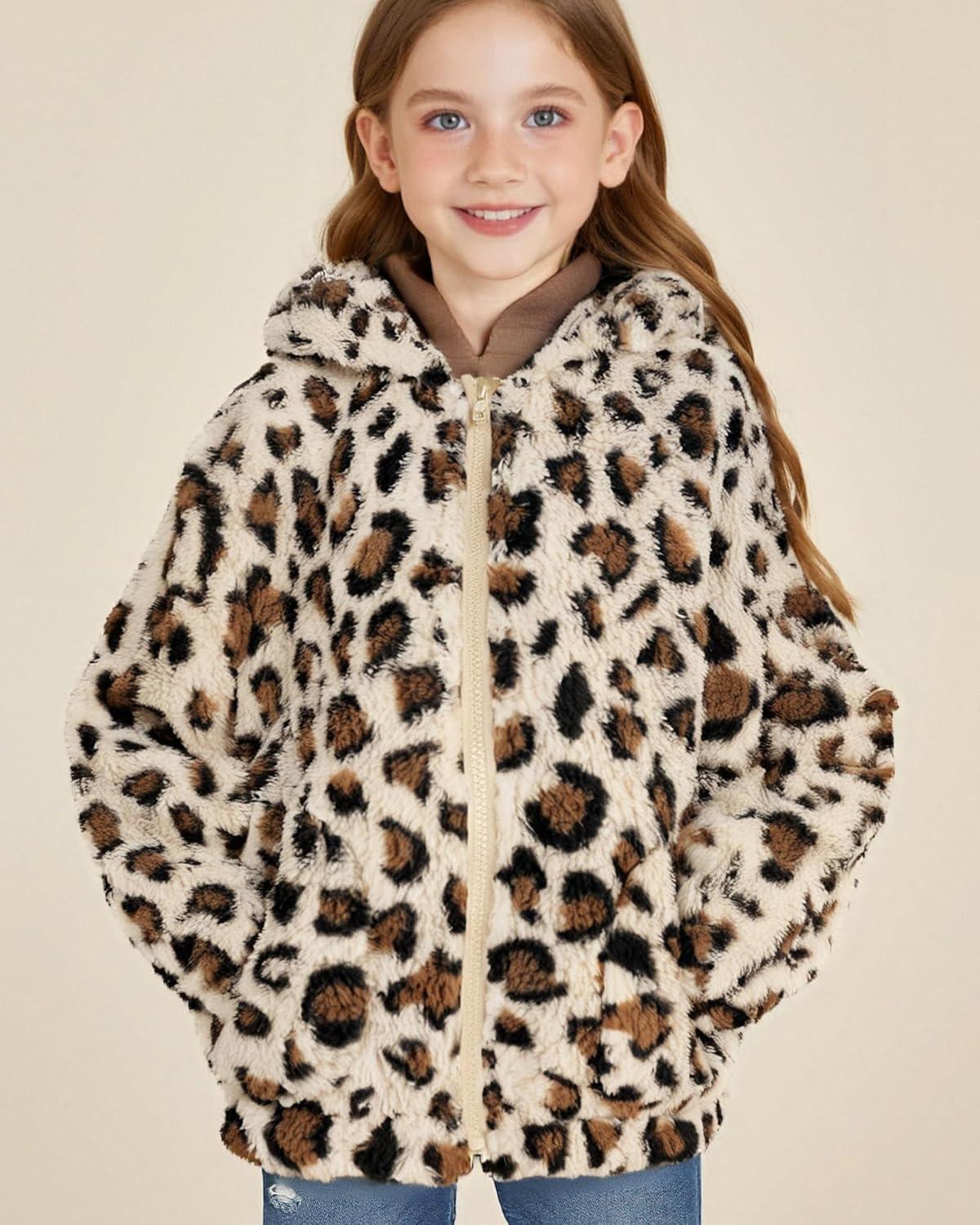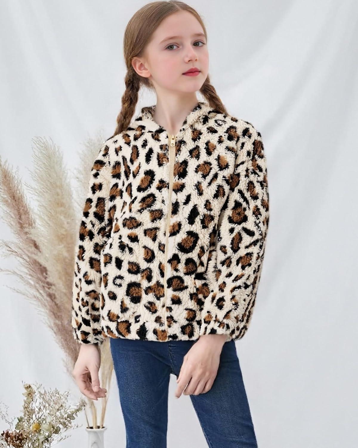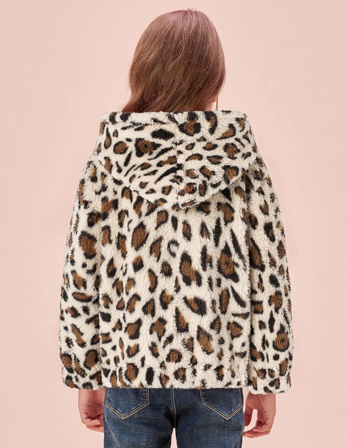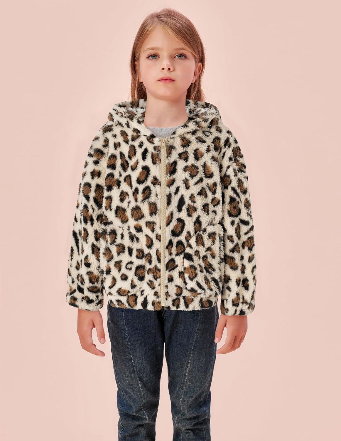 GRACE KARIN Girls Fleece Jacket Zip Up Sherpa Coat Kids Fall Hoodie Fuzzy Sweatshirt Size 5-14(Leopard)