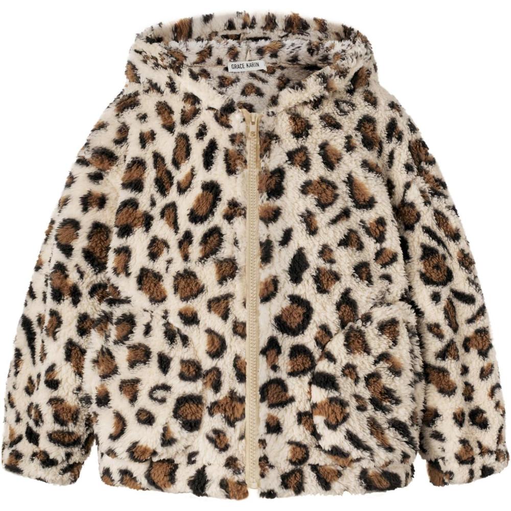 imageGRACE KARIN Girls Fleece Jacket Zip Up Sherpa Coat Kids Fall Hoodie Fuzzy Sweatshirt Size 514Leopard
