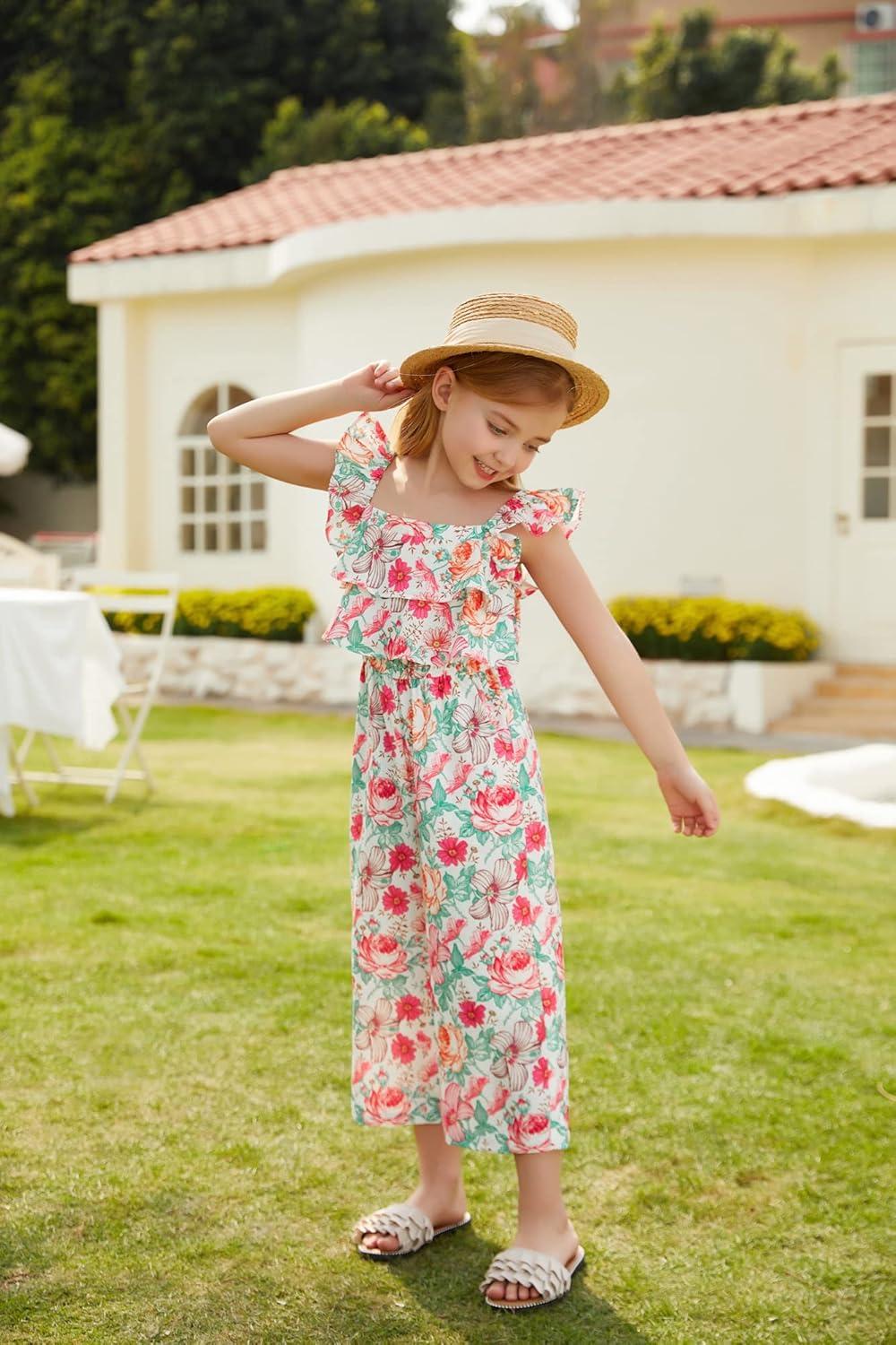 Get up to 70% off on GRACE KARIN Girls Floral Jumpsuit Flutter Sleeve Square Neck Wide Leg Rompers(White) styles during our end-of-season clearance event.