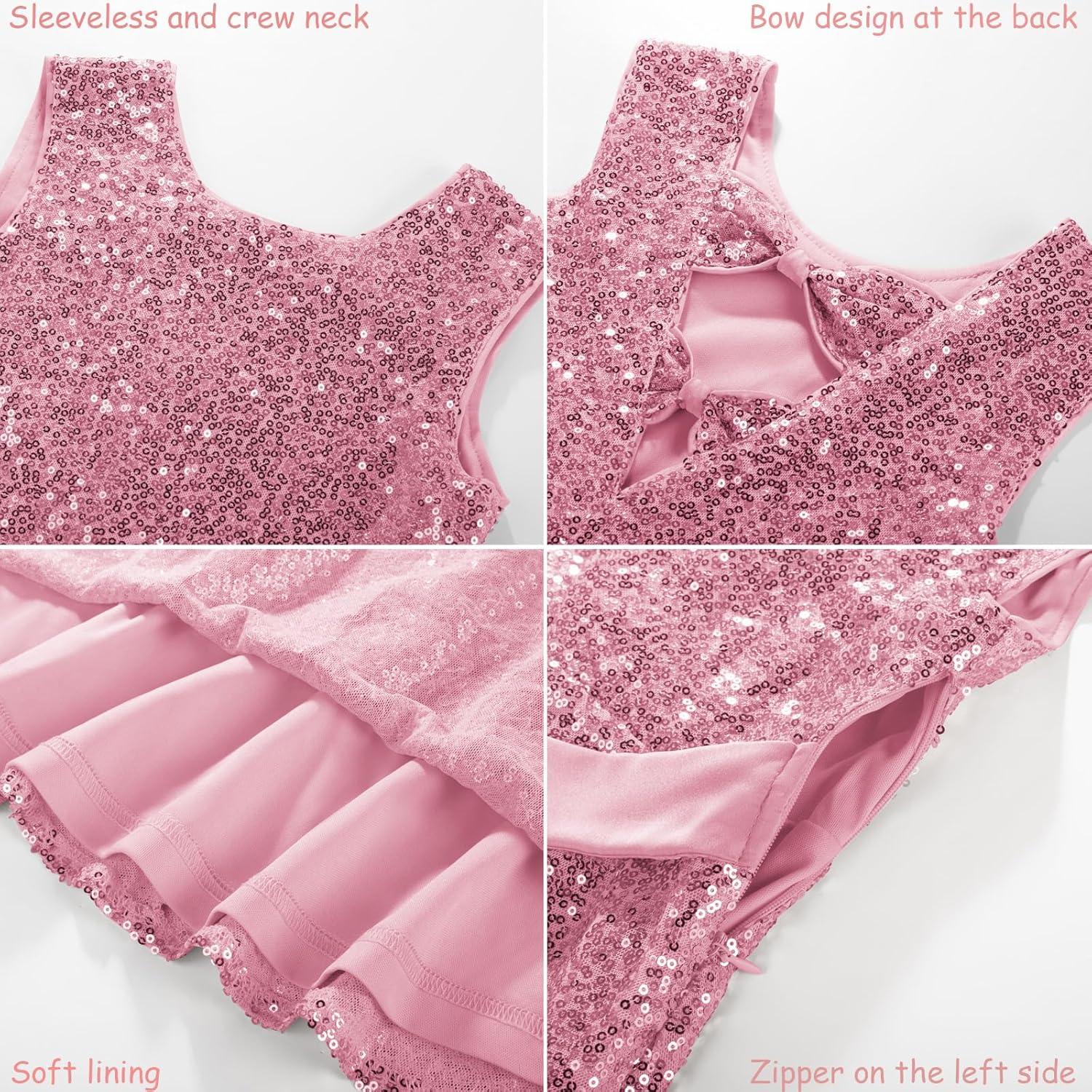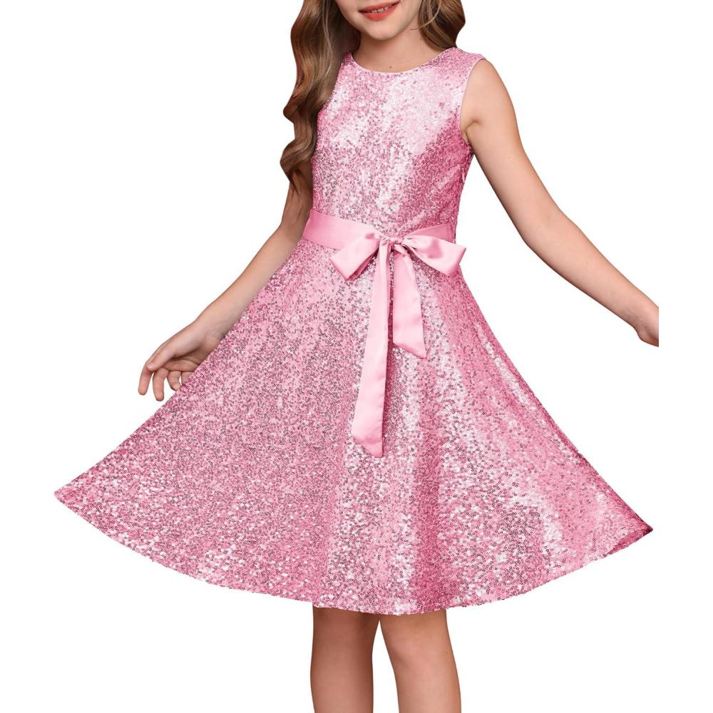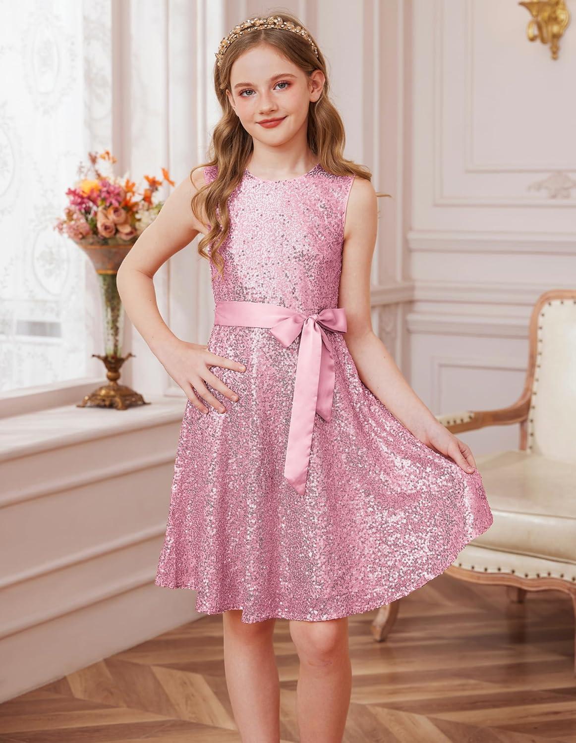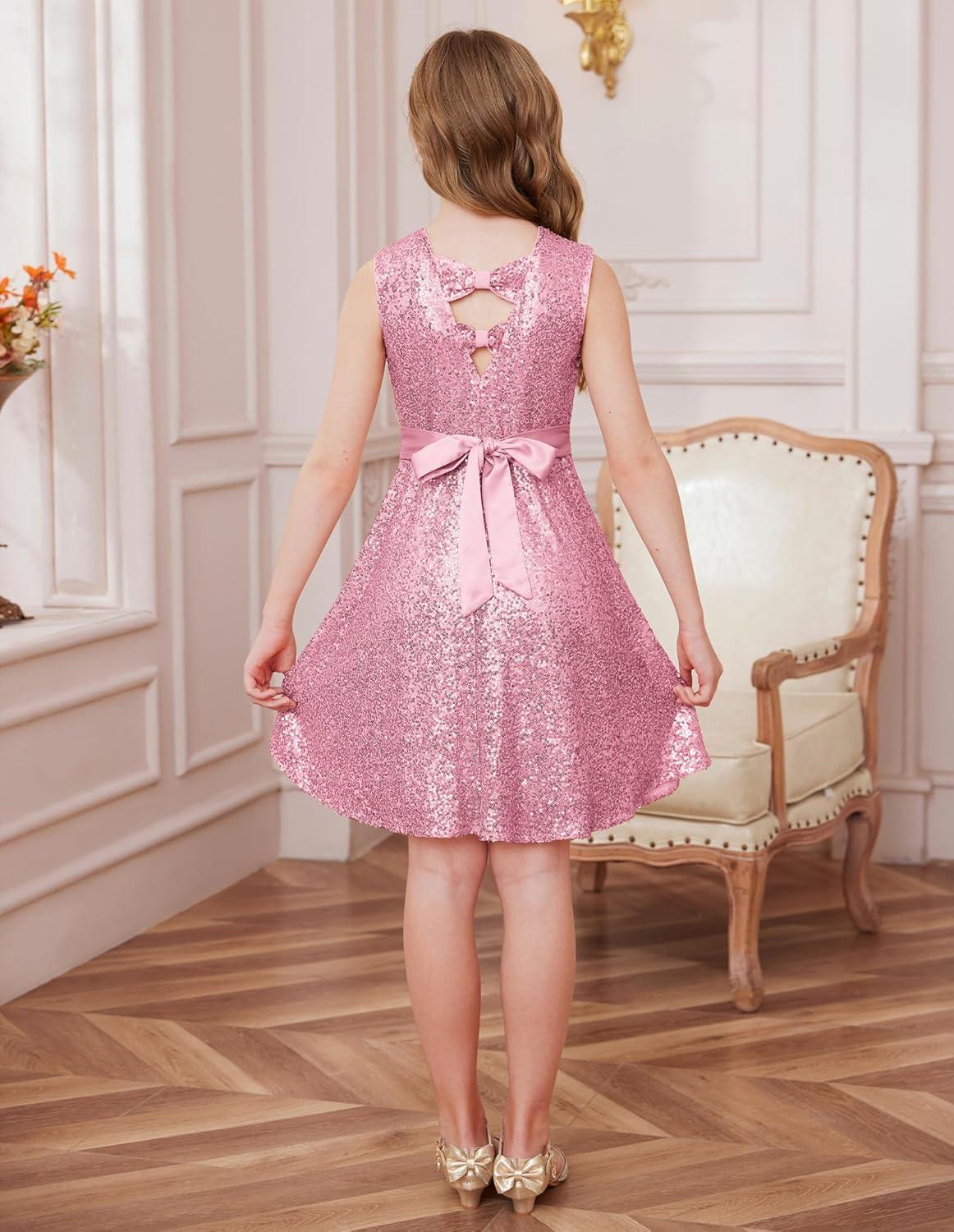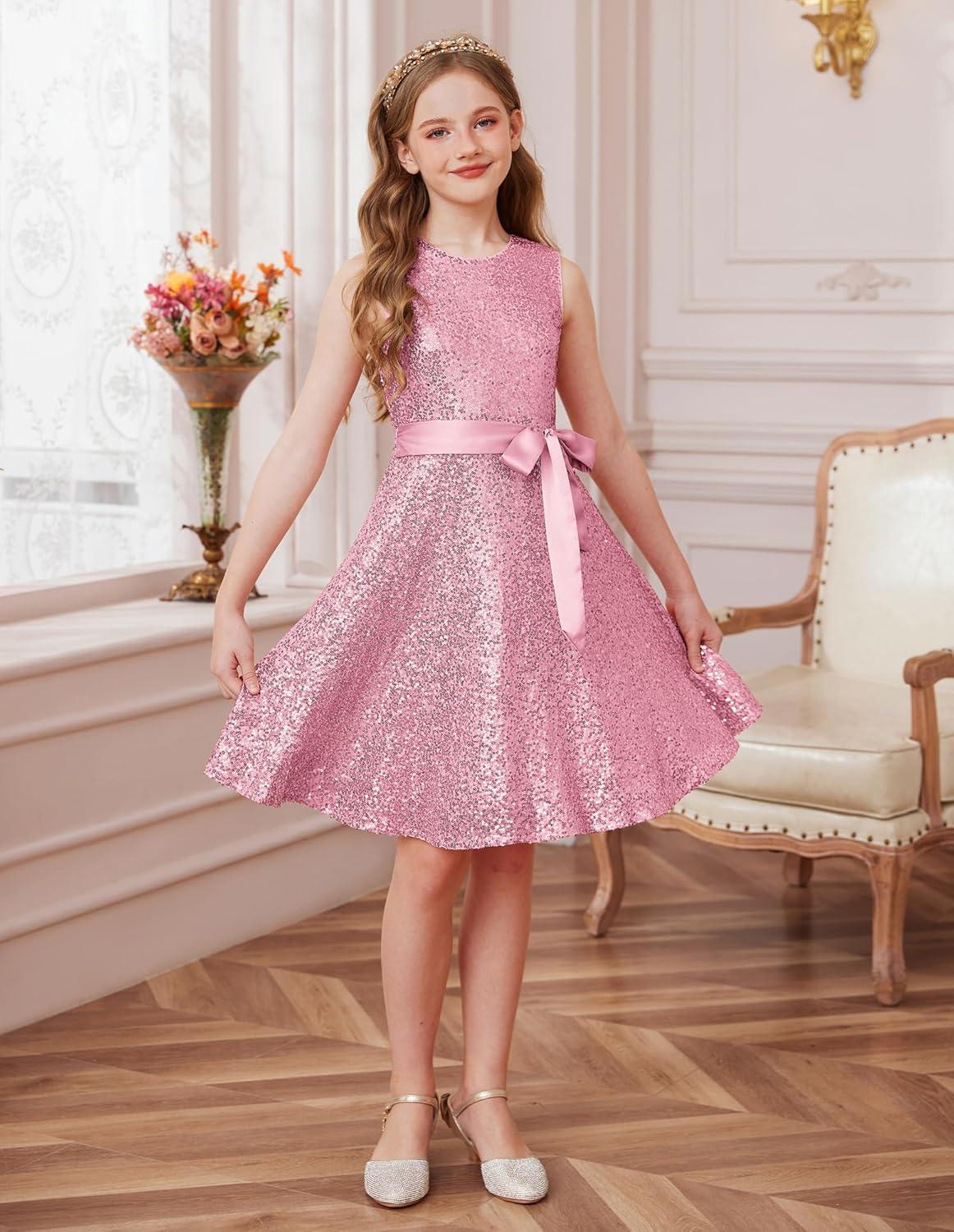 GRACE KARIN Girls Formal Sequin Sparkly Dress Kids Fancy Cocktail Party Birthday Pageant Christmas Dresses Size 6-14Y(Light Pink)
