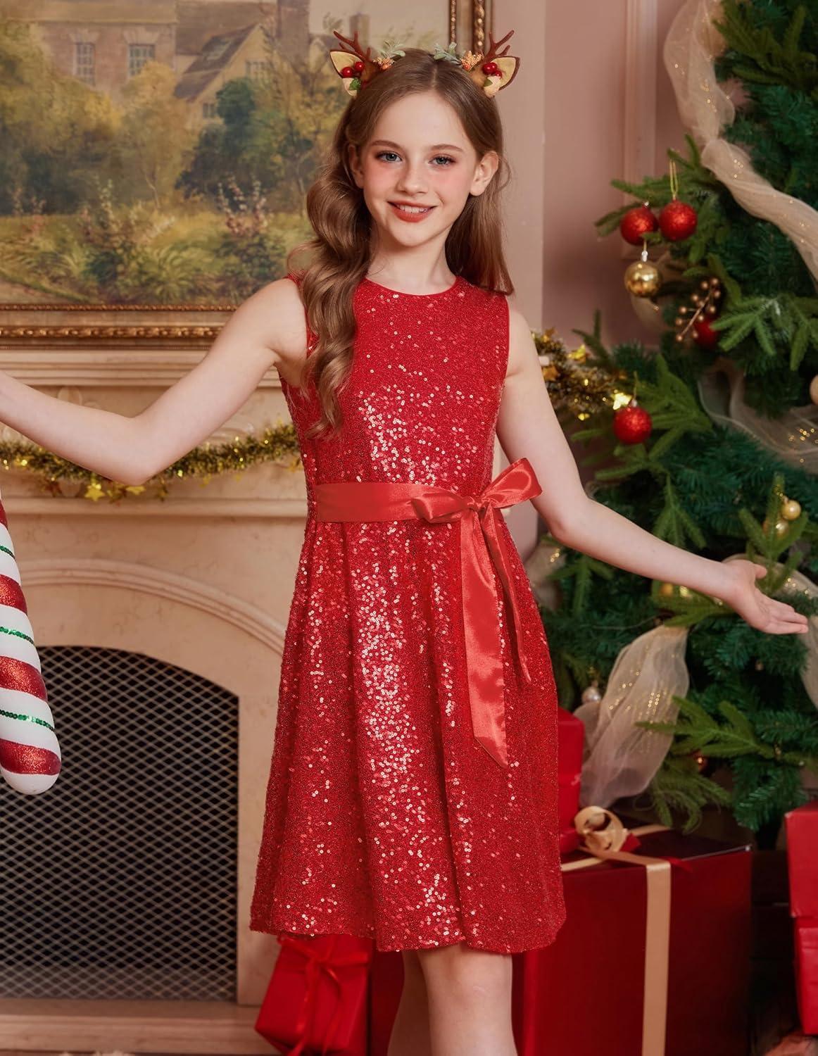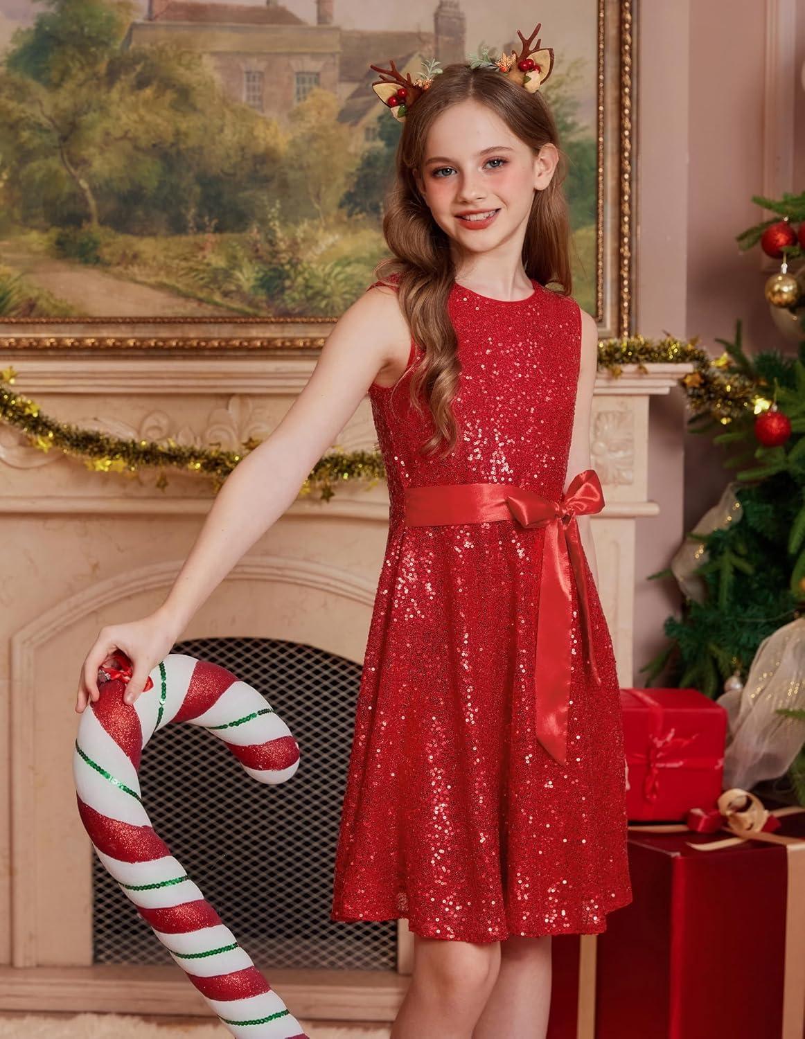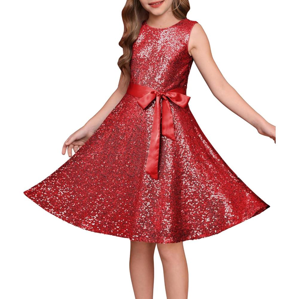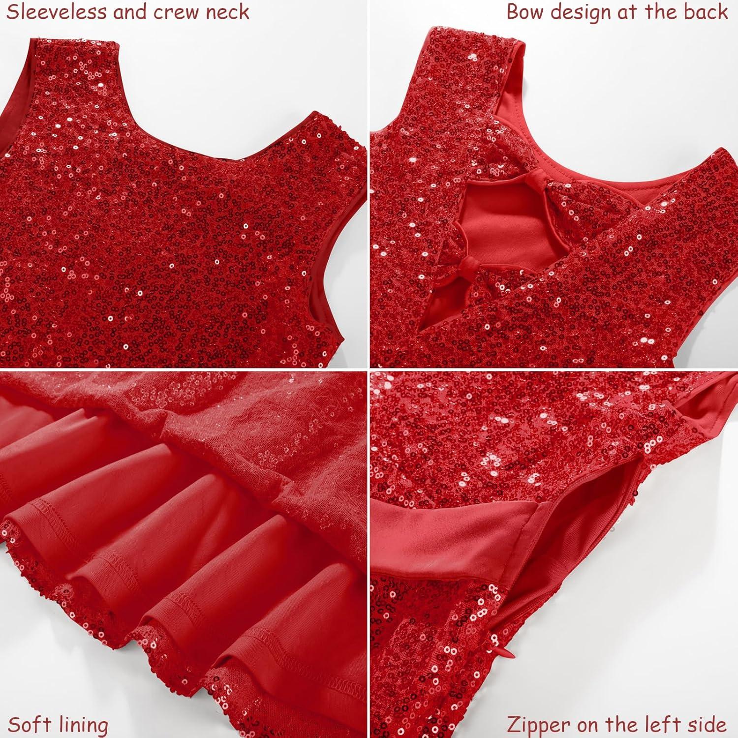 GRACE KARIN Girls Formal Sequin Sparkly Dress Kids Fancy Cocktail Party Birthday Pageant Christmas Dresses Size 6-14Y(Red)
