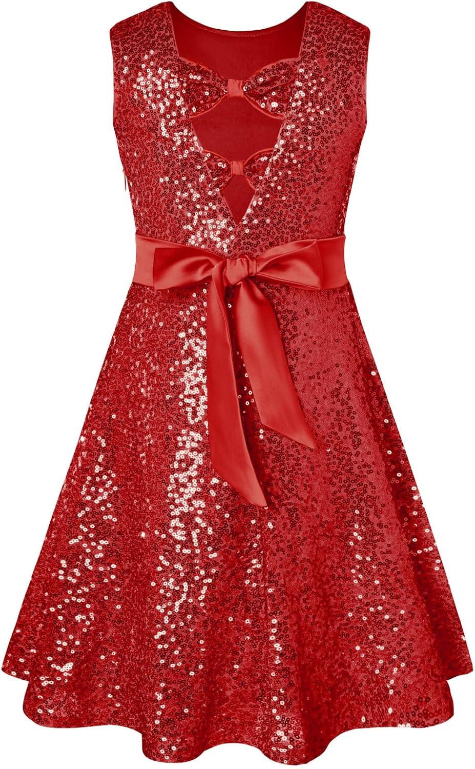 imageGRACE KARIN Girls Formal Sequin Sparkly Dress Kids Fancy Cocktail Party Birthday Pageant Christmas Dresses Size 614YRed