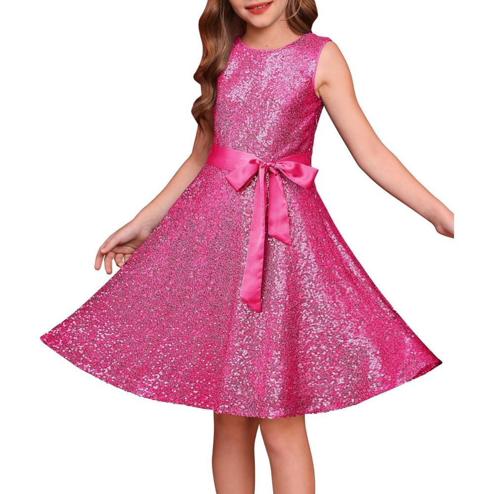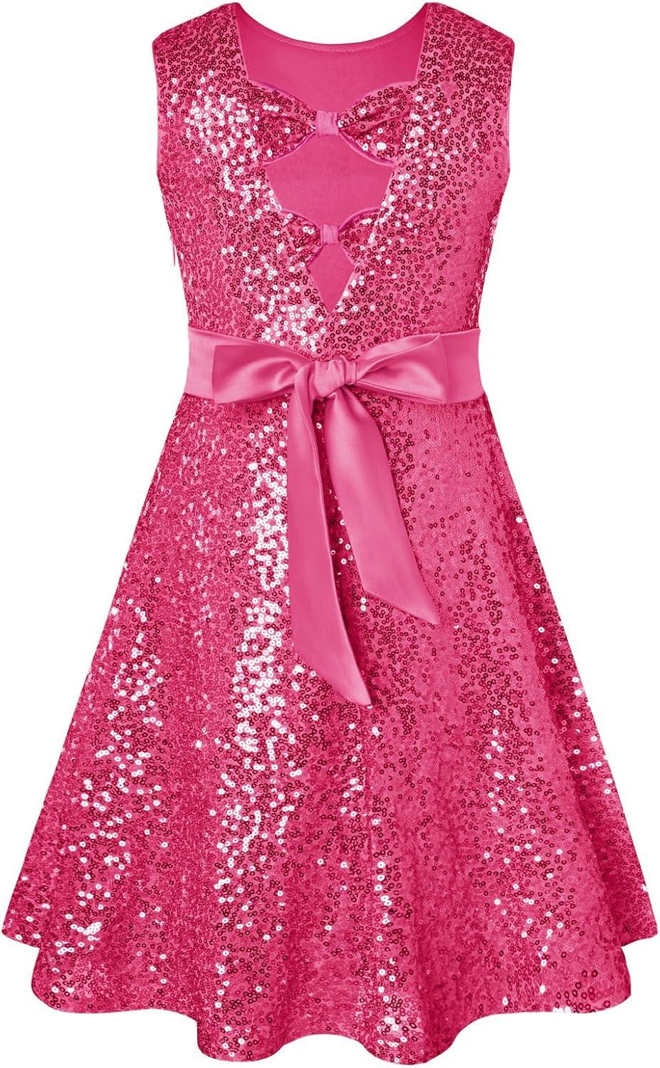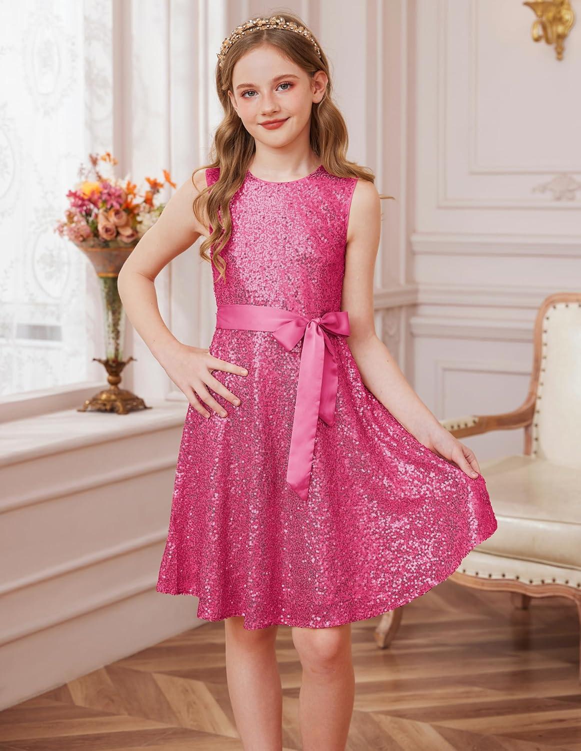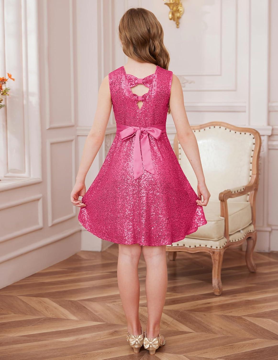 GRACE KARIN Girls Formal Sequin Sparkly Dress Kids Fancy Cocktail Party Birthday Pageant Christmas Dresses Size 6-14Y(Rose Red)